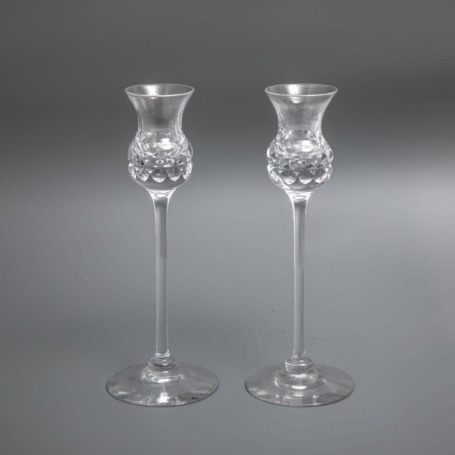 Mid Century modern 20th century Kosta Boda signed cut glass candle stick holders Approx 9"H. Great condition.