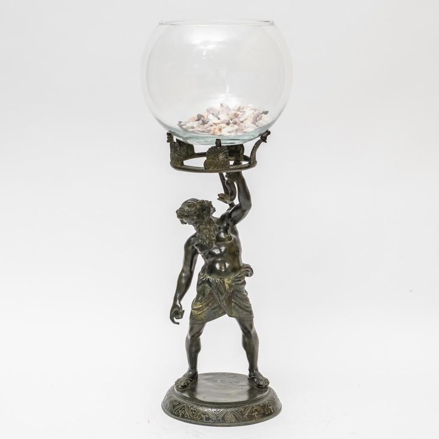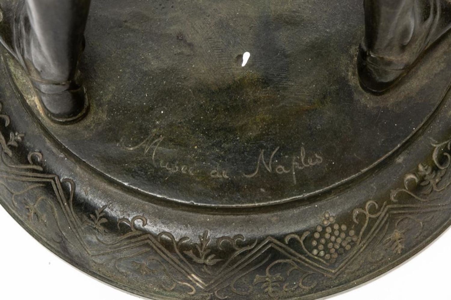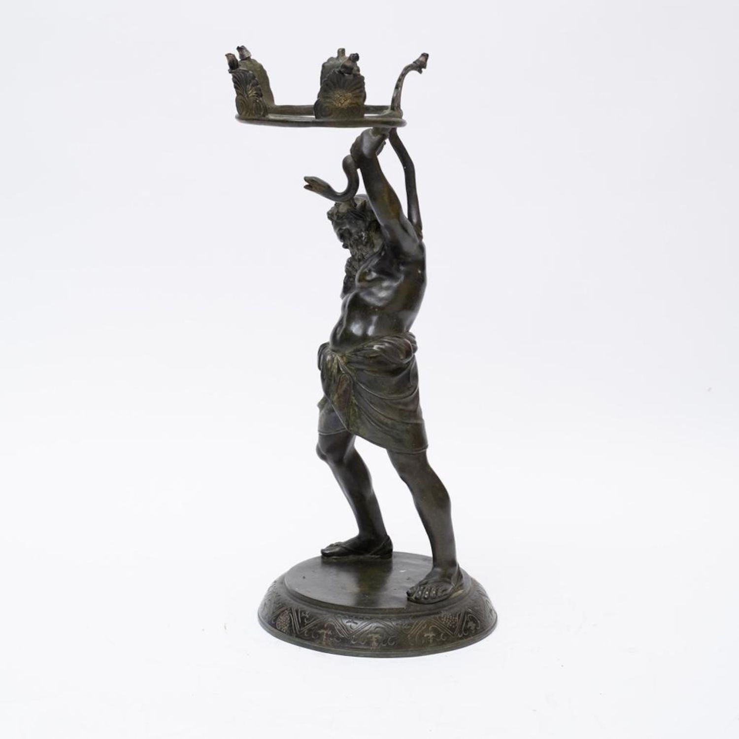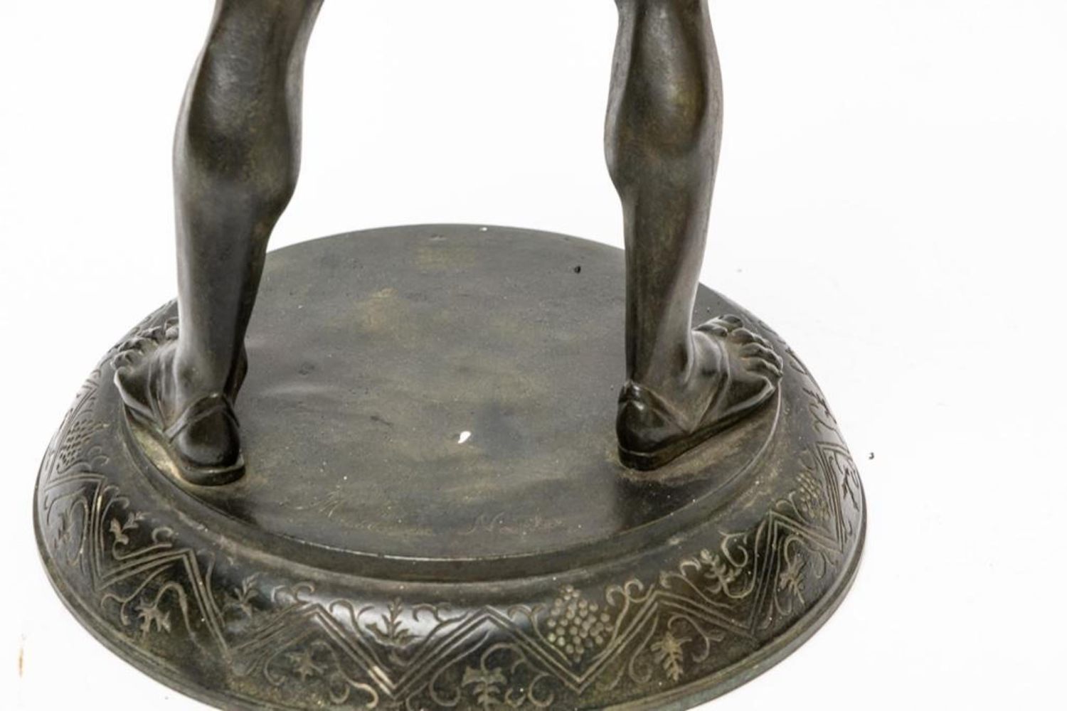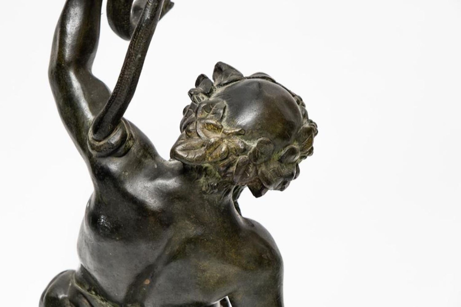 19th Century Bronze of Silenus. The bronze is marked Musee de Naples. In Greek mythology, Silenus was a companion and tutor to the wine god Dionysus. A notorious consumer of wine and usually drunk and had to be supported by satyrs or carried by a donkey. Silenus was described as the oldest, wisest and most inebriated of the followers of Dionysus, when intoxicated he was said to possess special knowledge and the power of prophecy. Measures 24"H
