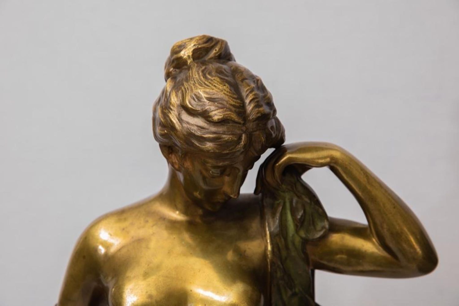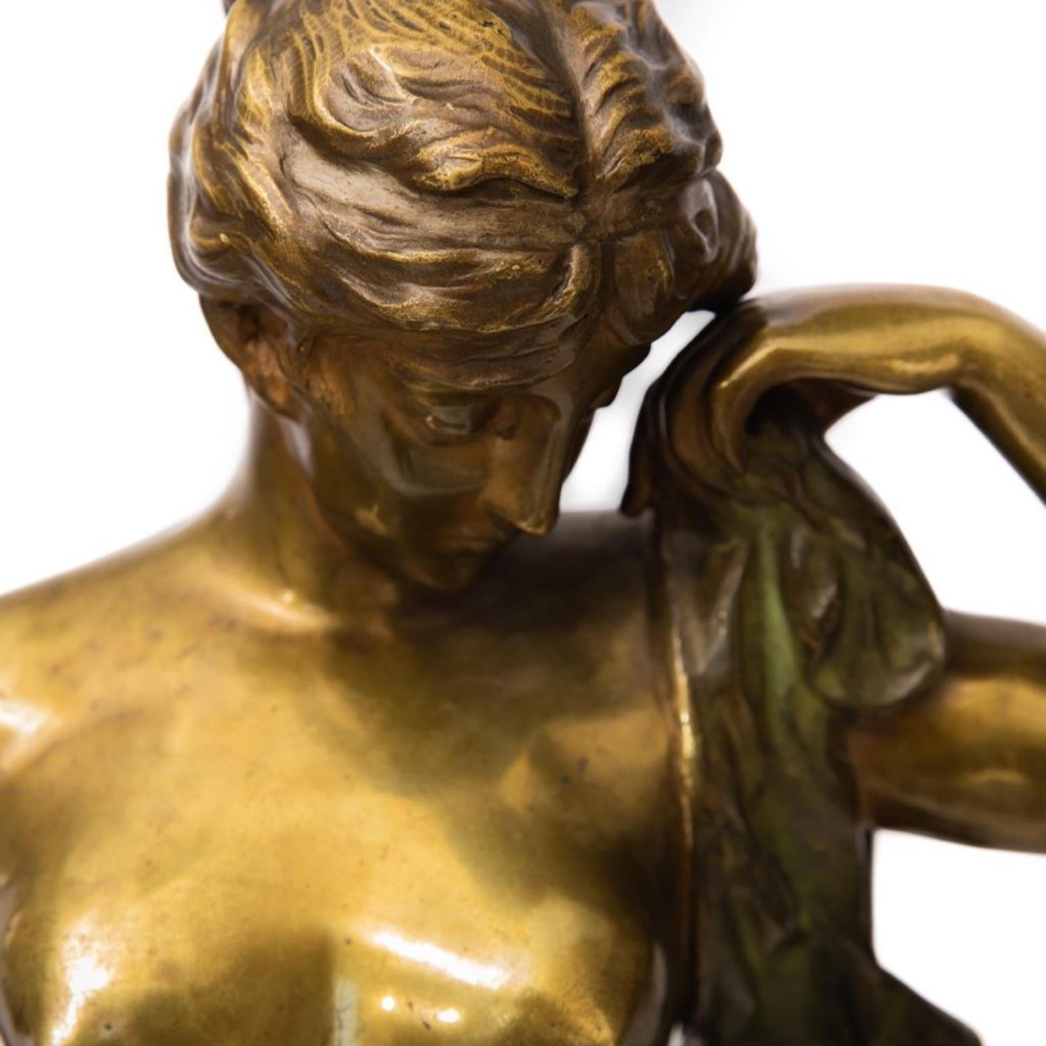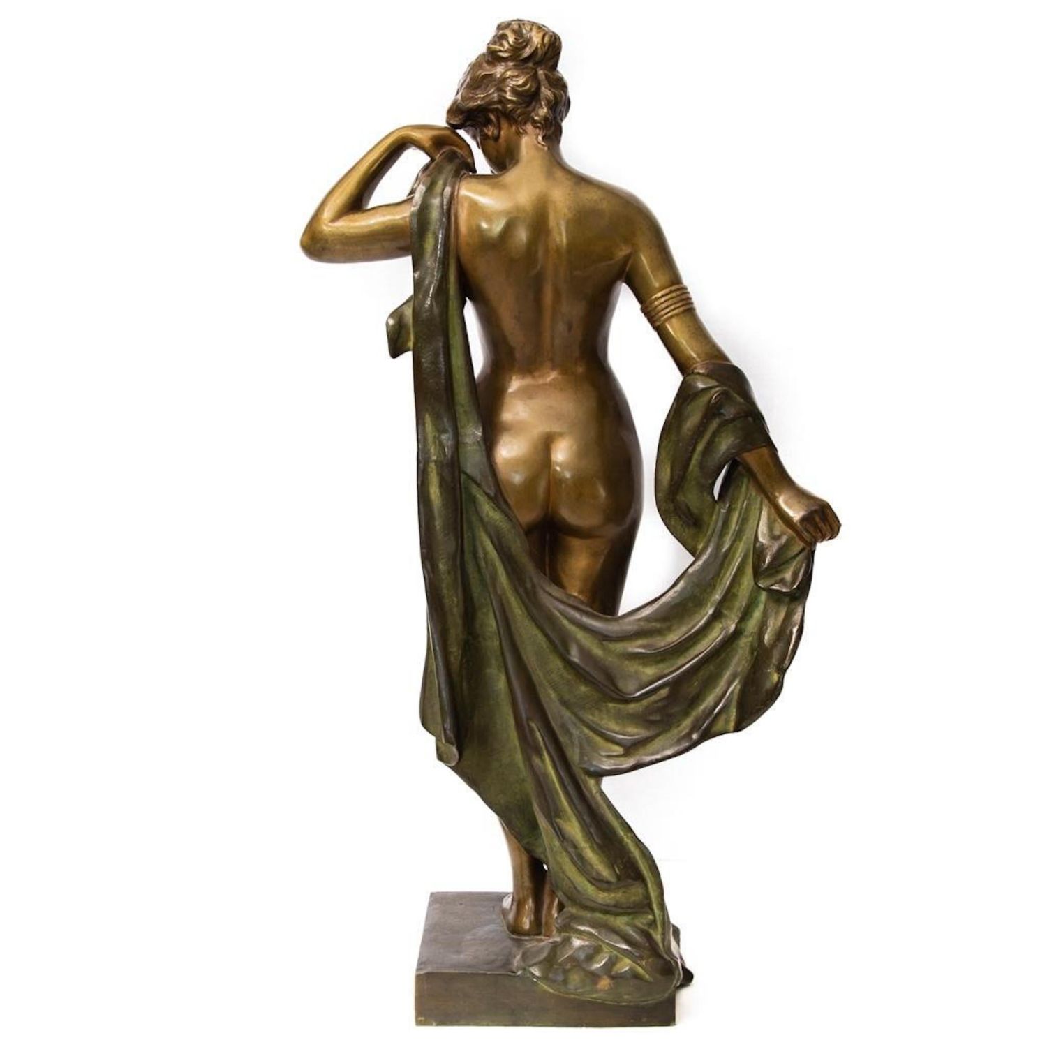 Pierre-Etienne Daniel Campagne Phryne Devant ses Juges, c.1900. Bronze female nude with draped blanket. Base reads "Phrxne" Signed Campagne on base. Height: 34" with base. Provenance: Property from the noted Zoullas Collection.