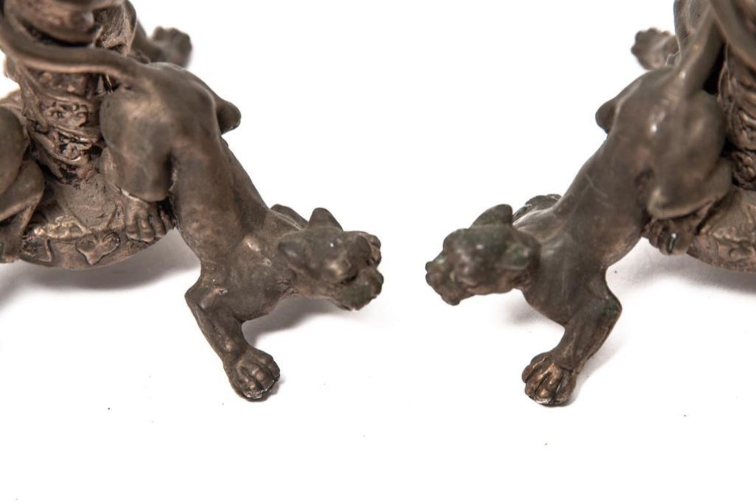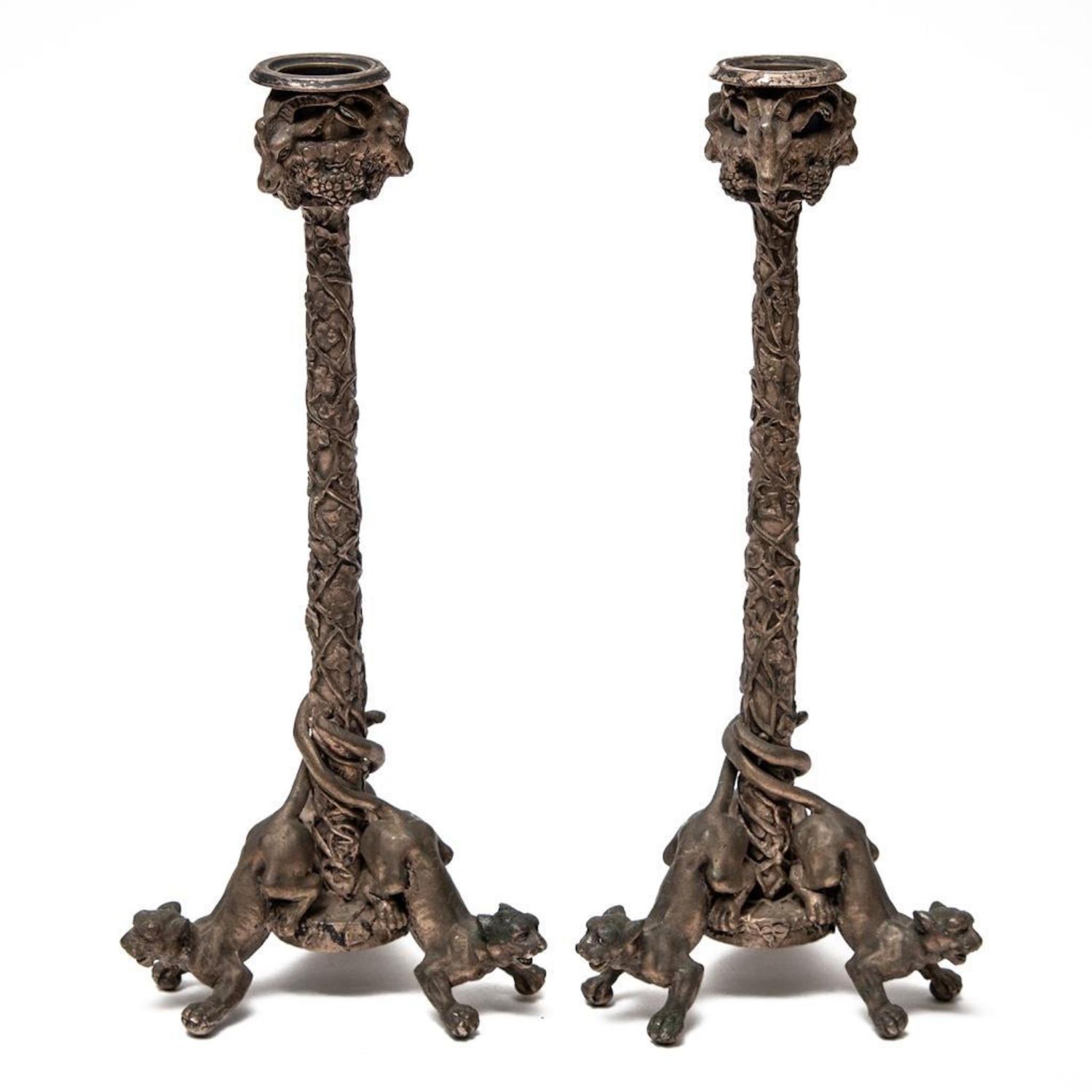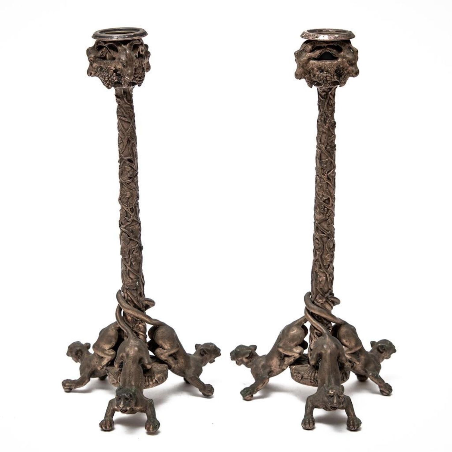 Josef Fraget signed ornate bronze candlesticks, Marked Fraget on bottom Circa 1880. Measures 10.5"H. Good condition.