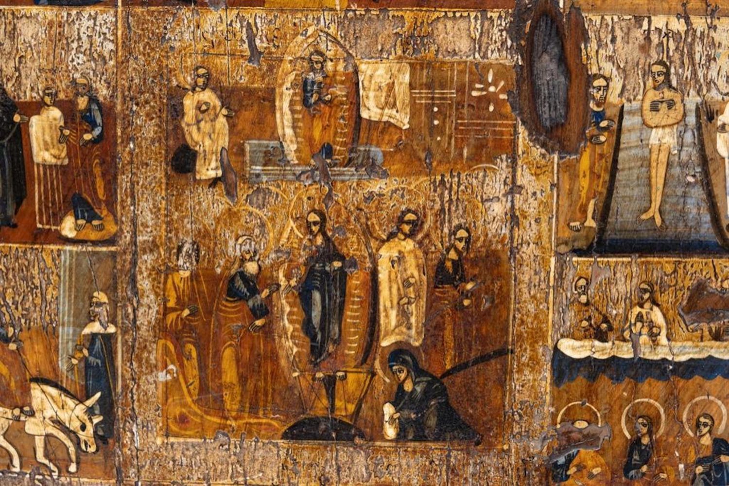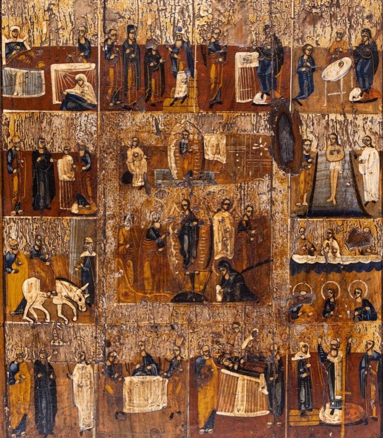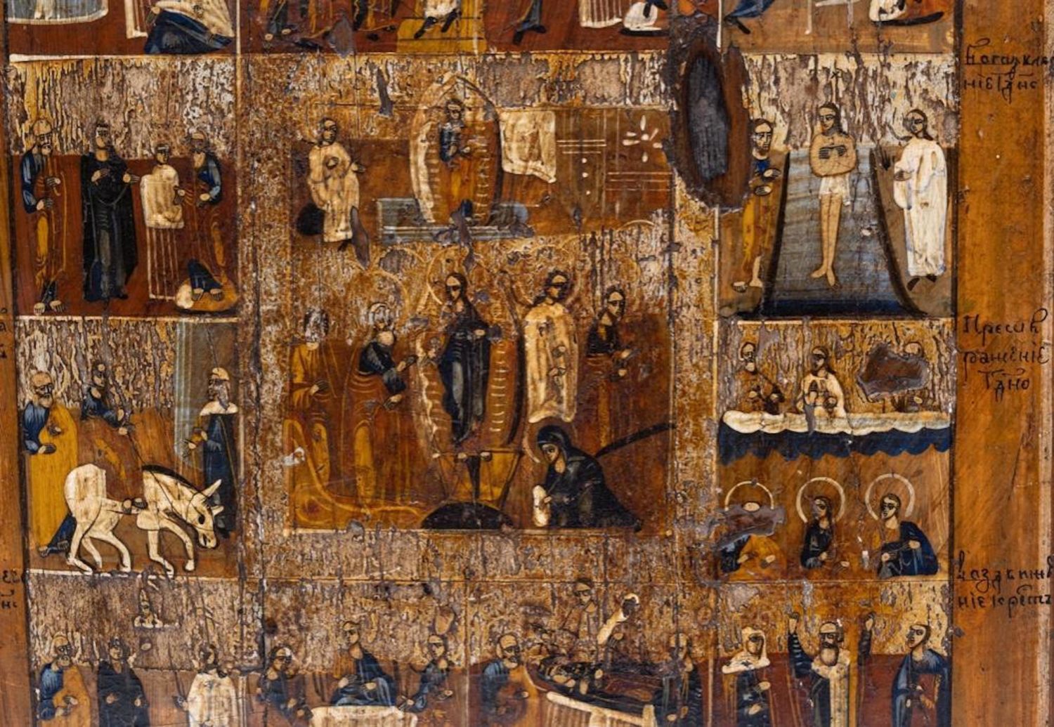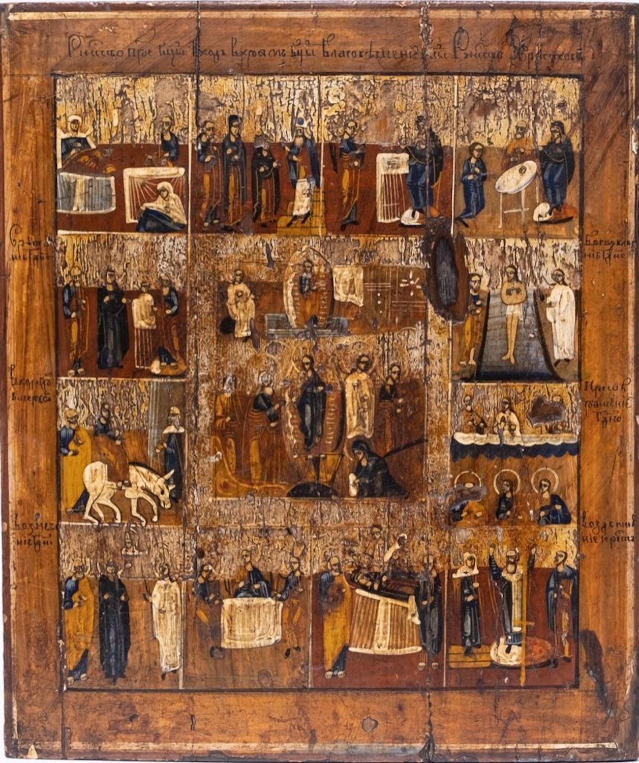 Old Russian hand painted Icon egg tempra on Wood Panel 11.5" x 14" Approx