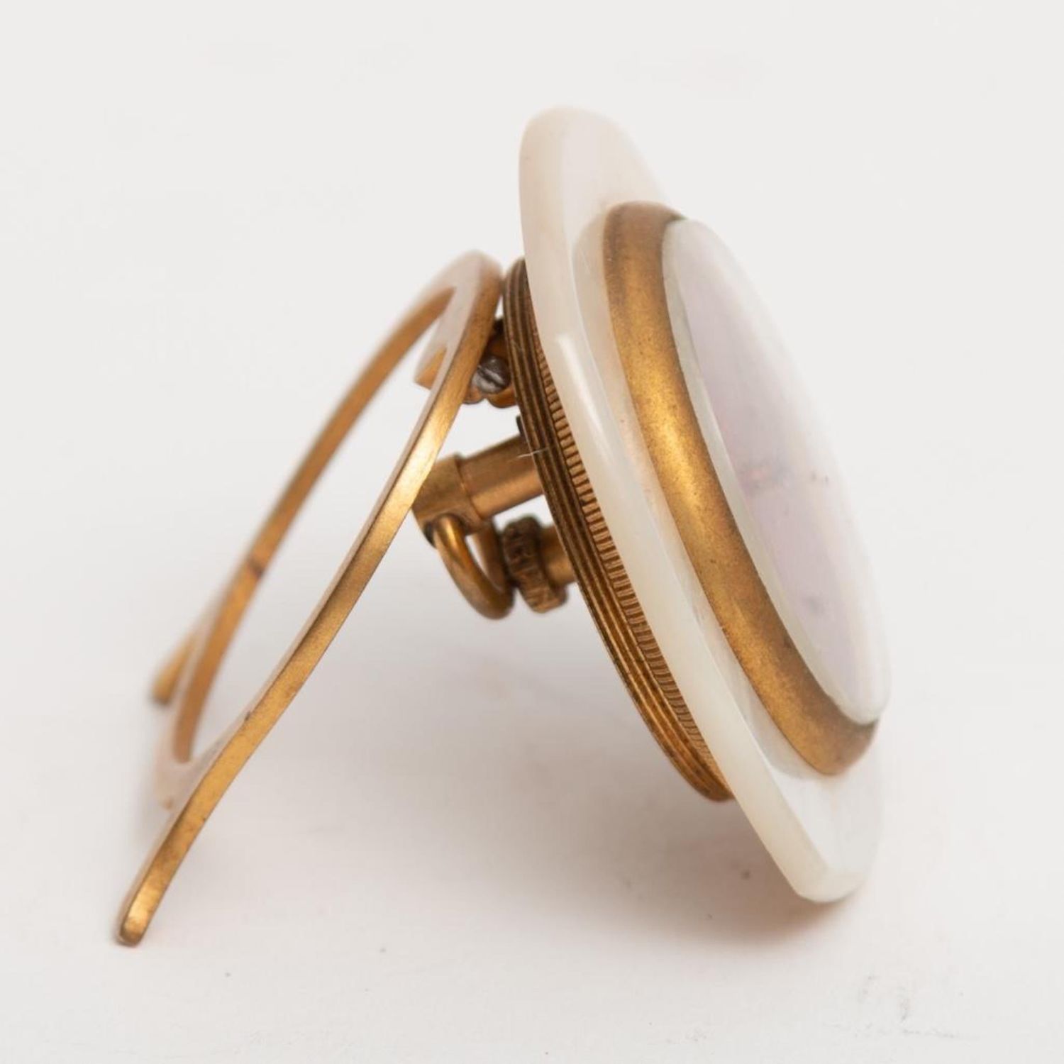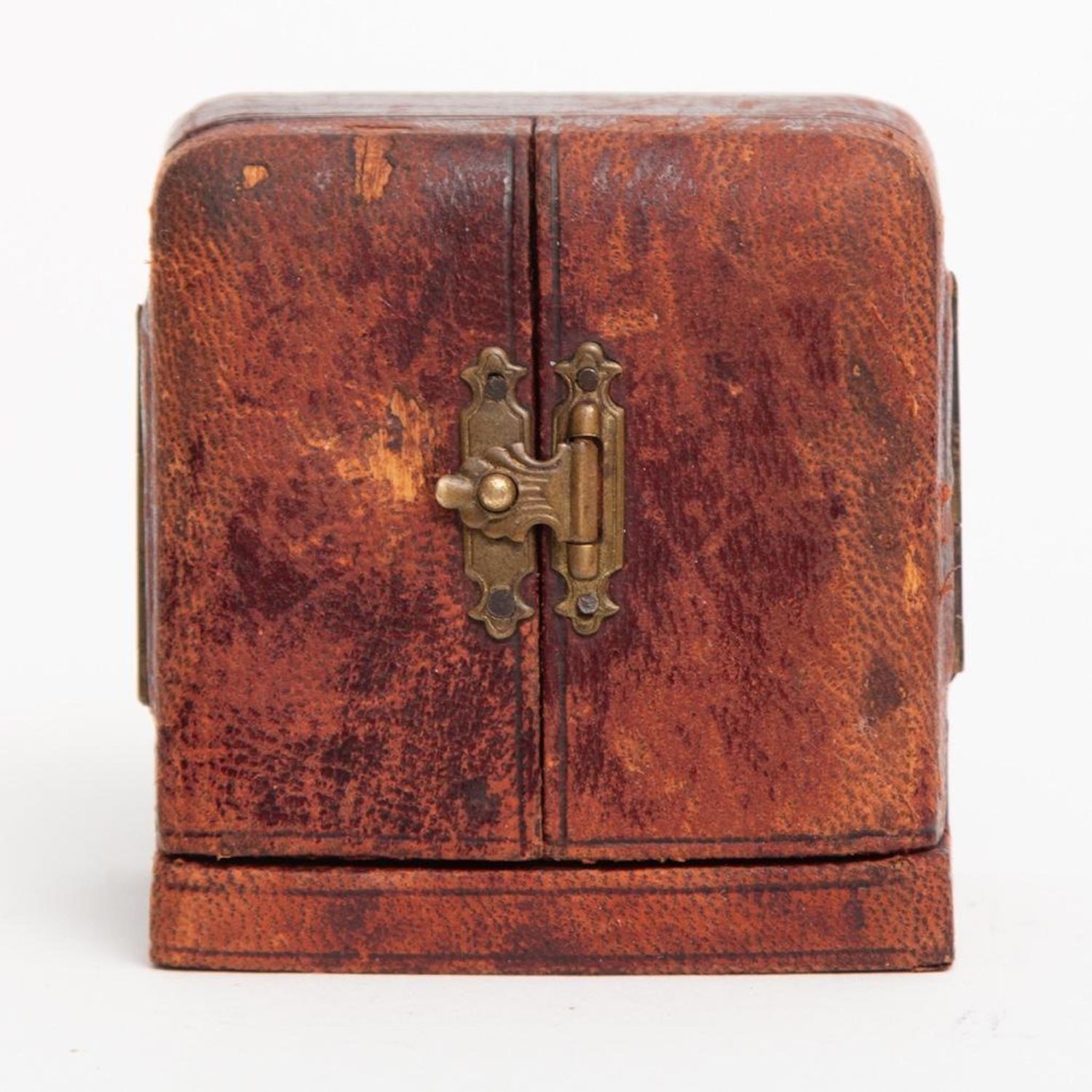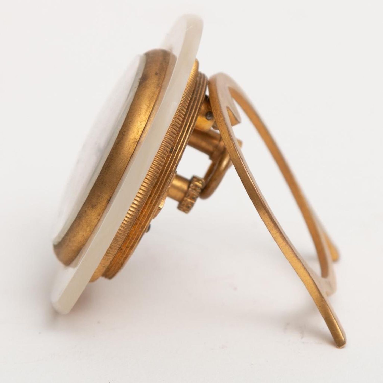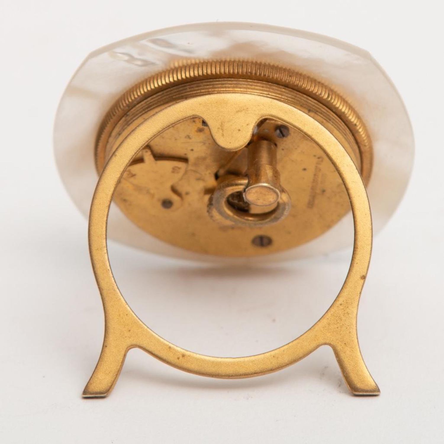 Art Deco Travel Clock. Didisheim Goldschmidt Fils Swiss Clock having a red enameled Guilloche face, surrounded by mother of pearl. Marked on back and comes with original leather fitted case. Circa 1930. Clock measure 2" x 2"