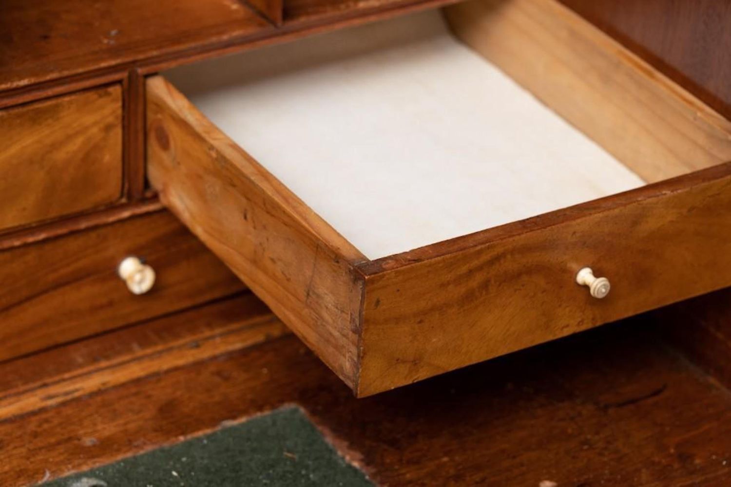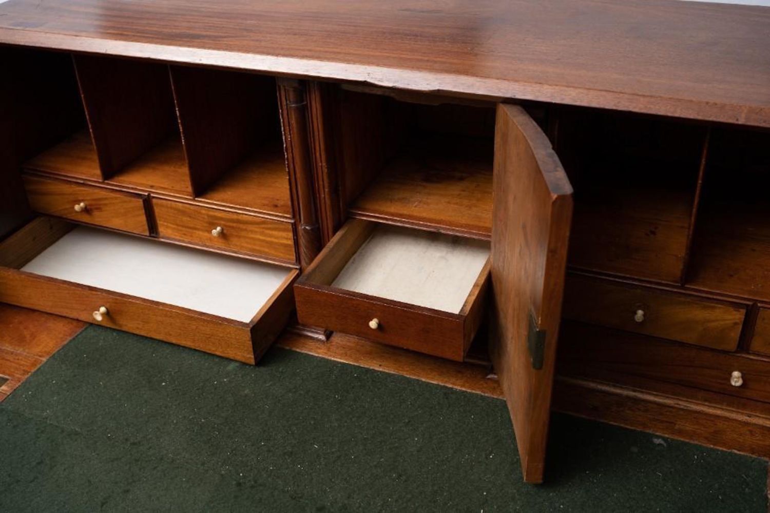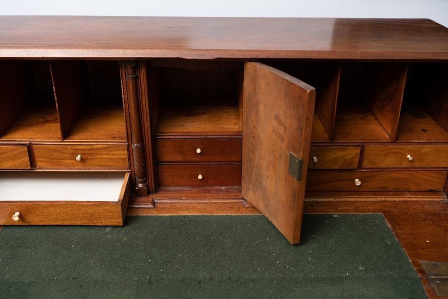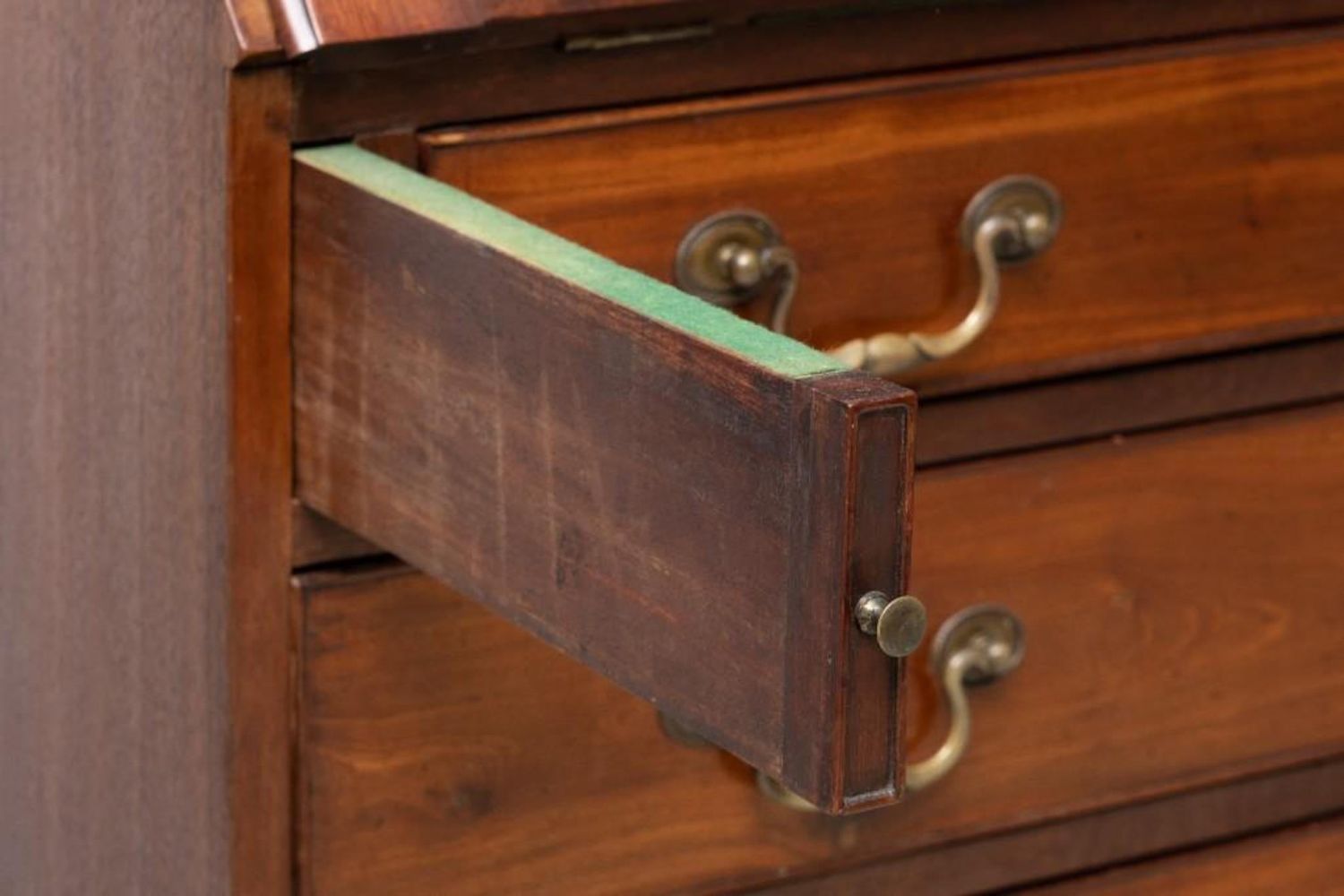 American 19th Century Mahogany Slant Front Desk. Compartmented interior and felt writing surface. Ogee bracket base. 44.75"H x 42.5"W x 21"D