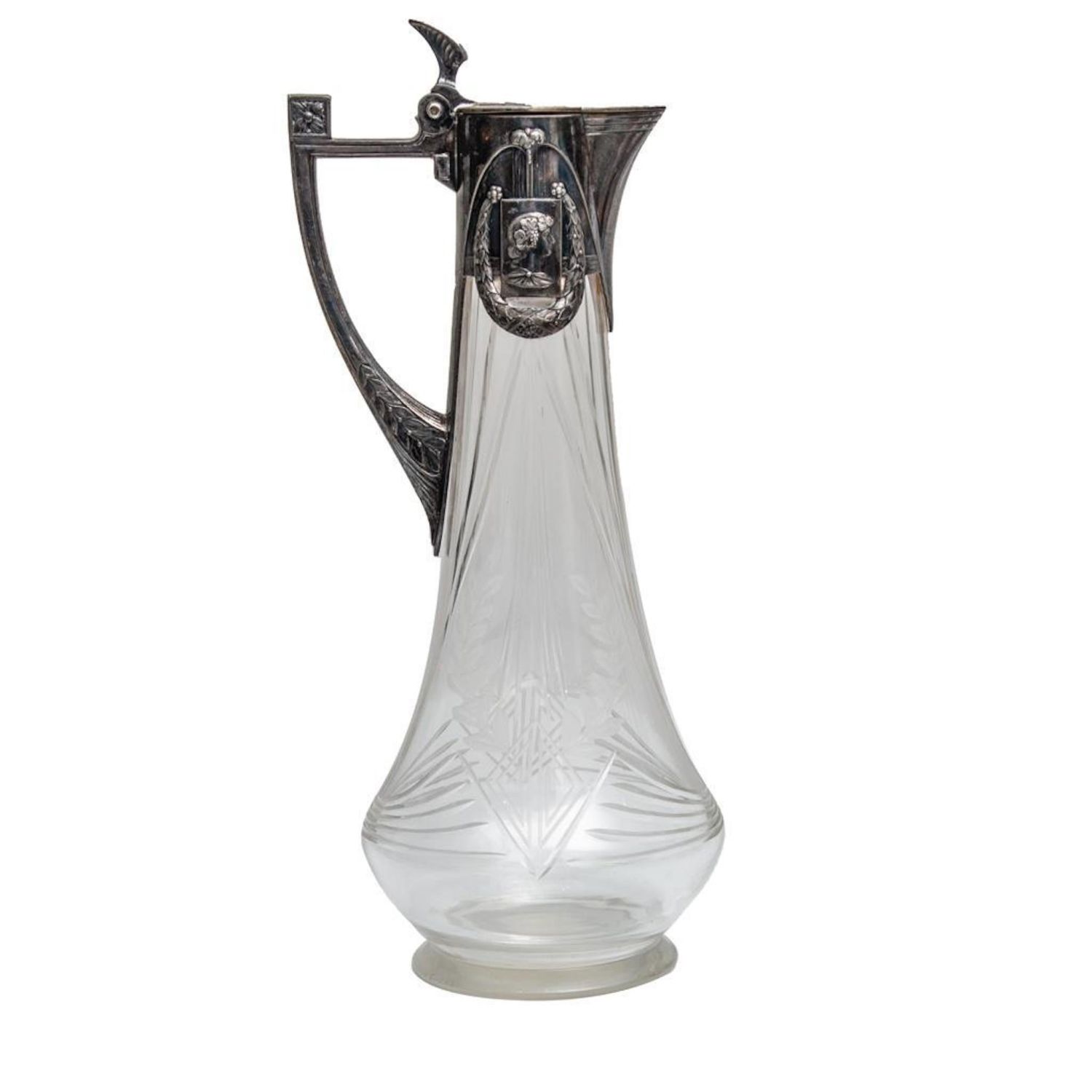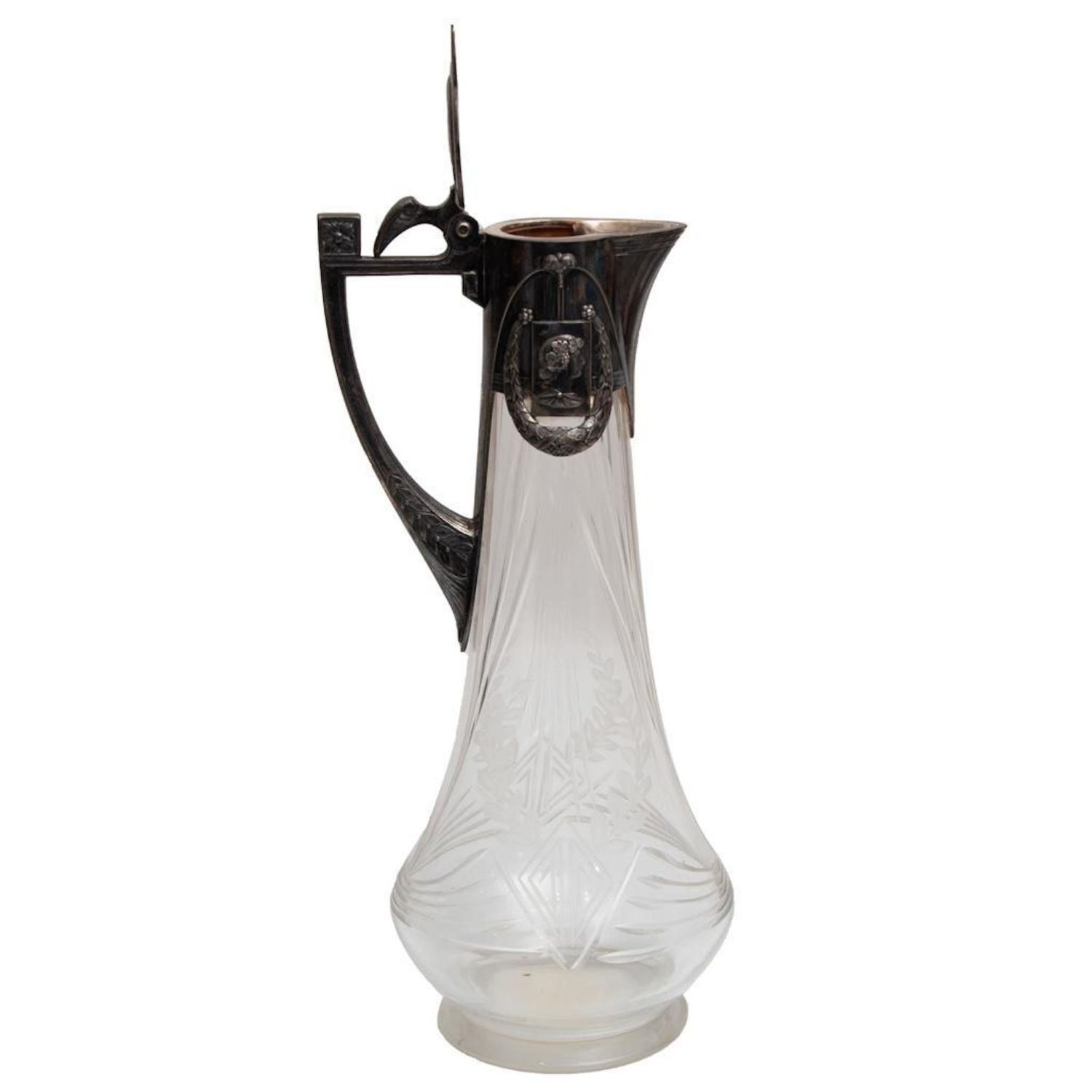 WMF Jugendstil Art Nouveau Cut Glass Carafe Circa 1900. Signed 14"H good condition overall