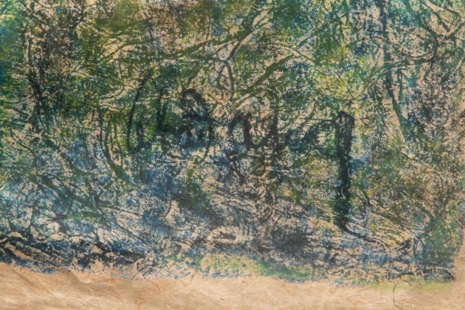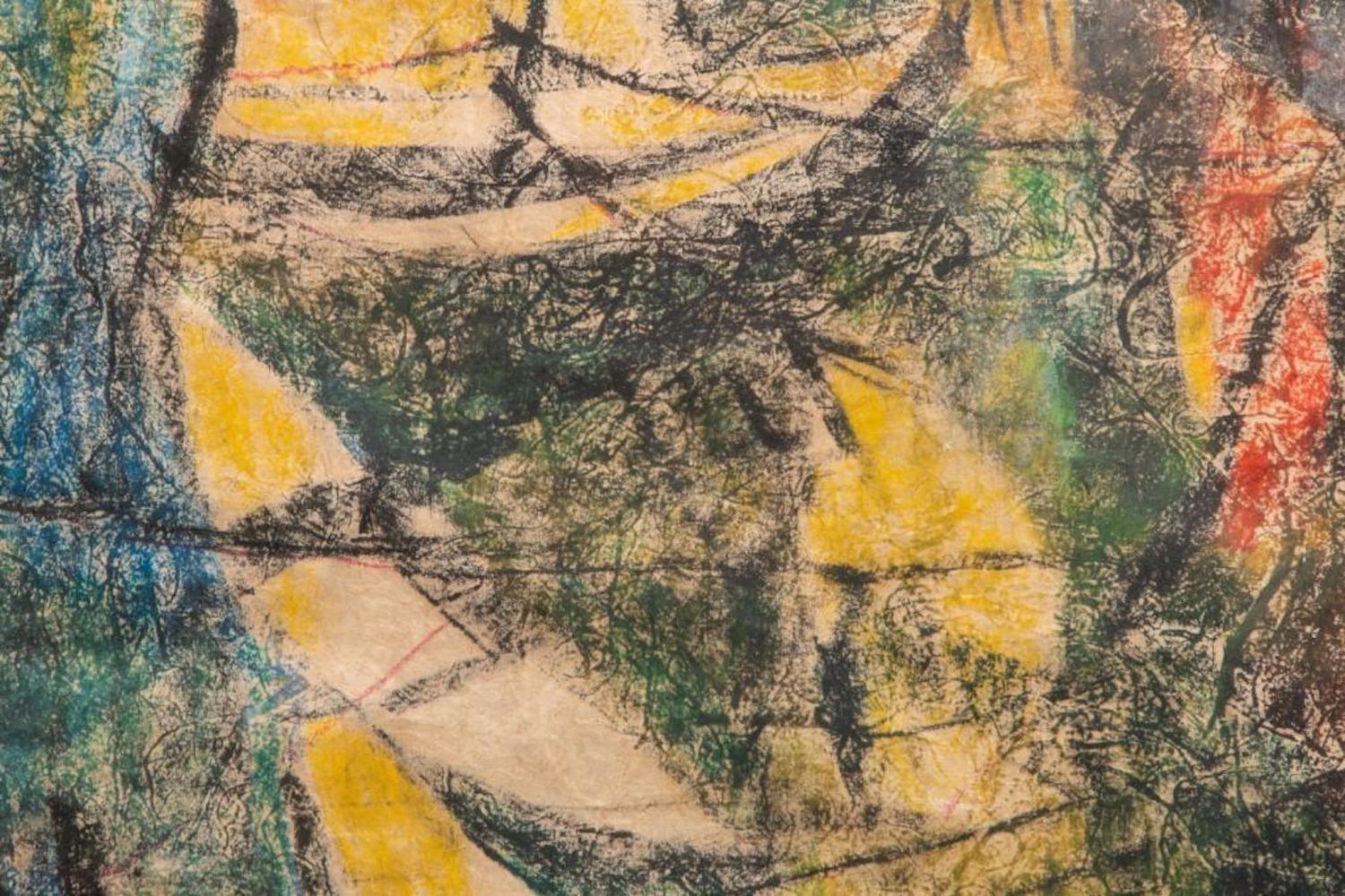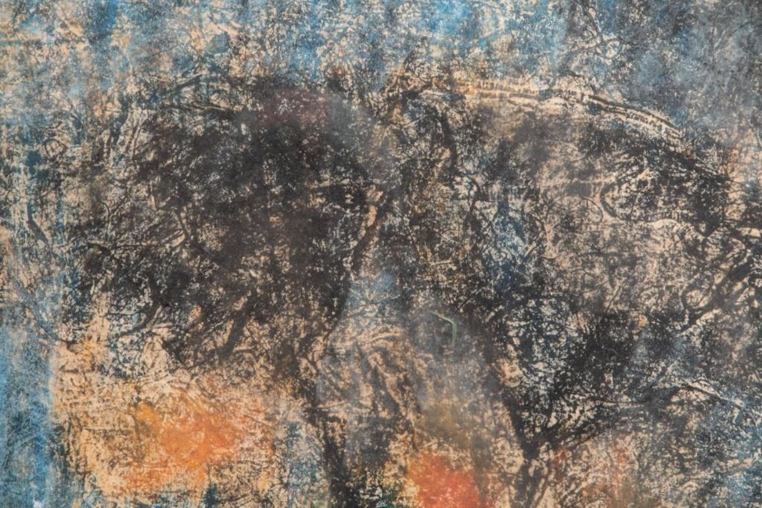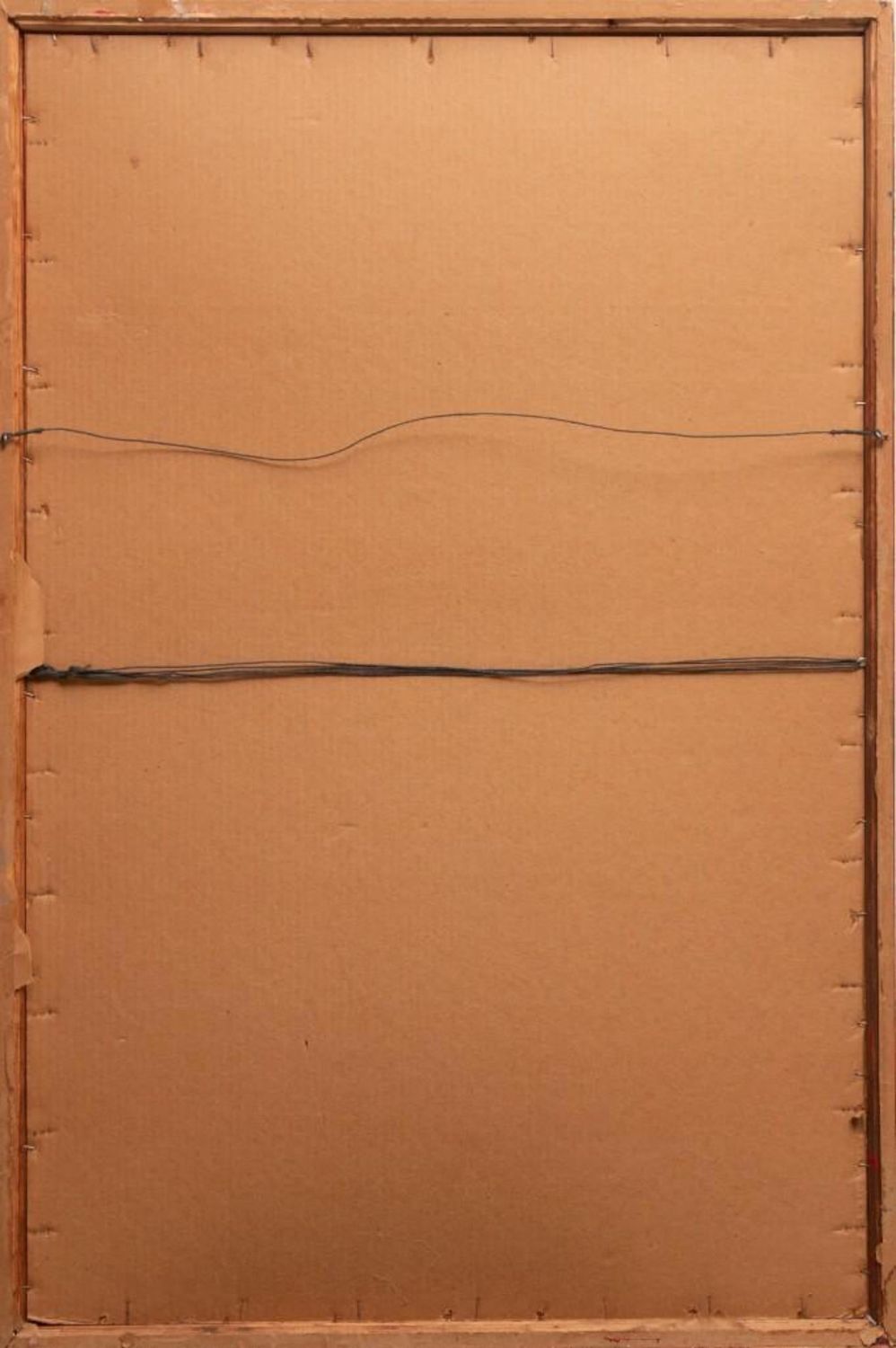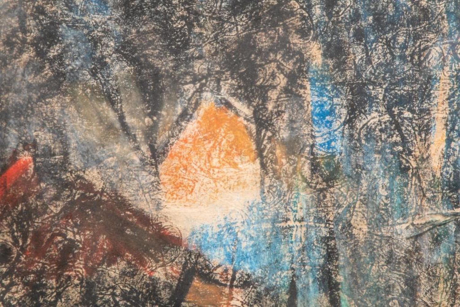"HOI LEBADANG" SIGNED MIXED MEDIA PAINTING ON HANDMADE PRESSED HEAVILY TEXTURED PAPER "FISHING VILLAGE". Framed measures 48 7/8" h x 32 1/2" w x 1 7/8" d. Picture measures 46 1/8" h x 30 1/8" w. approx in good condition overall