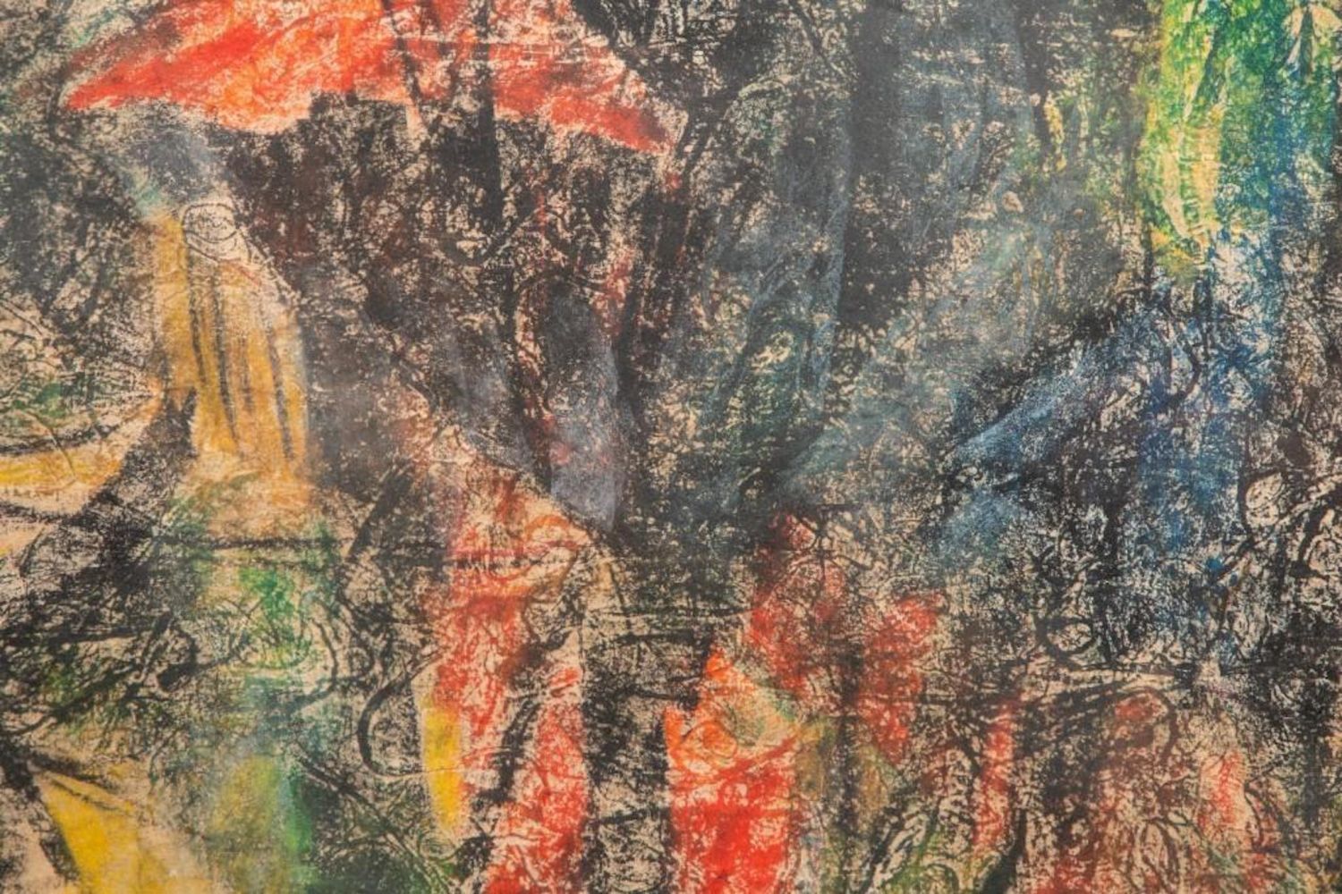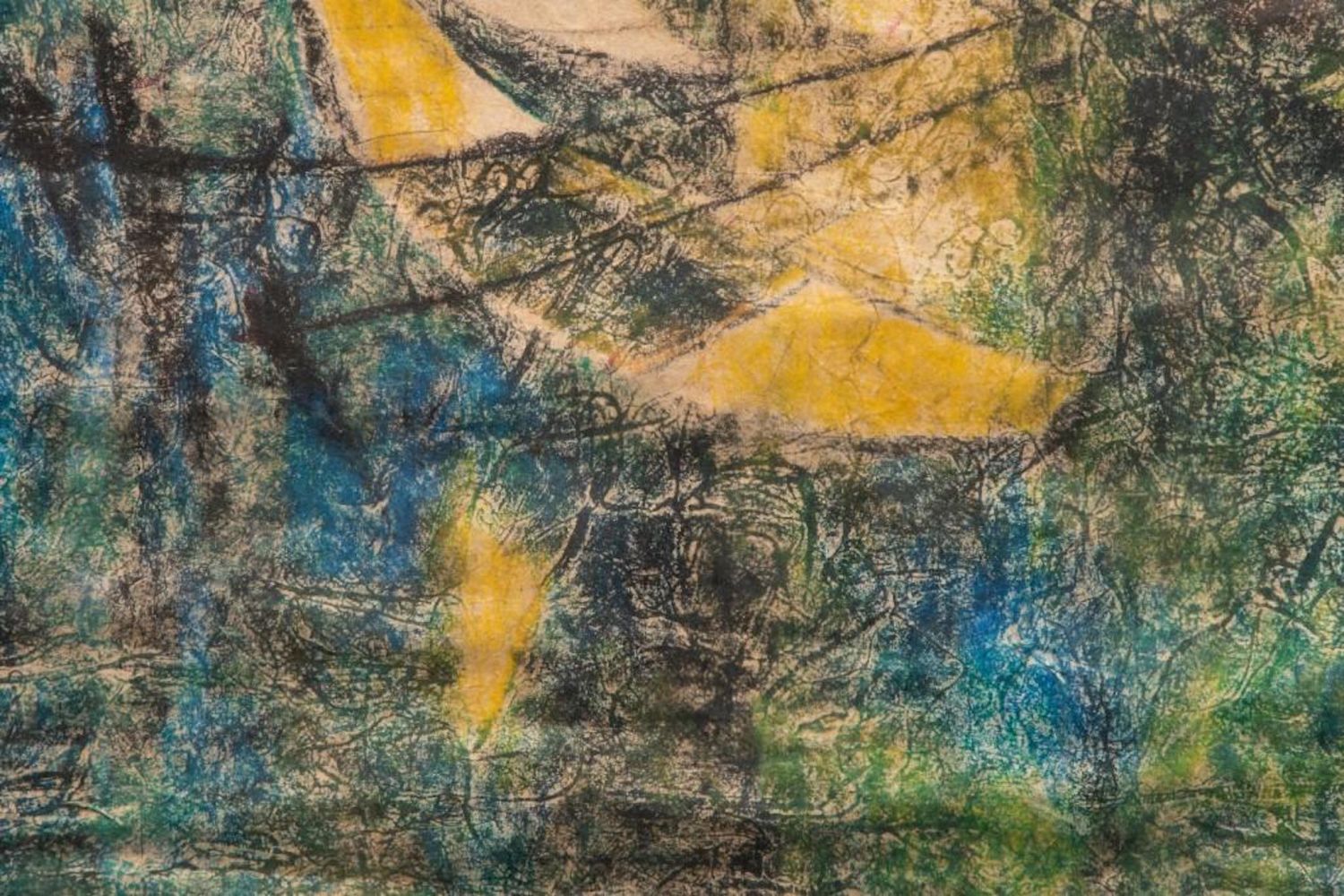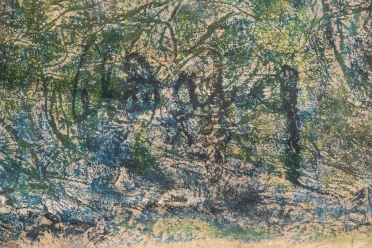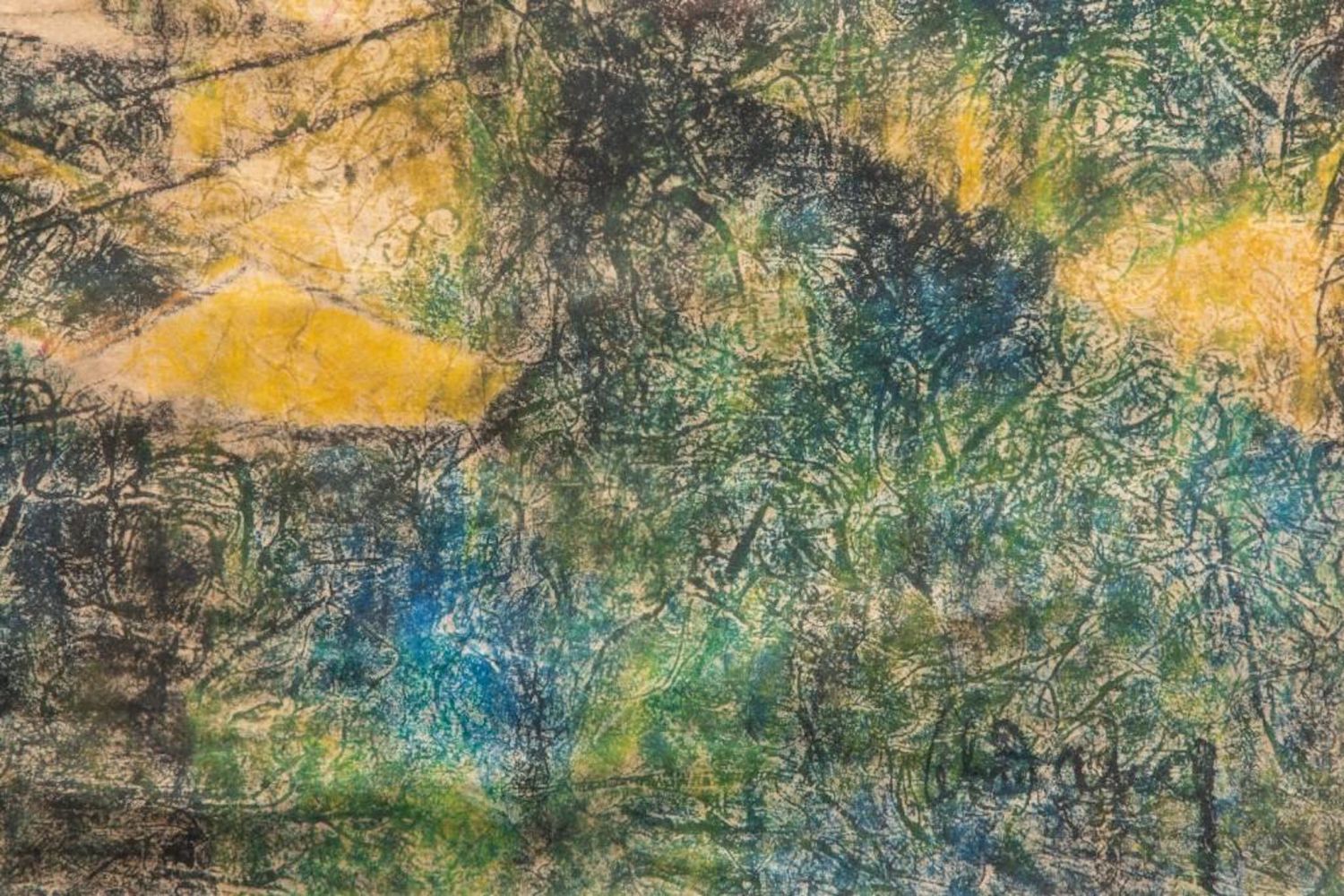 "HOI LEBADANG" SIGNED MIXED MEDIA PAINTING ON HANDMADE PRESSED HEAVILY TEXTURED PAPER "FISHING VILLAGE". Framed measures 48 7/8" h x 32 1/2" w x 1 7/8" d. Picture measures 46 1/8" h x 30 1/8" w. approx in good condition overall
