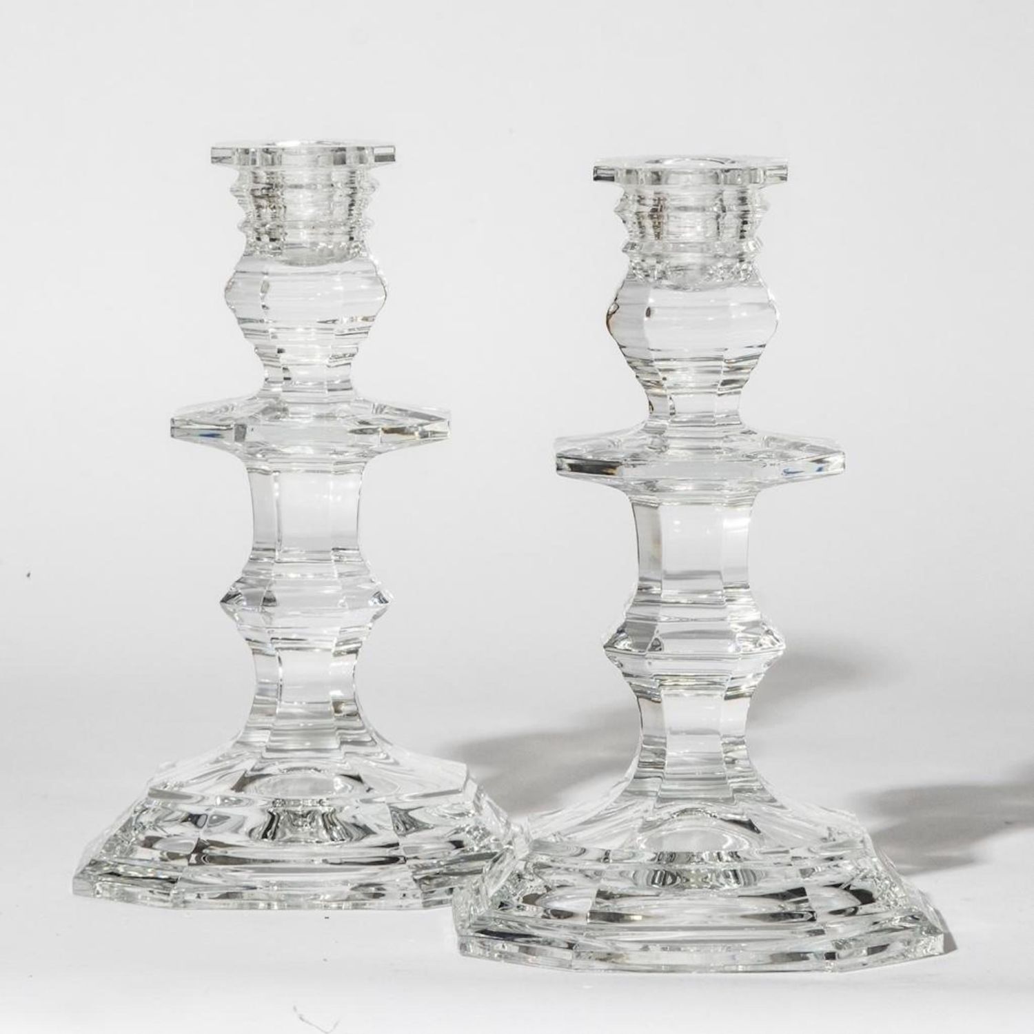 Baccarat glass candlesticks signed . Measure 7.5"H. Great condition. No visible chips or breaks.