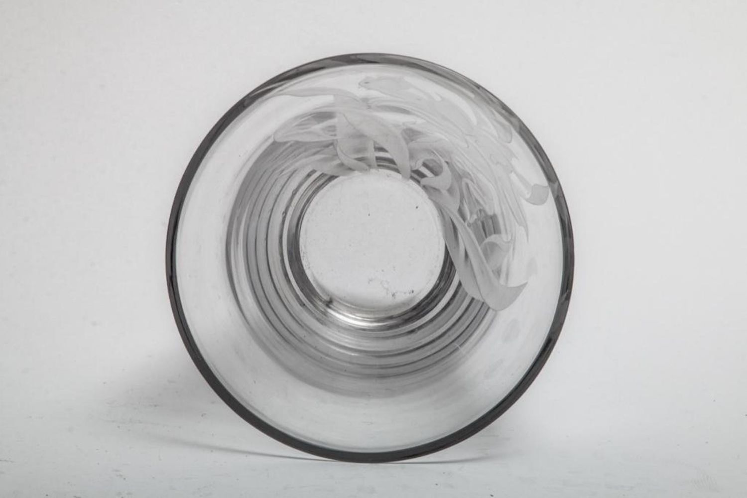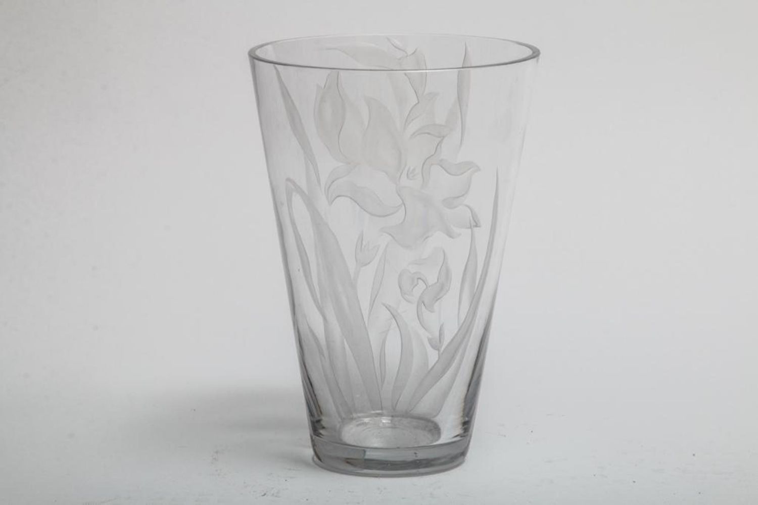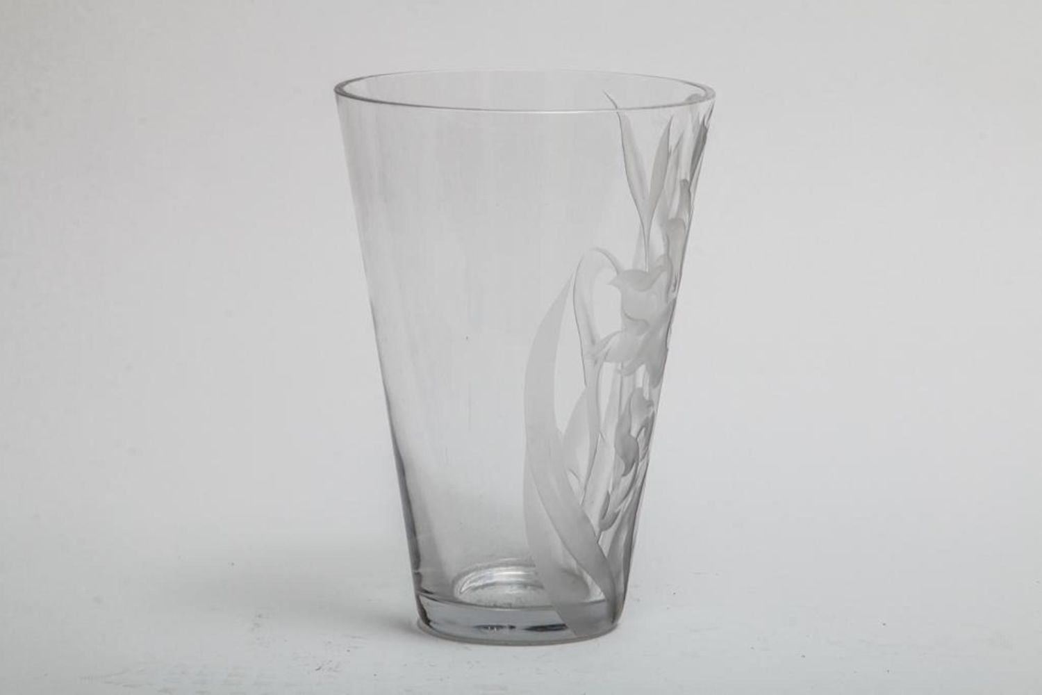 Franz Grosz Signed etched art glass vase. Measures 12"H x 8.25"D. Franz Grosz (b1909) studied at the Art Students League and the National Academy. He had a long and varied career, starting as a WPA artist. He exhibited at the Bodley Gallery in NYC, Galerie Visconti in Paris, Carnegie Institute , etc