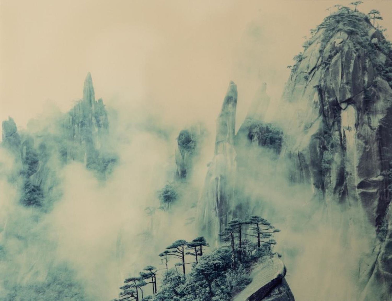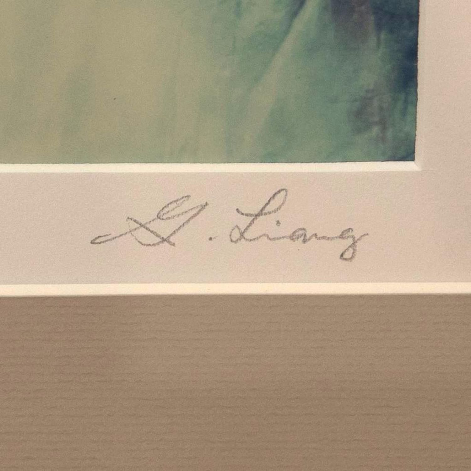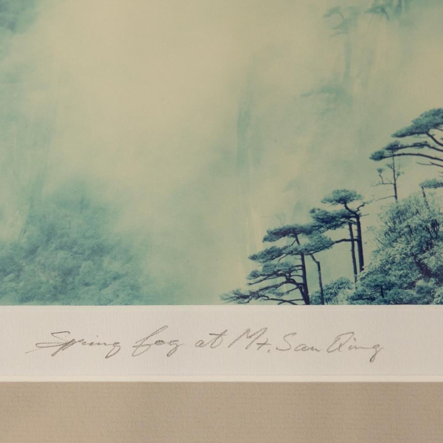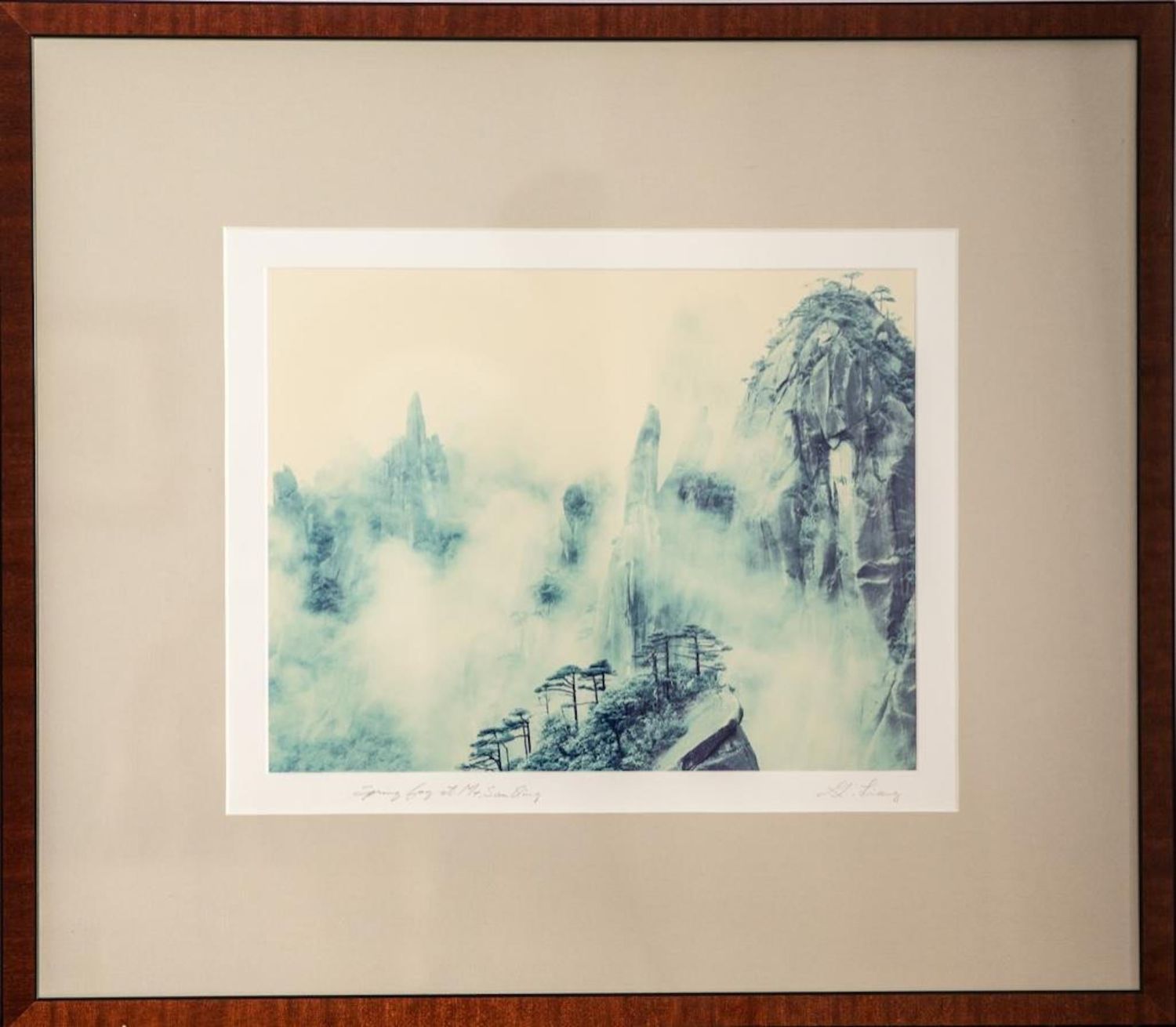 This photographic print is of Mount Sanqing and comes from The Art of Nature Photograph book. Liang Keith Guo Ji is an established contemporary visual artist. The piece is signed on the matte. It measures 24.25"W x 21.25"Framed 13.25"W x 10.25"H visible art.