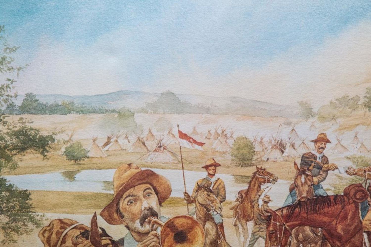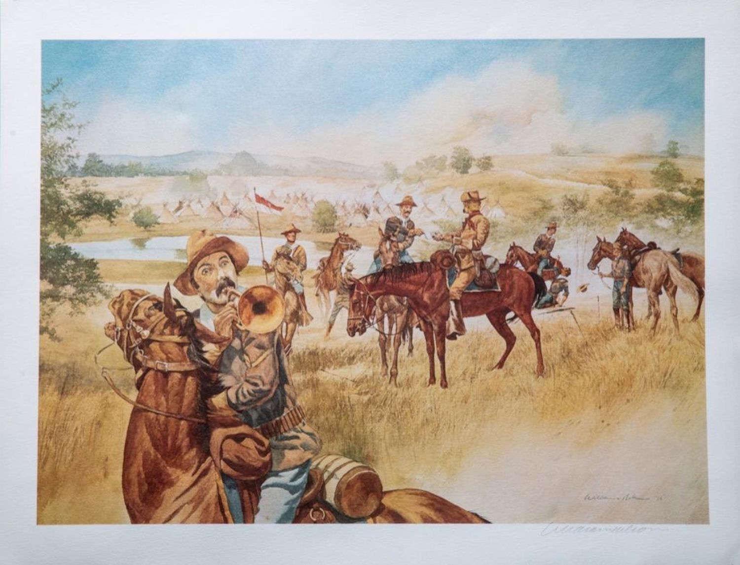 William Nelsen Pencil Signed Western Print. Measures 17" x 24". Original signed prints from the Custer Series by renowned artist William Nelson, The Battle of Little Bighorn. good condition overall
