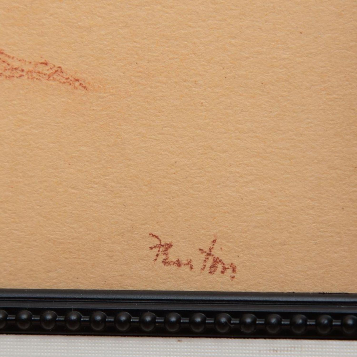 John Fenton crayon on paper drawing. Signed bottom right. Measures 19 3/8" x 23.5": Visible 13 3/8 x 10 3/8" Approx. Painter, printmaker and teacher John Fenton was born in Mountaindale, New York. He moved with his family to Mount Vernon, New York, where he lived for some thirty years before settling permanently in Woodstock, New York. He attended The Art Student’s League of New York and Atelier 17, Paris. His work was the focus of a number of one-man shows during the 1950s and 1960s, and was exhibited in numerous museums and galleries including the Art Institute of Chicago, The Museum of Modern Art in New York, The Corcoran Gallery in Washington, D.C. And the Pennsylvania Academy.Fenton taught at New York University and Goddard College. His distinctly surrealist work won awards from the American Academy of Arts and Letters, the National Academy of Design, and numerous other institutions, and is included in the collections of the Smithsonian American Art Museum, the Corcoran Gallery among others. He died at Woodstock, New York.