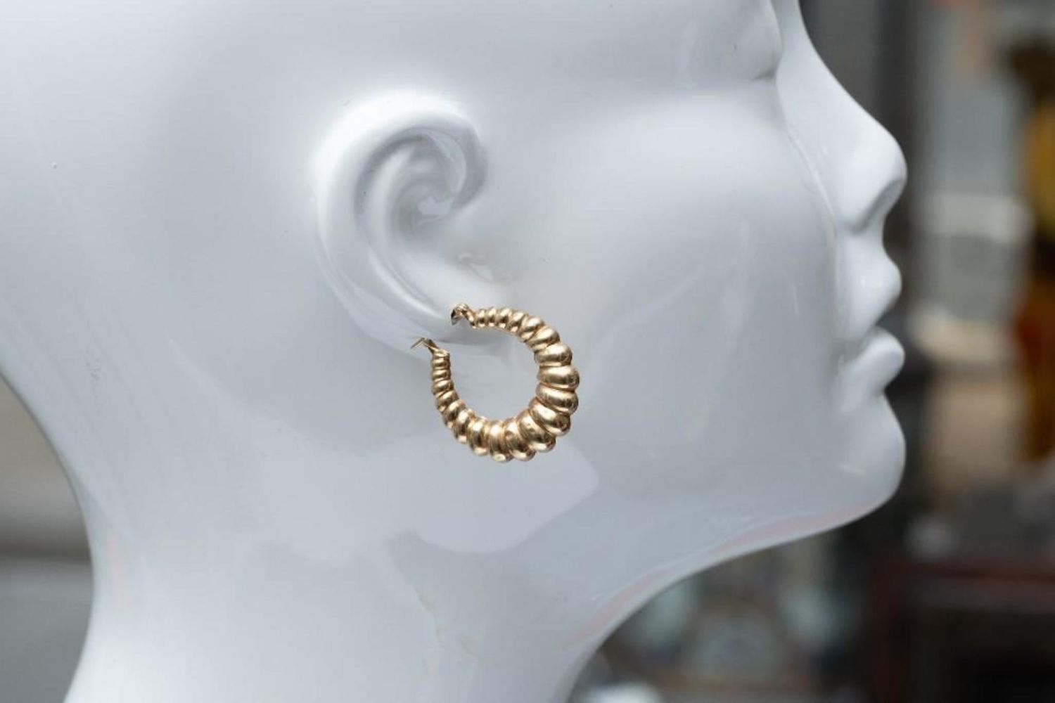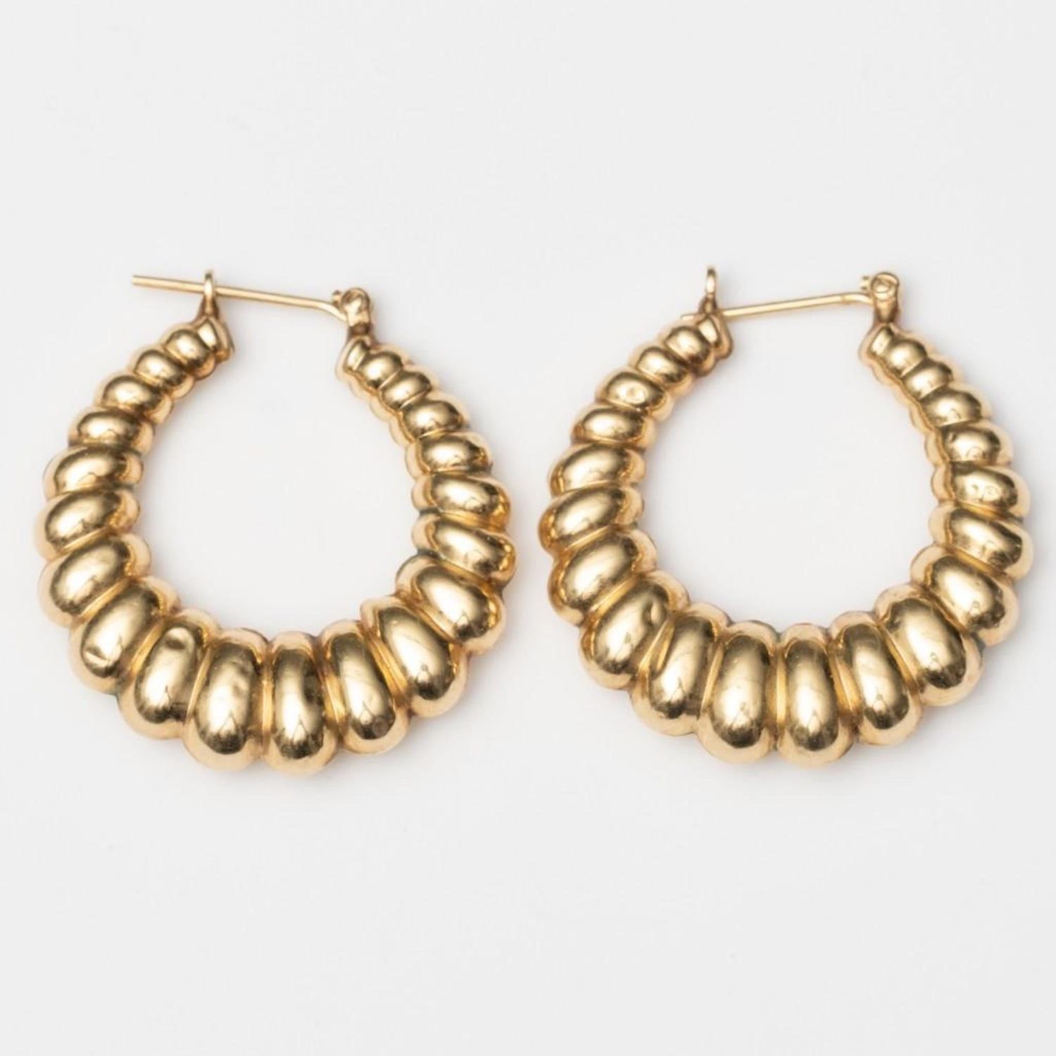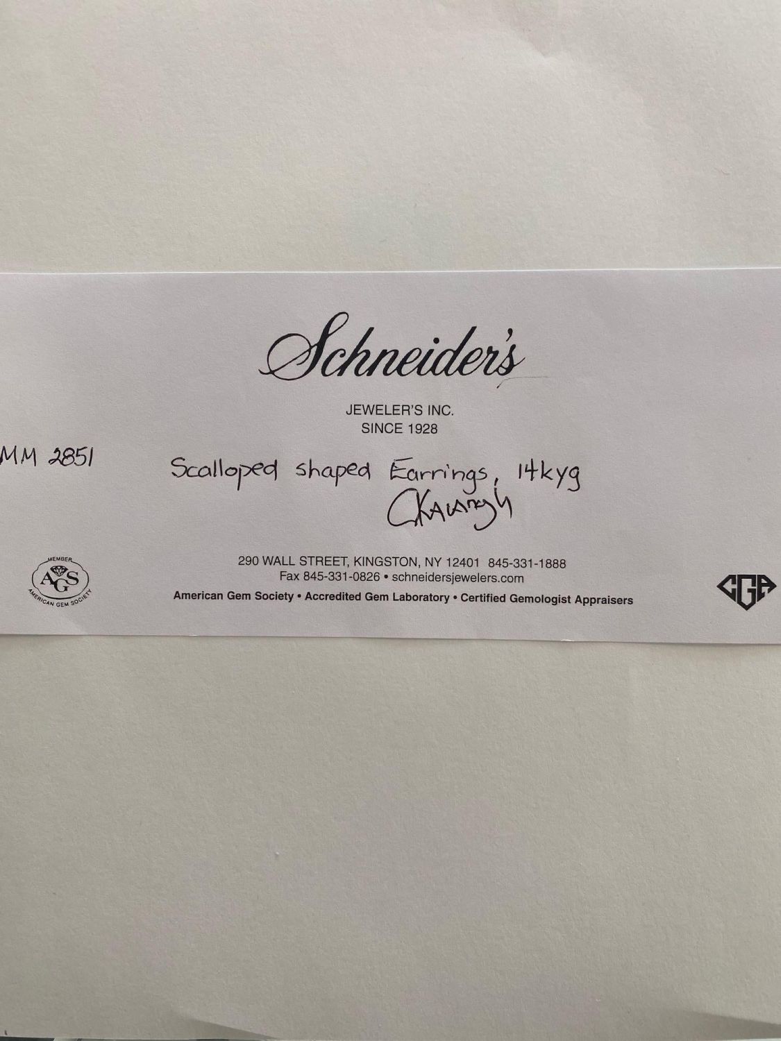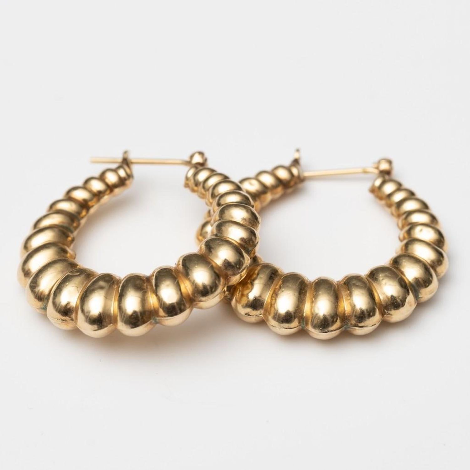 14K Gold Scalloped Earrings. The earrings weigh 3.3 grams and measure 27.4mm wide.