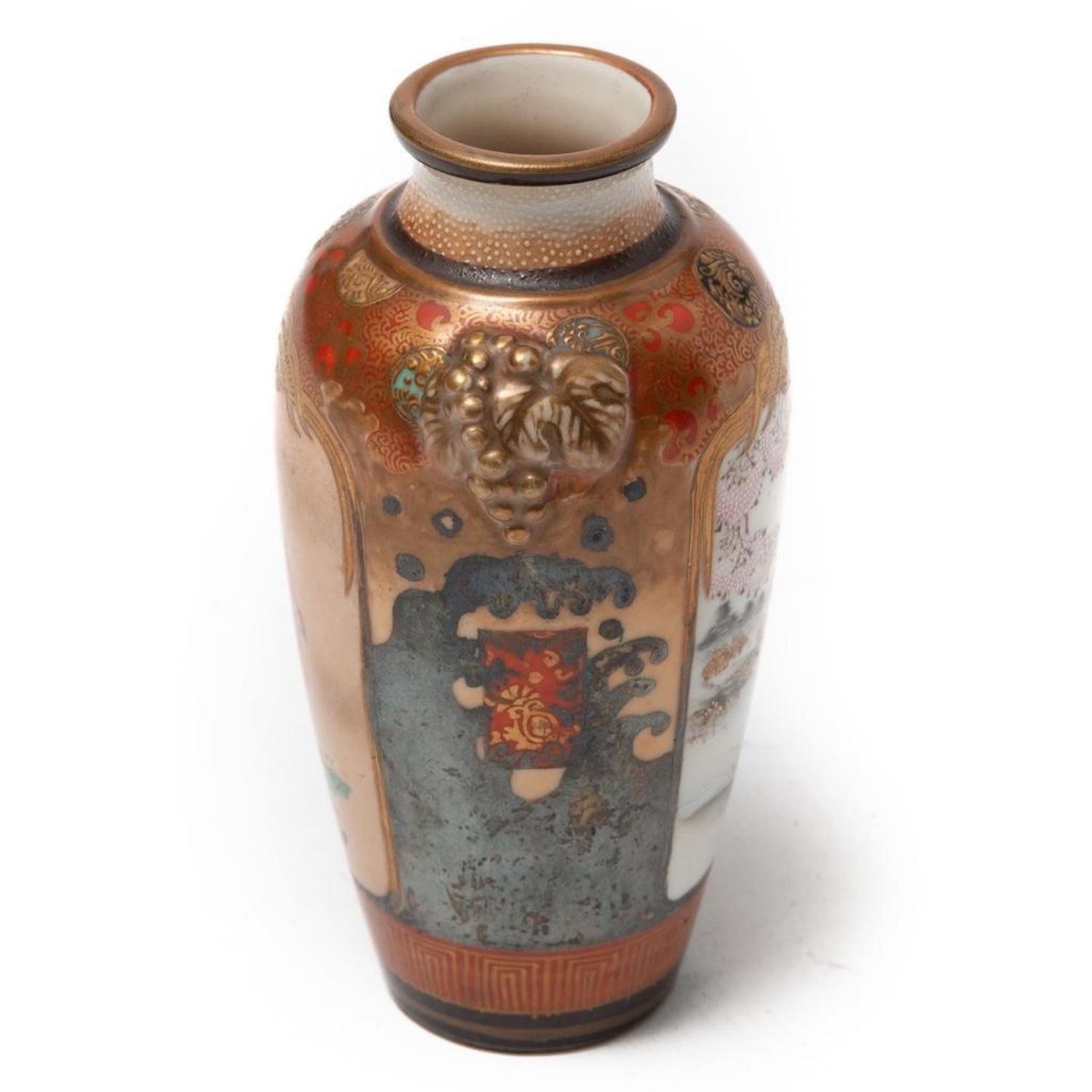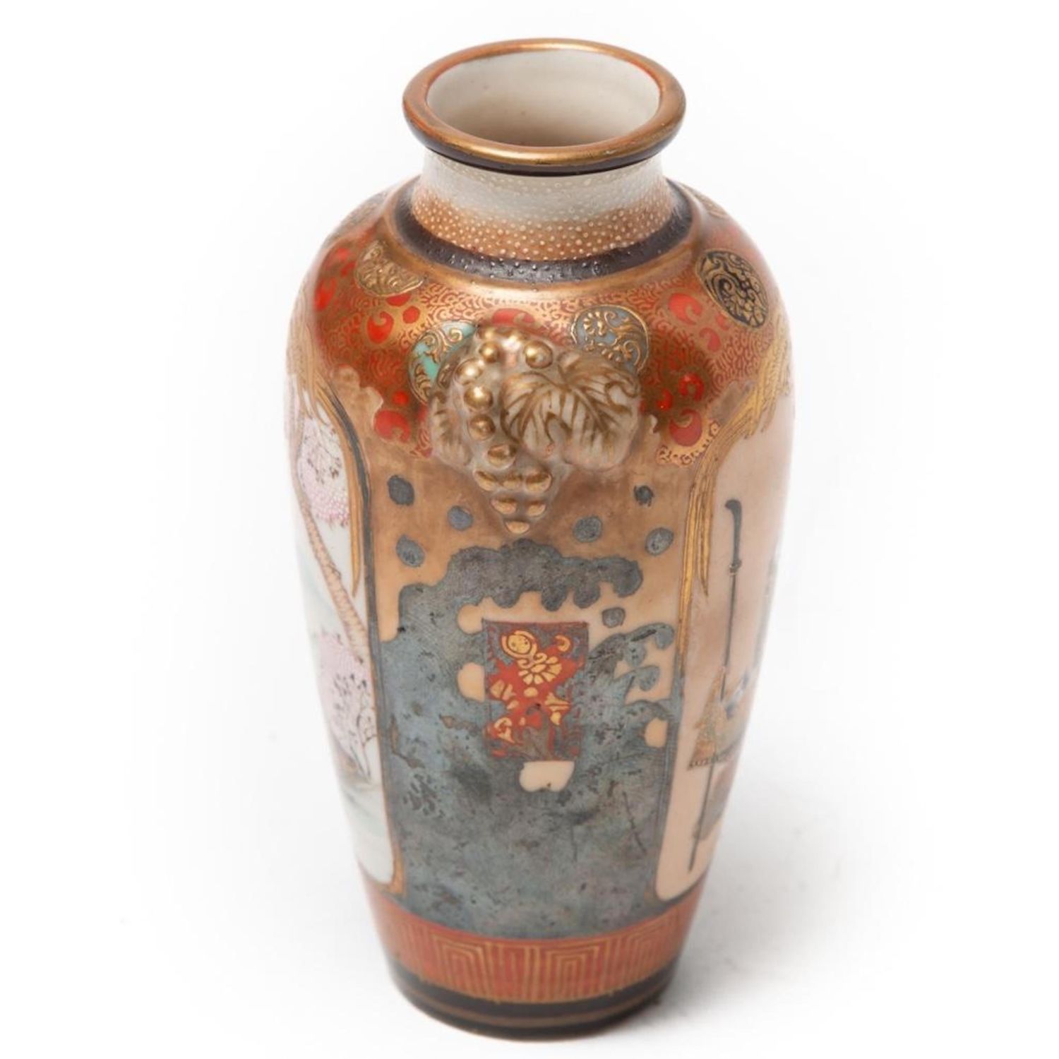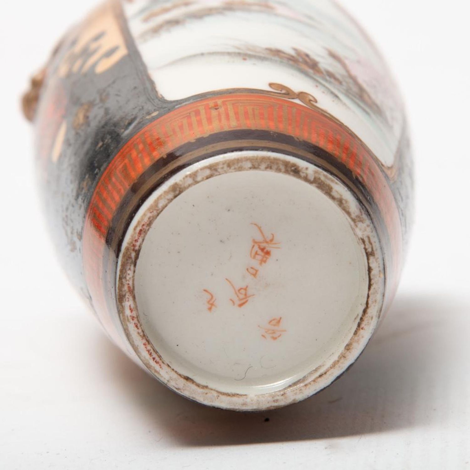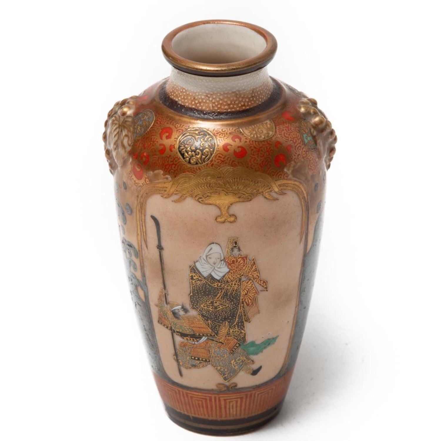 Small and finely detailed meiji Japanese Kutani vase, c.1890 depicting A Samurai with two women. Measures 4 7/8" H no issues as regards condition