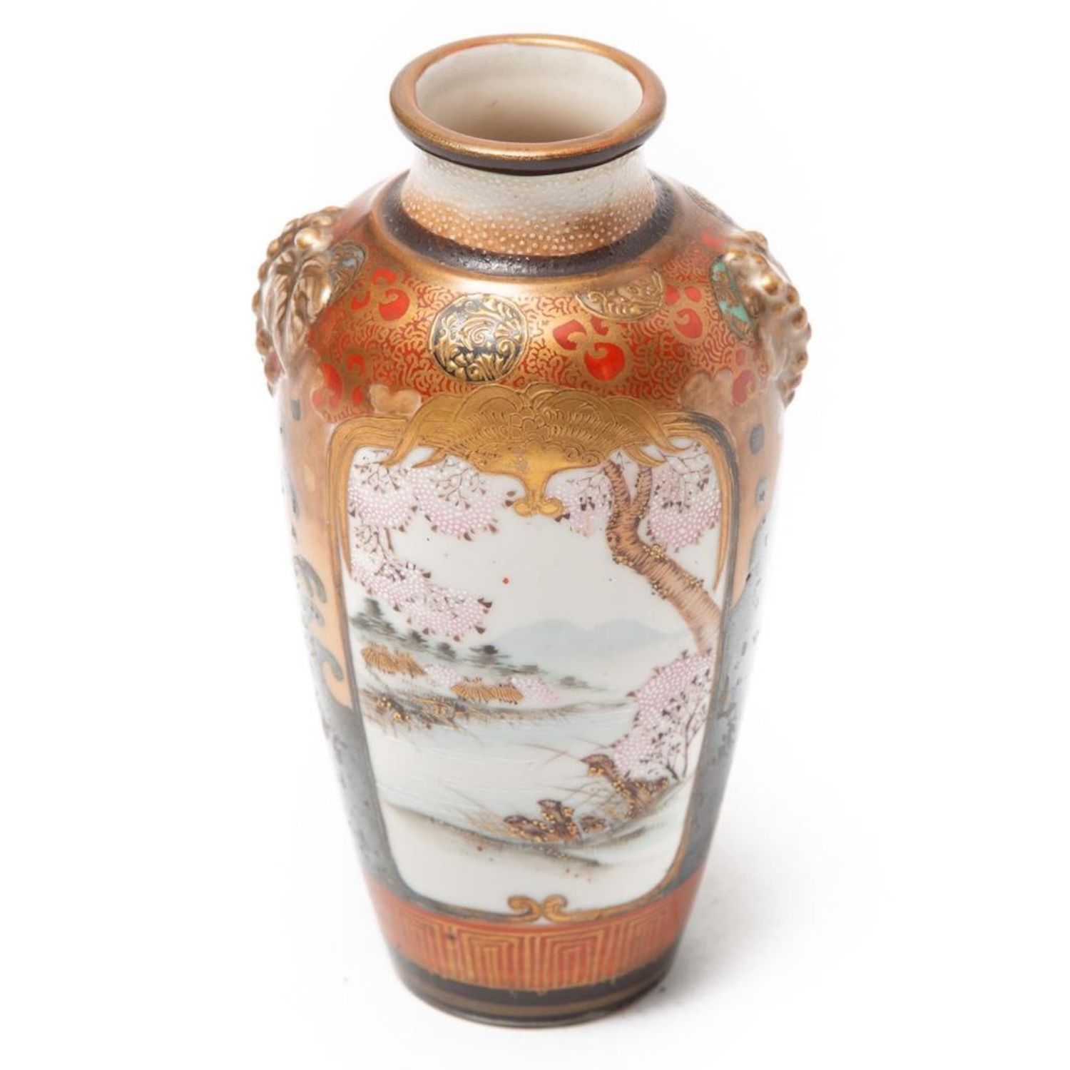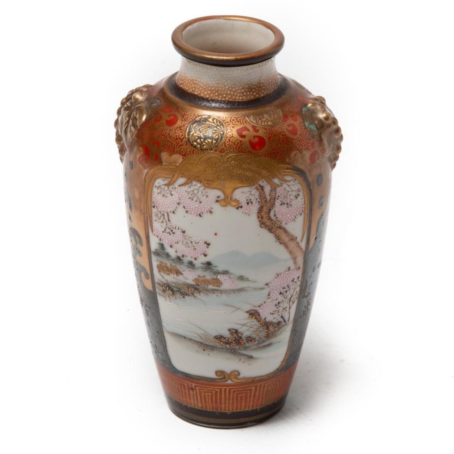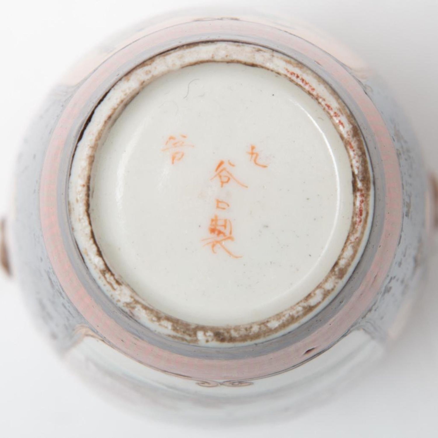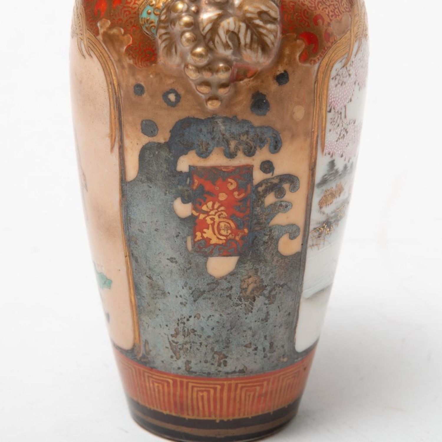 Small and finely detailed meiji Japanese Kutani vase, c.1890 depicting A Samurai with two women. Measures 4 7/8" H no issues as regards condition