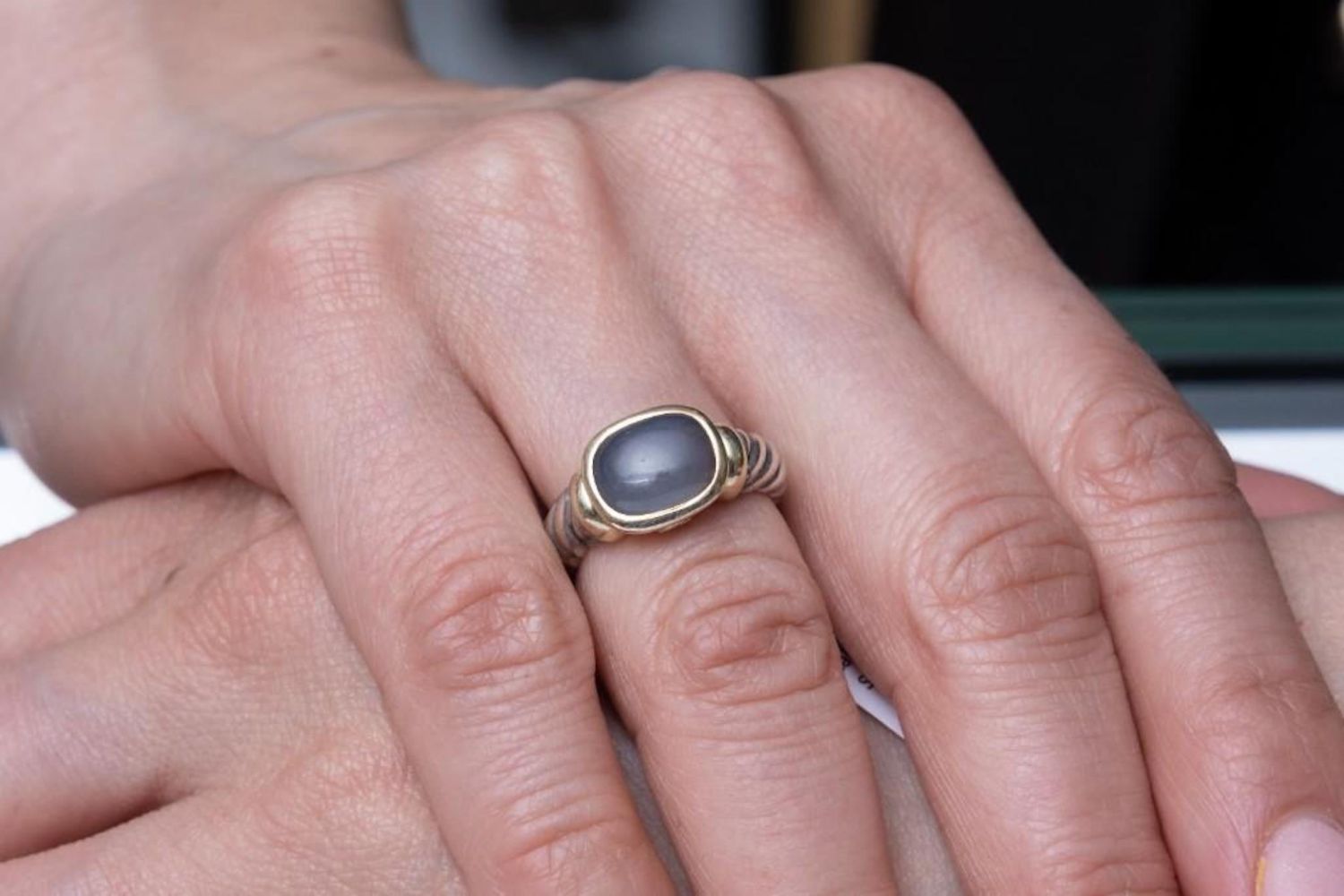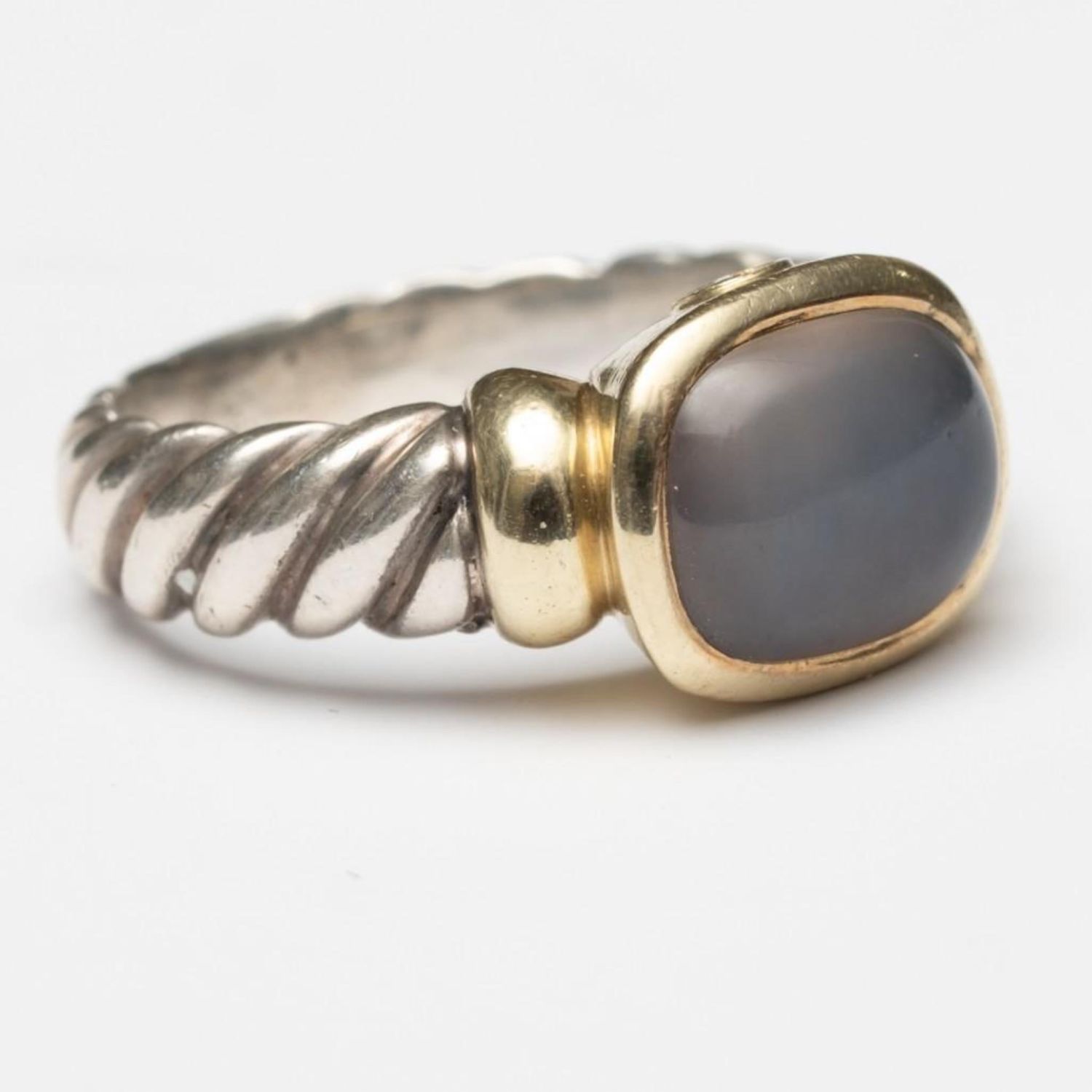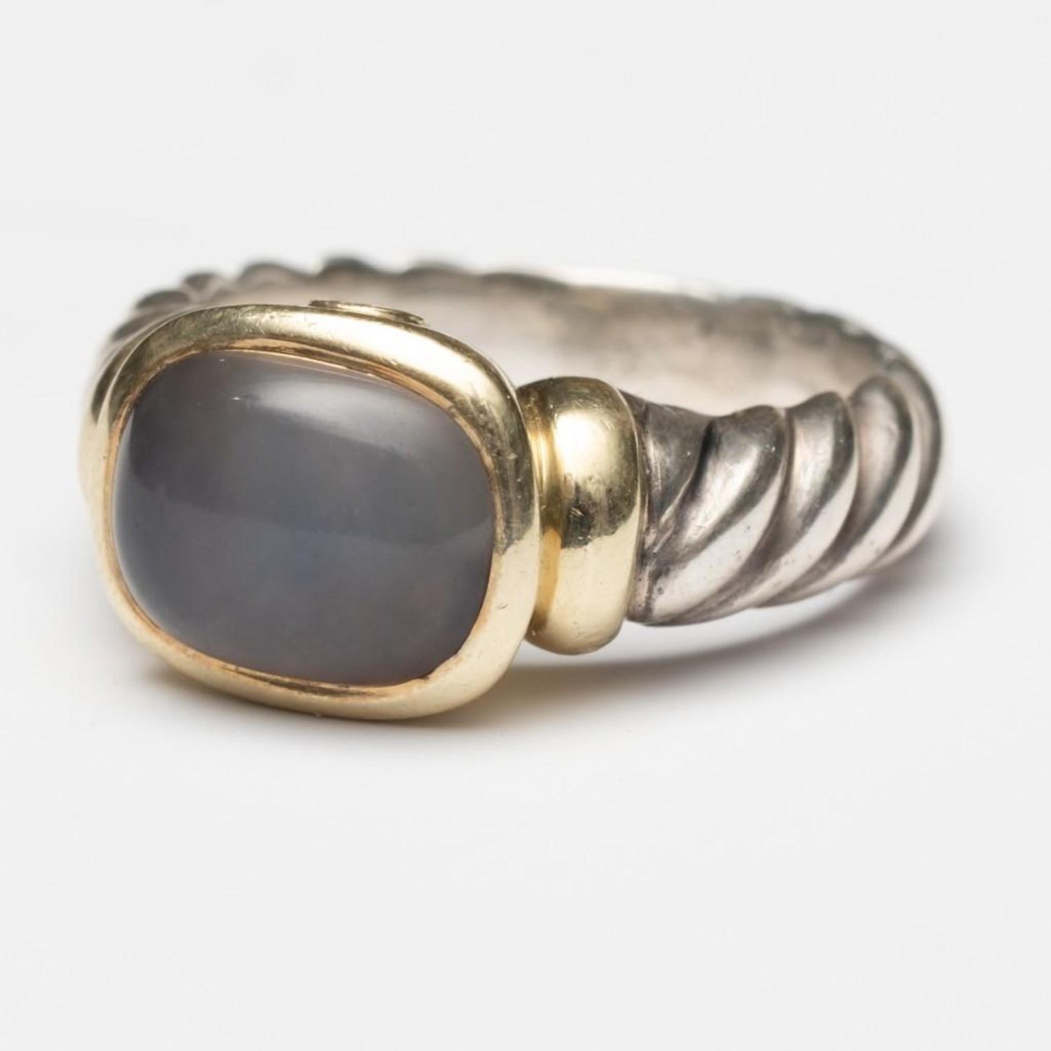 14k gold and silver cable ring by David Yurman, with 10mm x 7.8mm chalcedony. Ring size – 6.25, ring top is 10mm wide. Marked: DY, 7, 585, 925. Weight – 7.9 grams. good condition overall