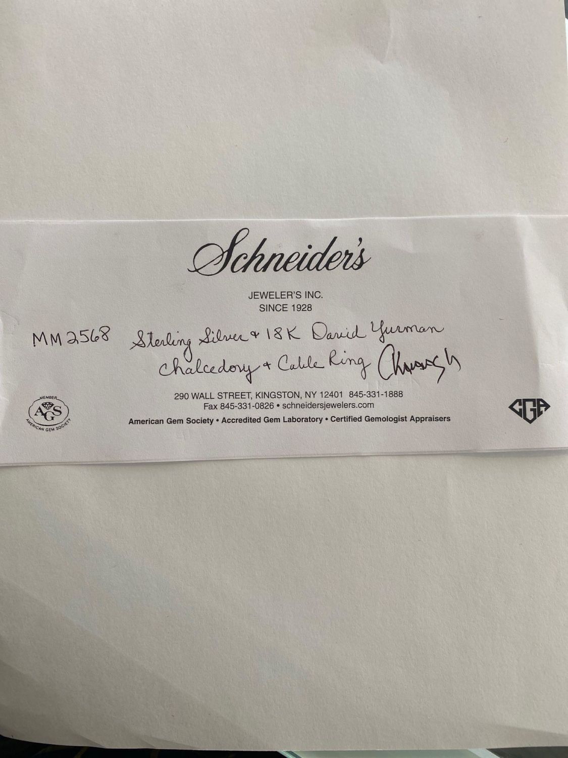 David Yurman 14K Gold, Silver Chalcedony Cable Ring