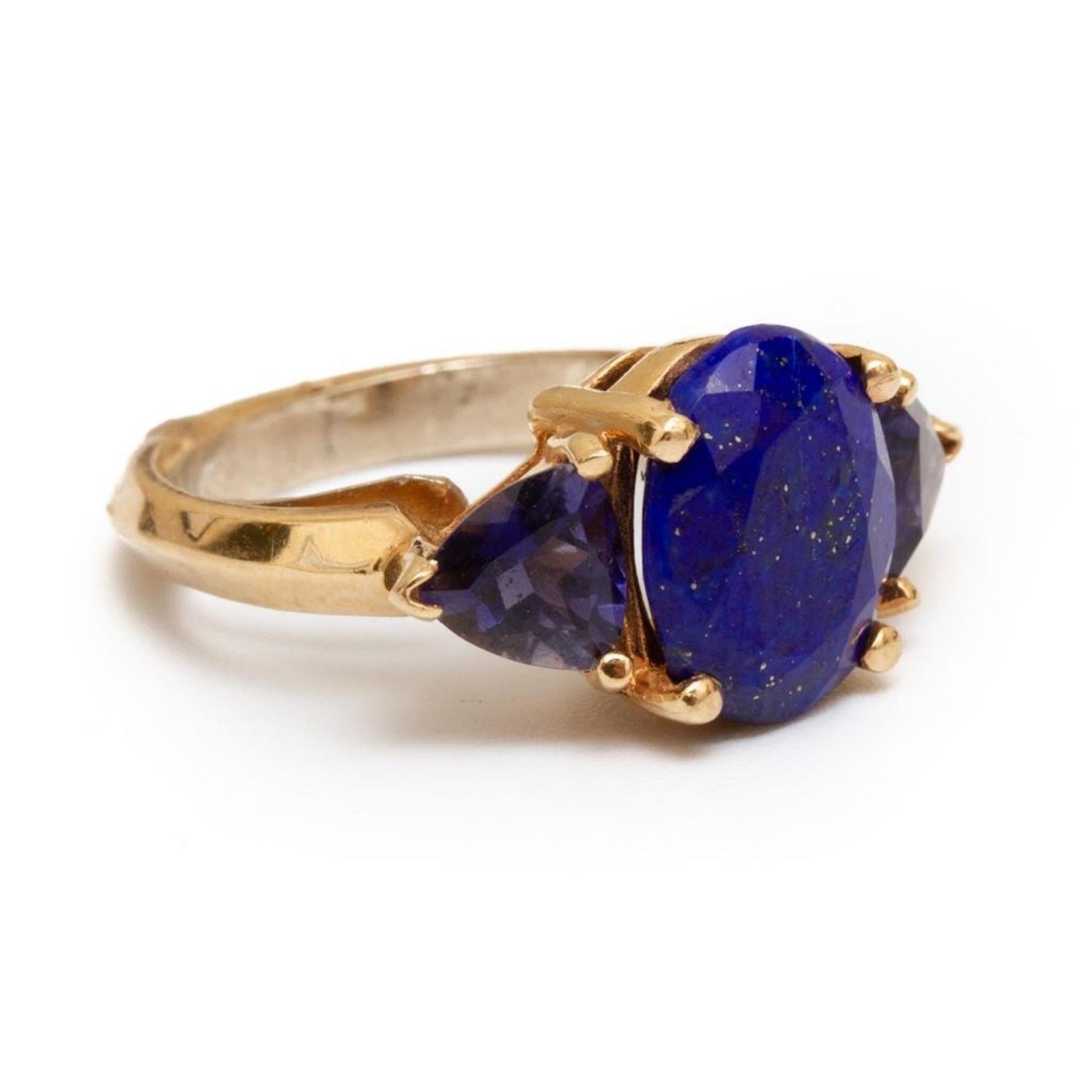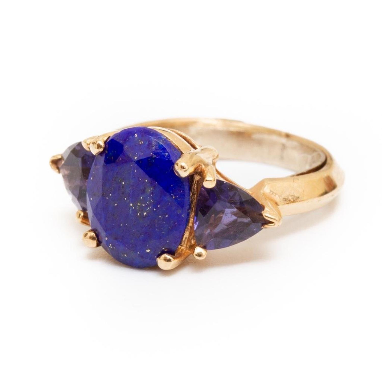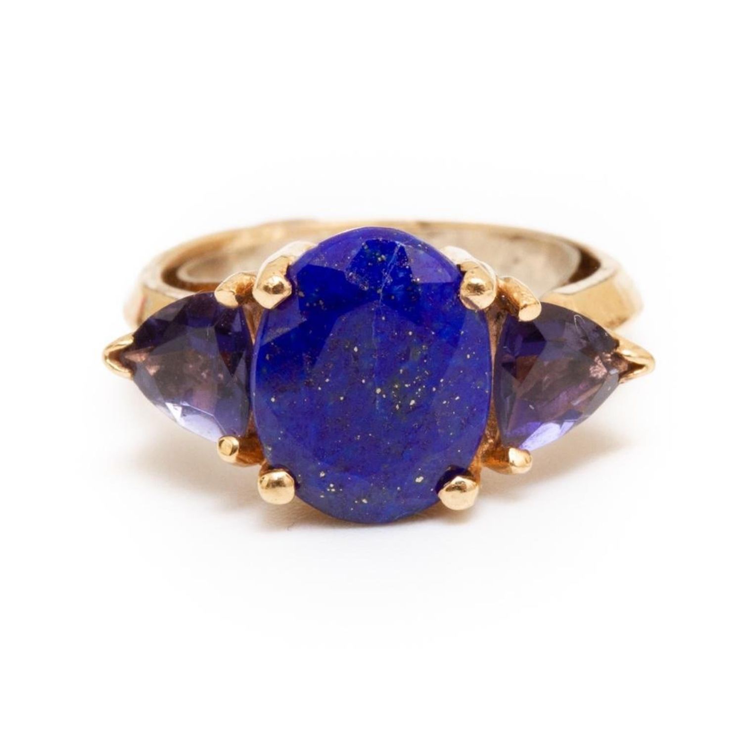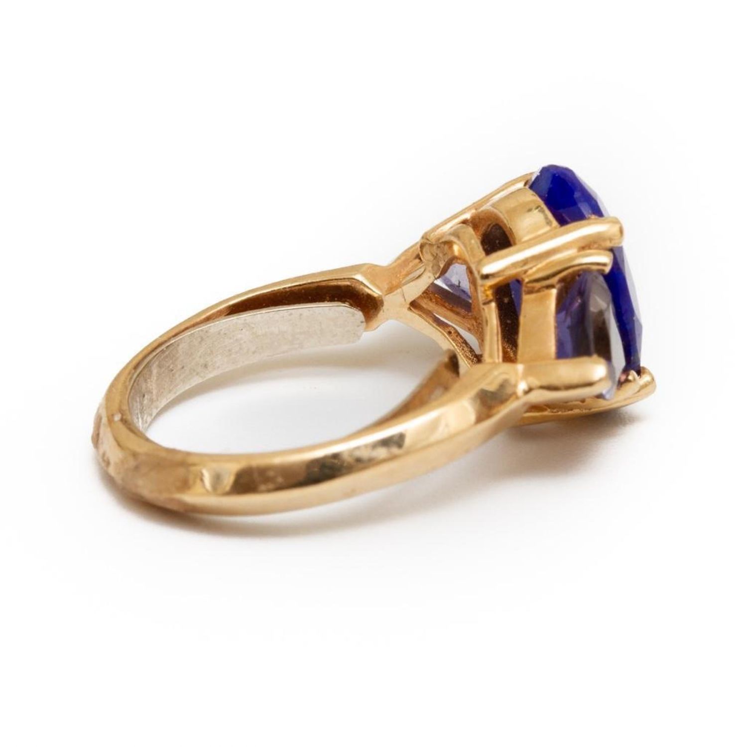 vintage 18k gold, lapis and tanzanite ring size 2.5. Has a retainer. 2.4dwt from an estate noted jewelry collection Park Avenue New York in good condition
