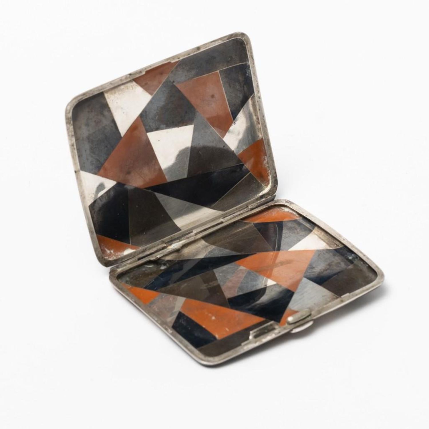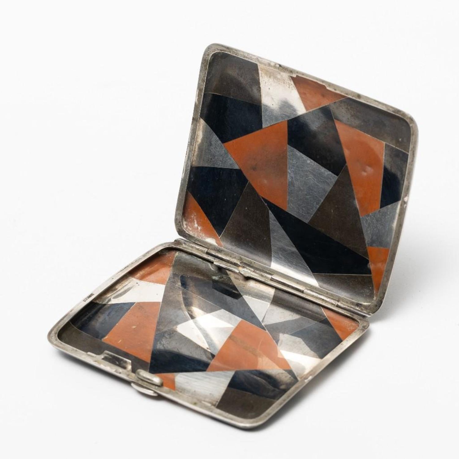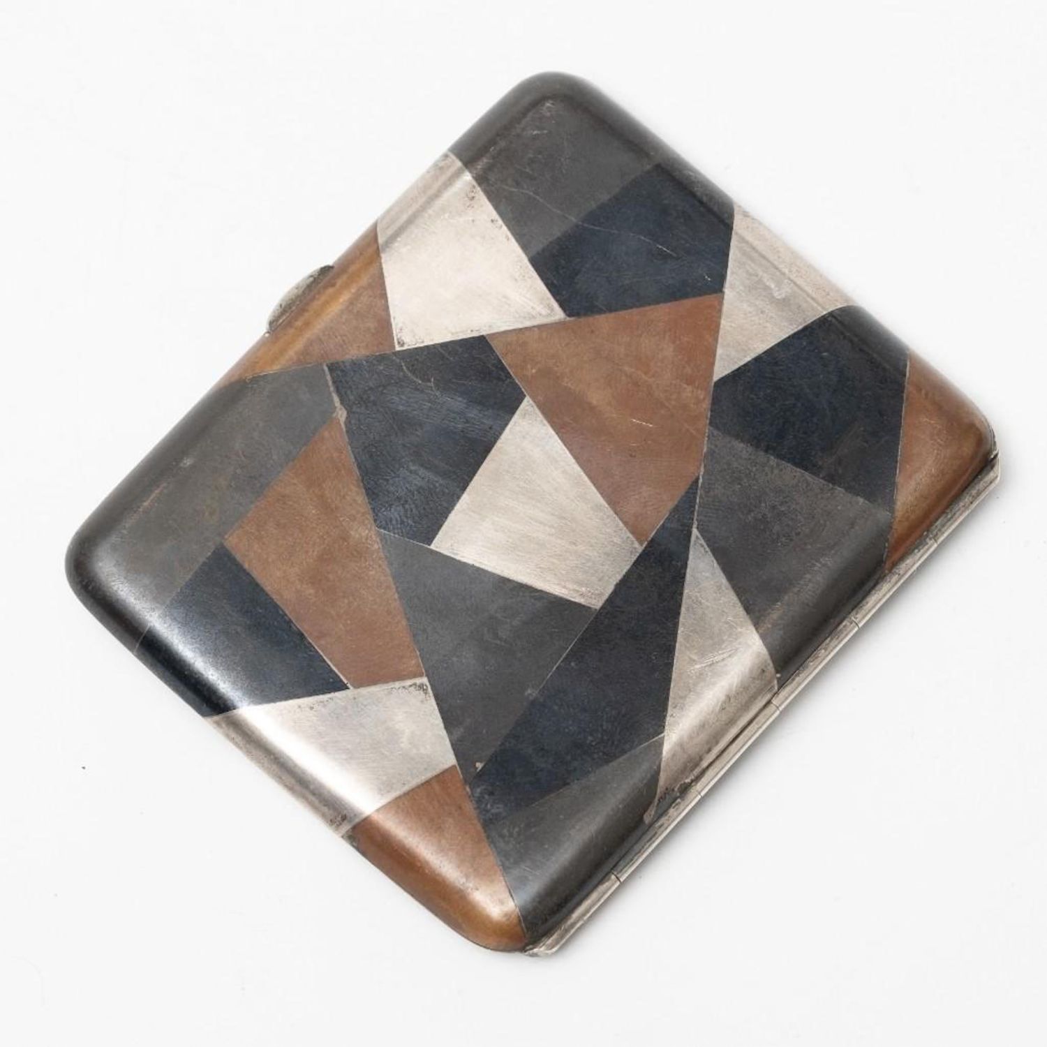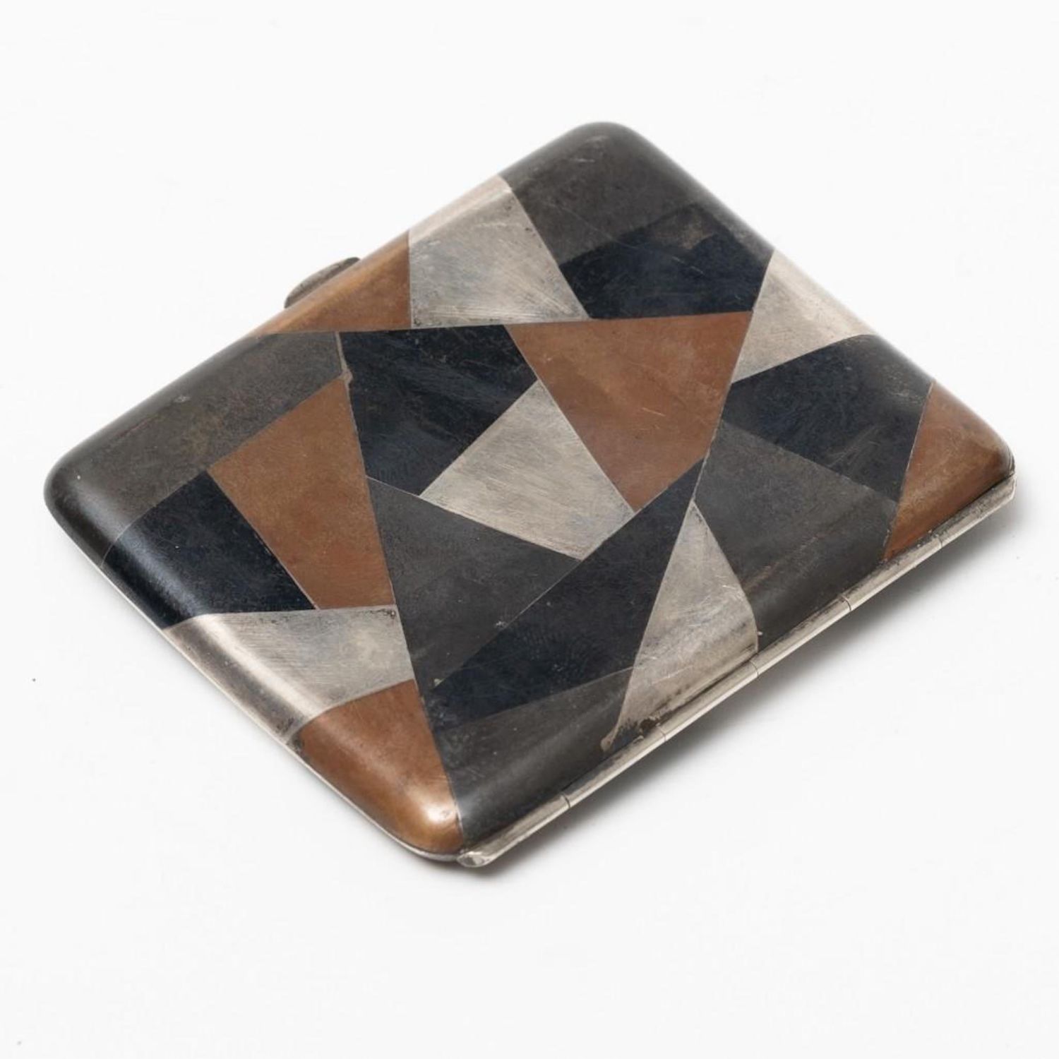 Sterling Silver multi metal Art Deco/Art Nouveau cigarette case with marks. Measures 3.25"L