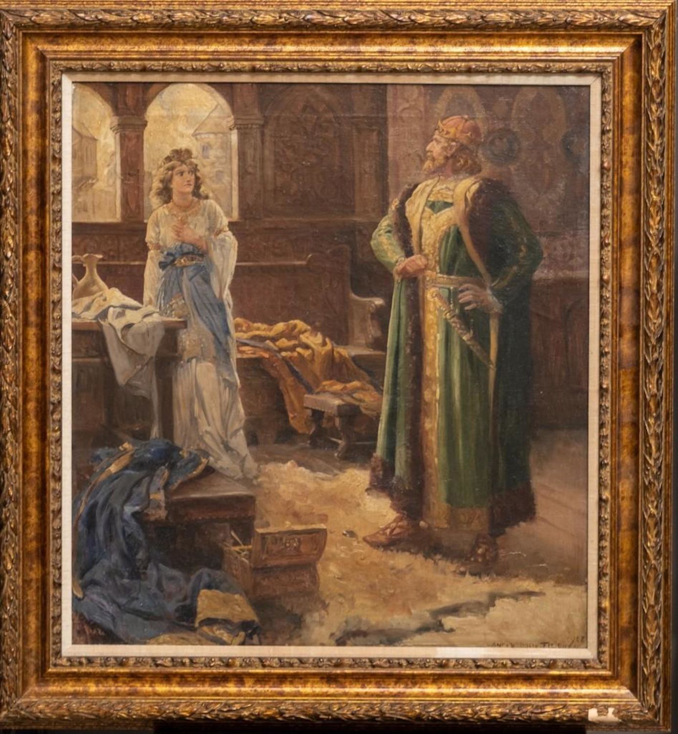 Anton Otto Fisher Signed and Dated LR oil on canvas. Dated 1928. Measures 30.25"W x 28.25"H. Good condition. Can use some cleaning