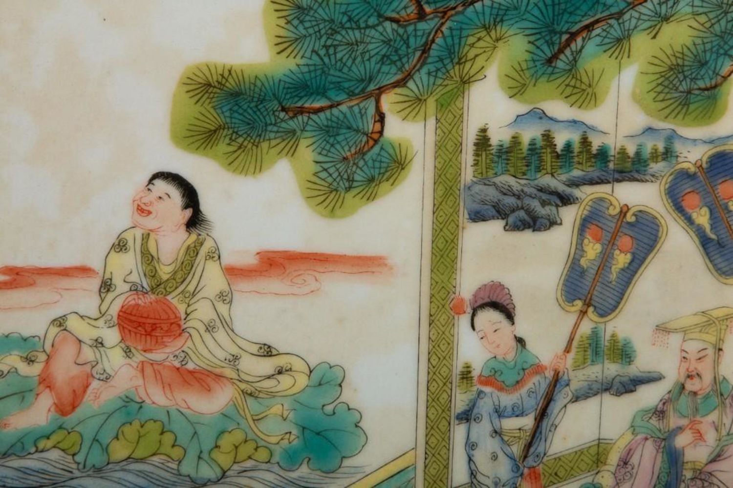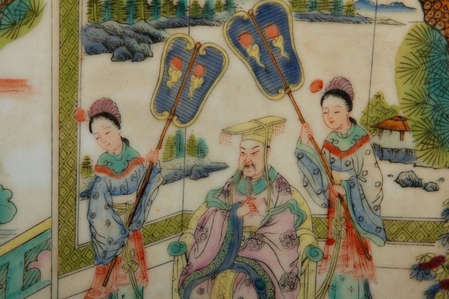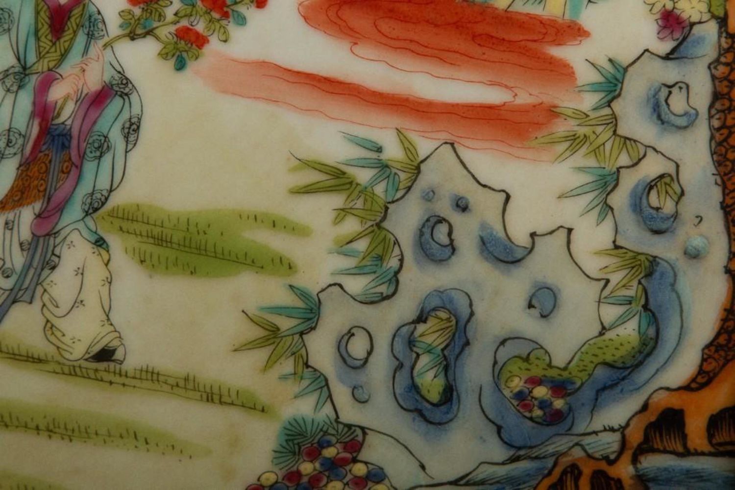 Antique Chinese Painting on Porcelain. Measures 9"W x 13"H visible approx. 14" x 21" Framed Approx in good condition overall