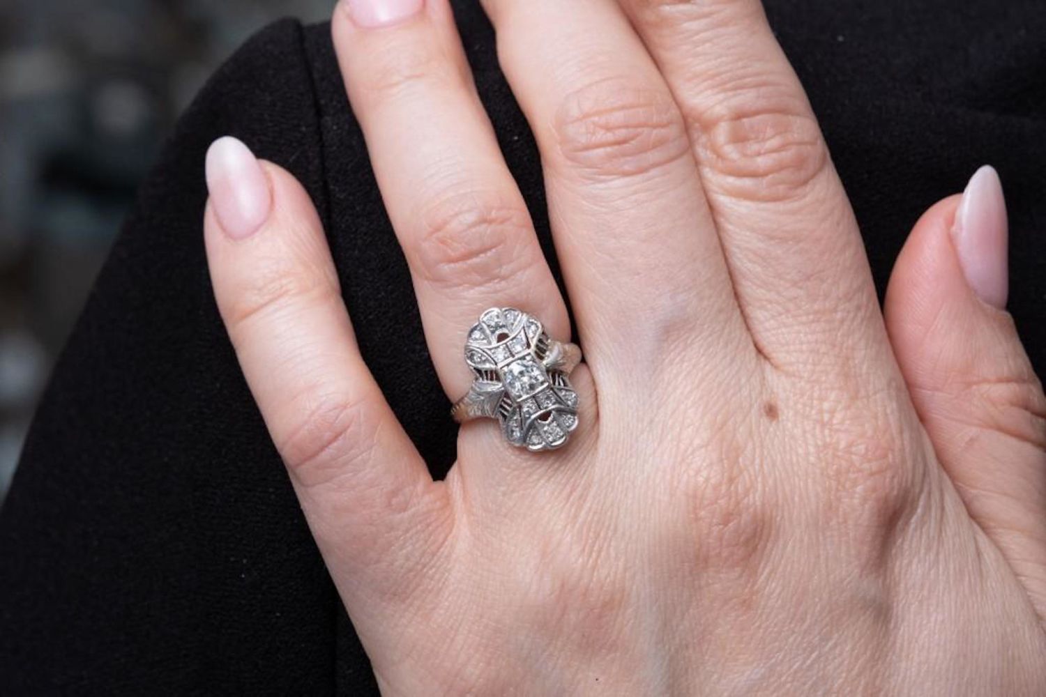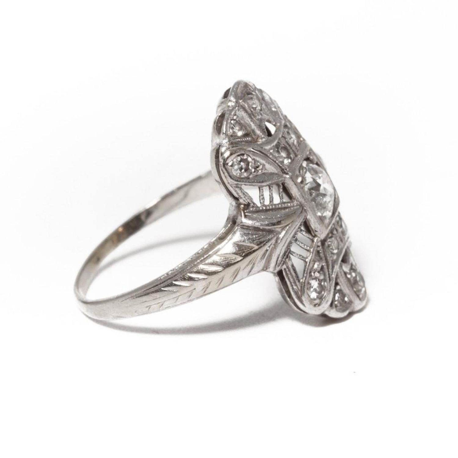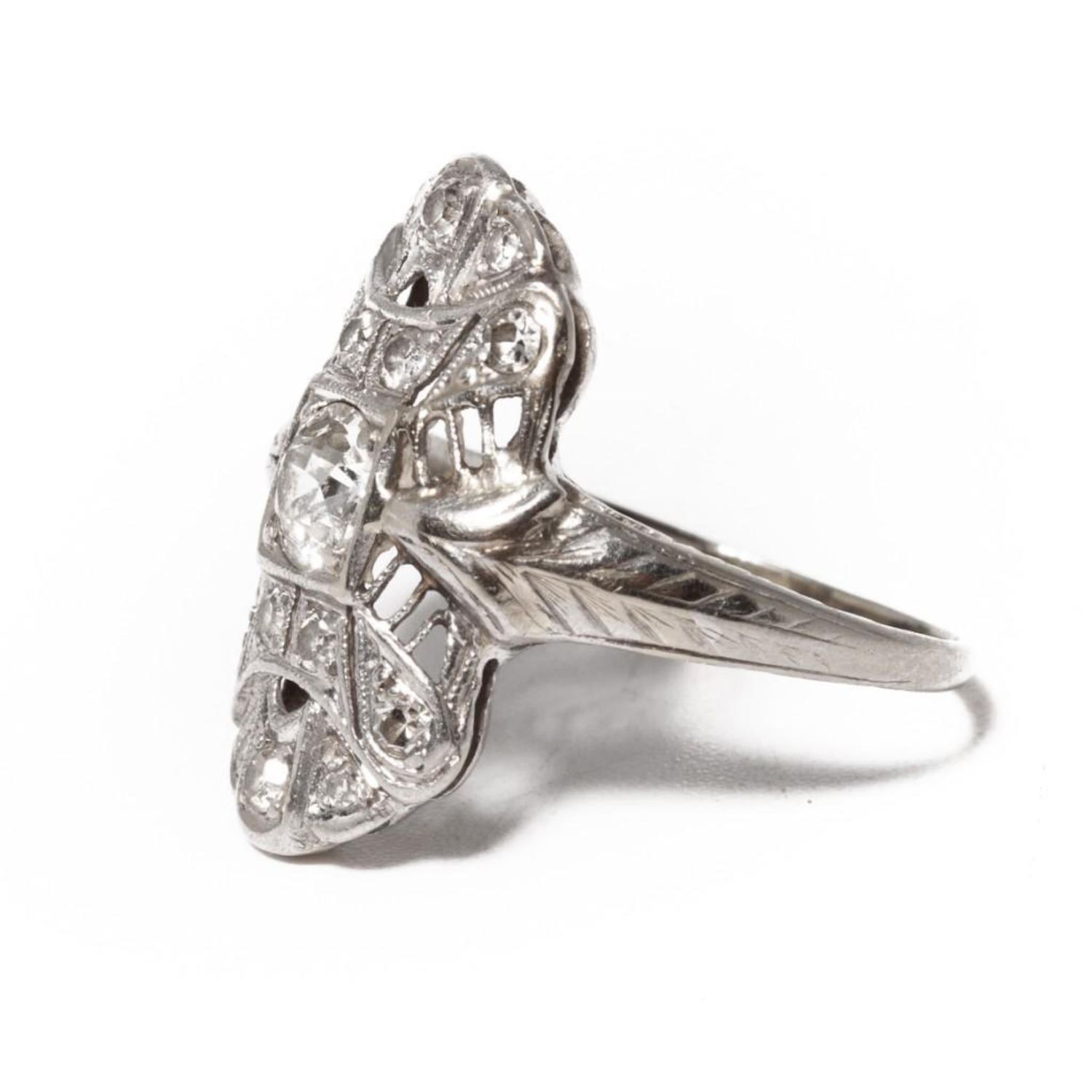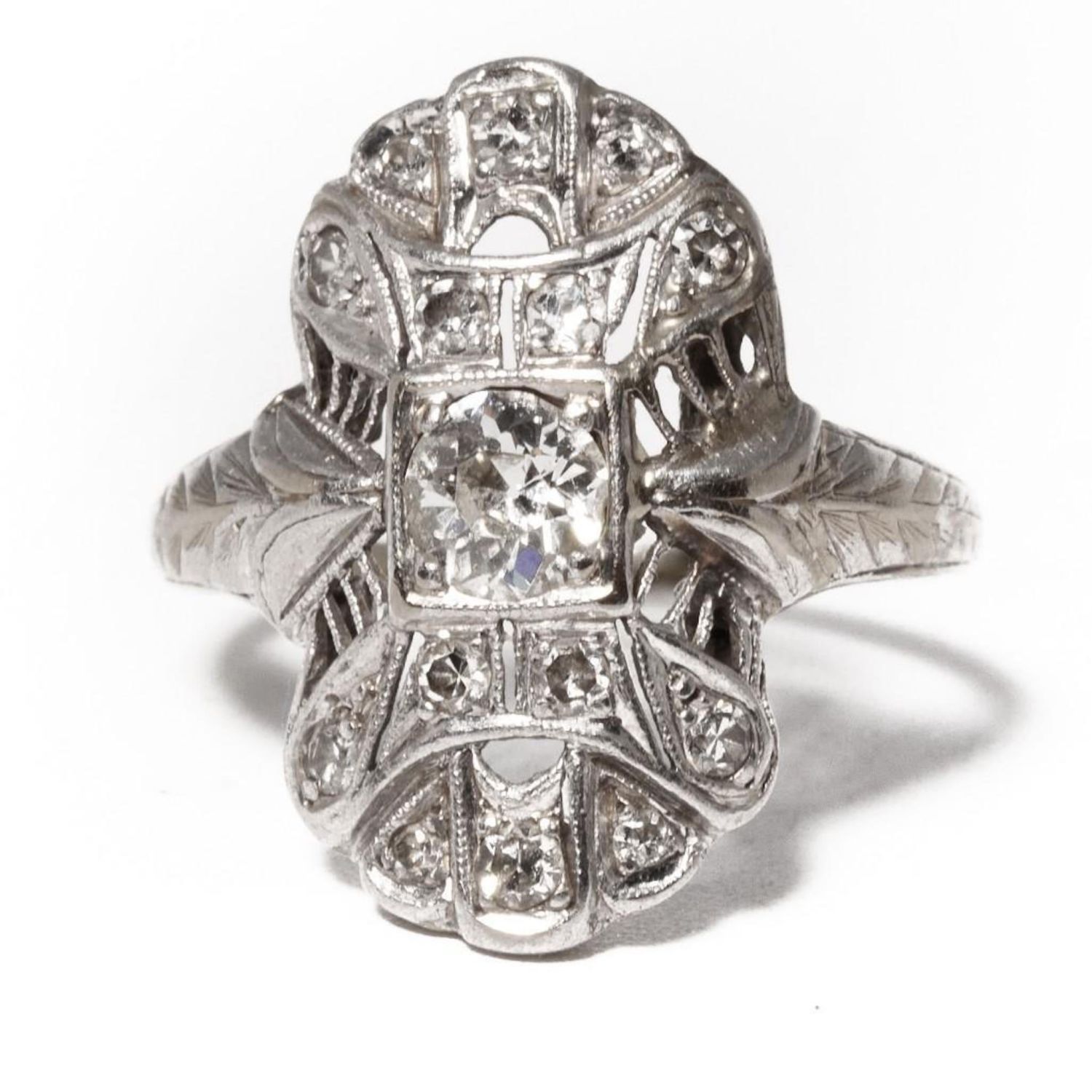 18k white gold Diamond Ring 2dwt size 5. Circa 1930 art deco design.