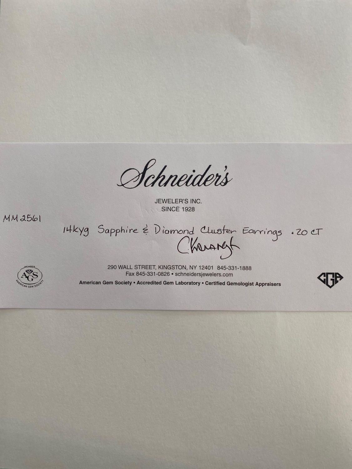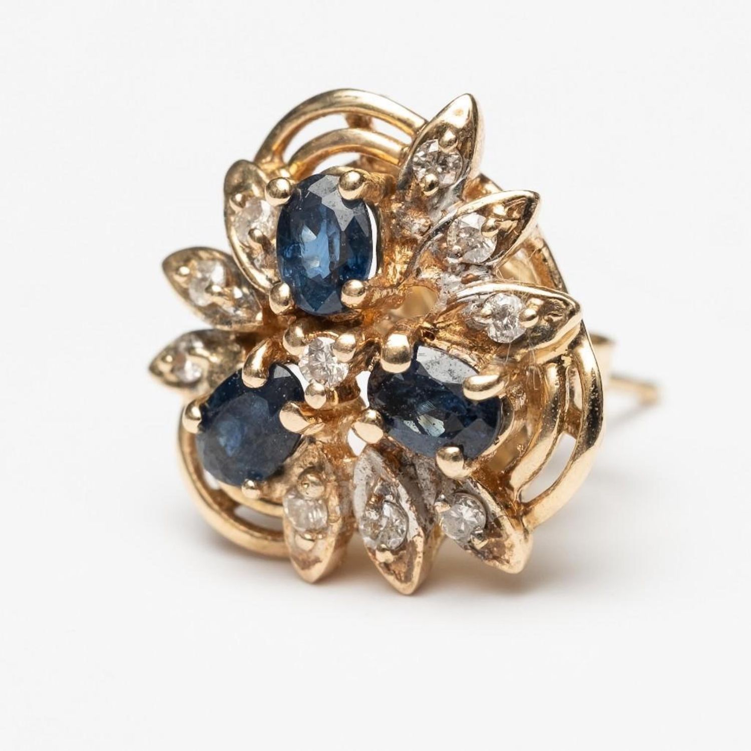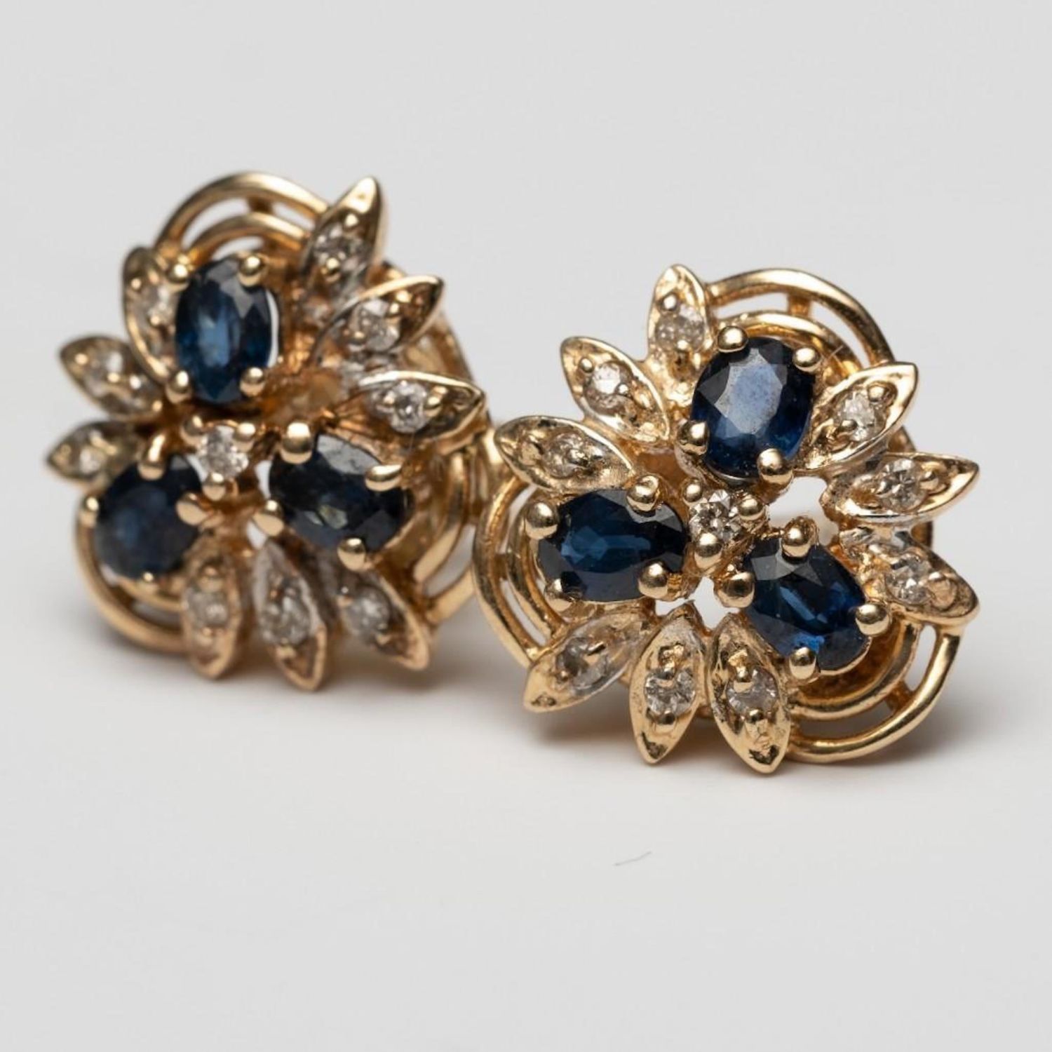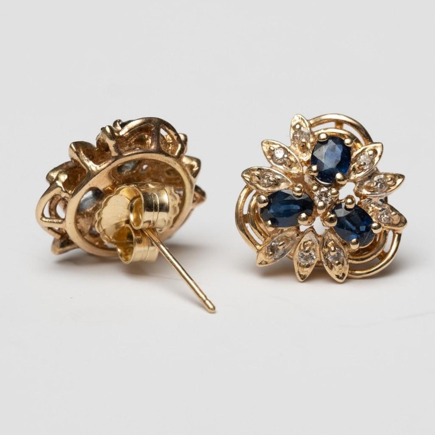 14K Sapphire and diamond cluster stud earrings. Measures 15mm x 15mm approx in good condition overall