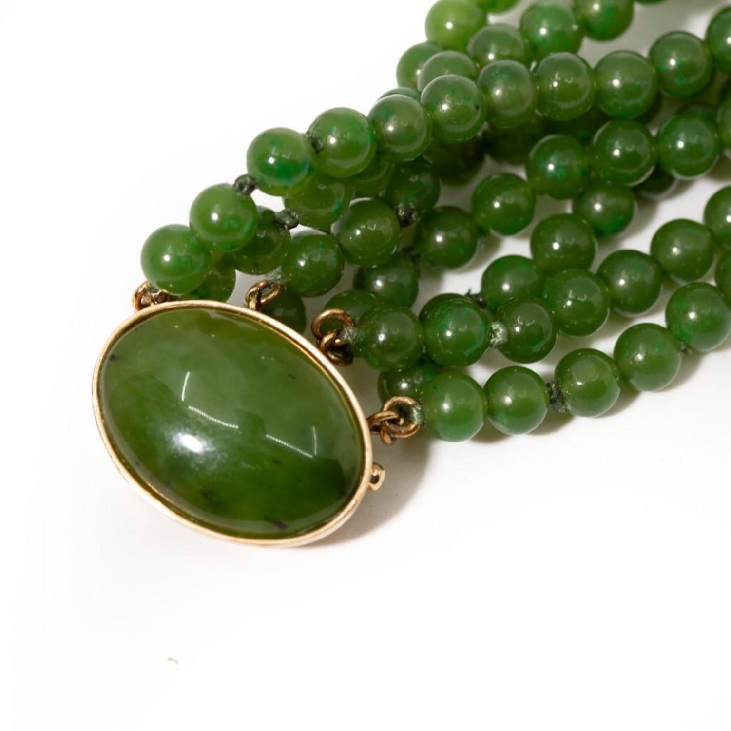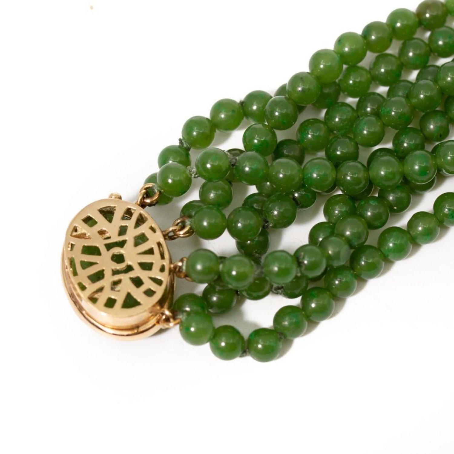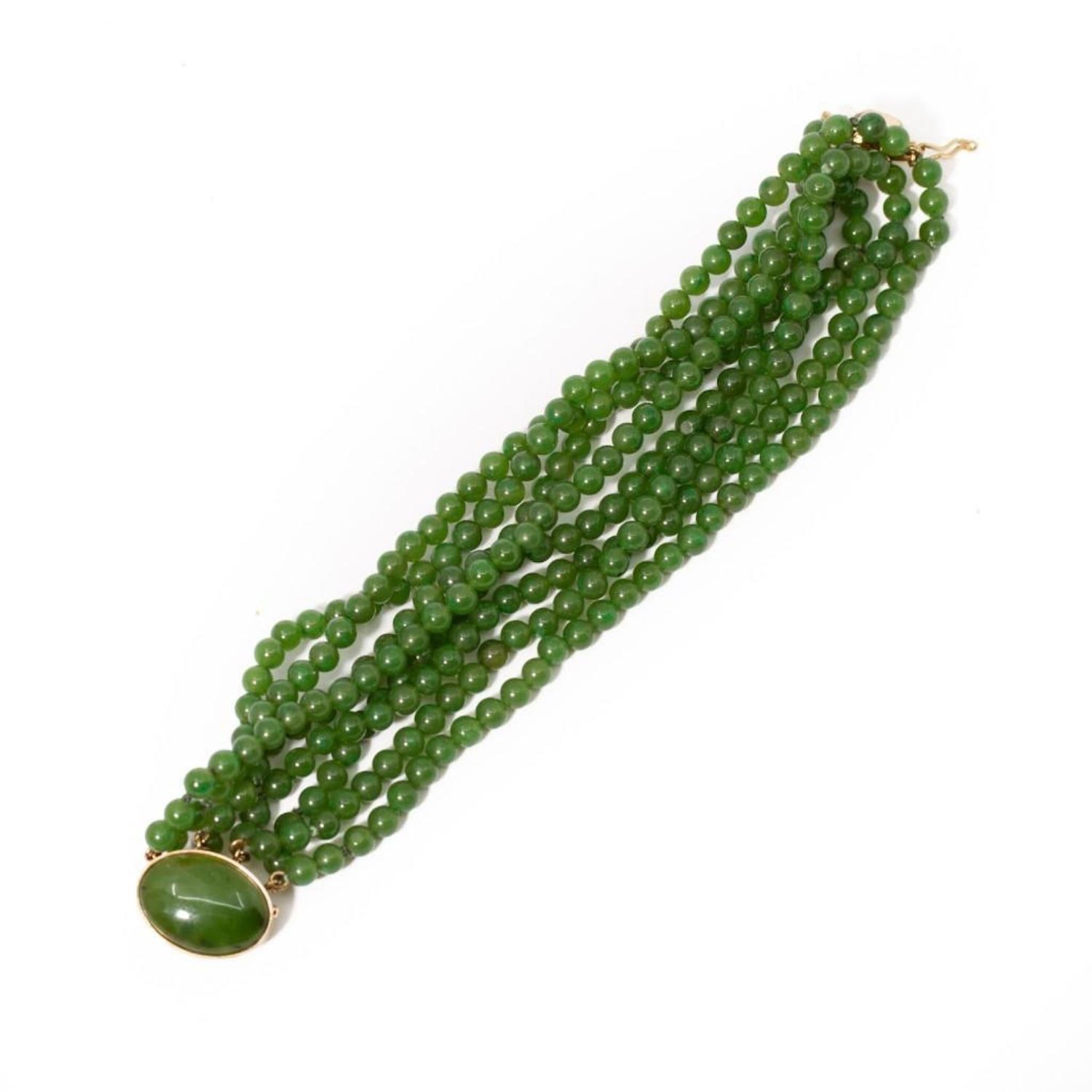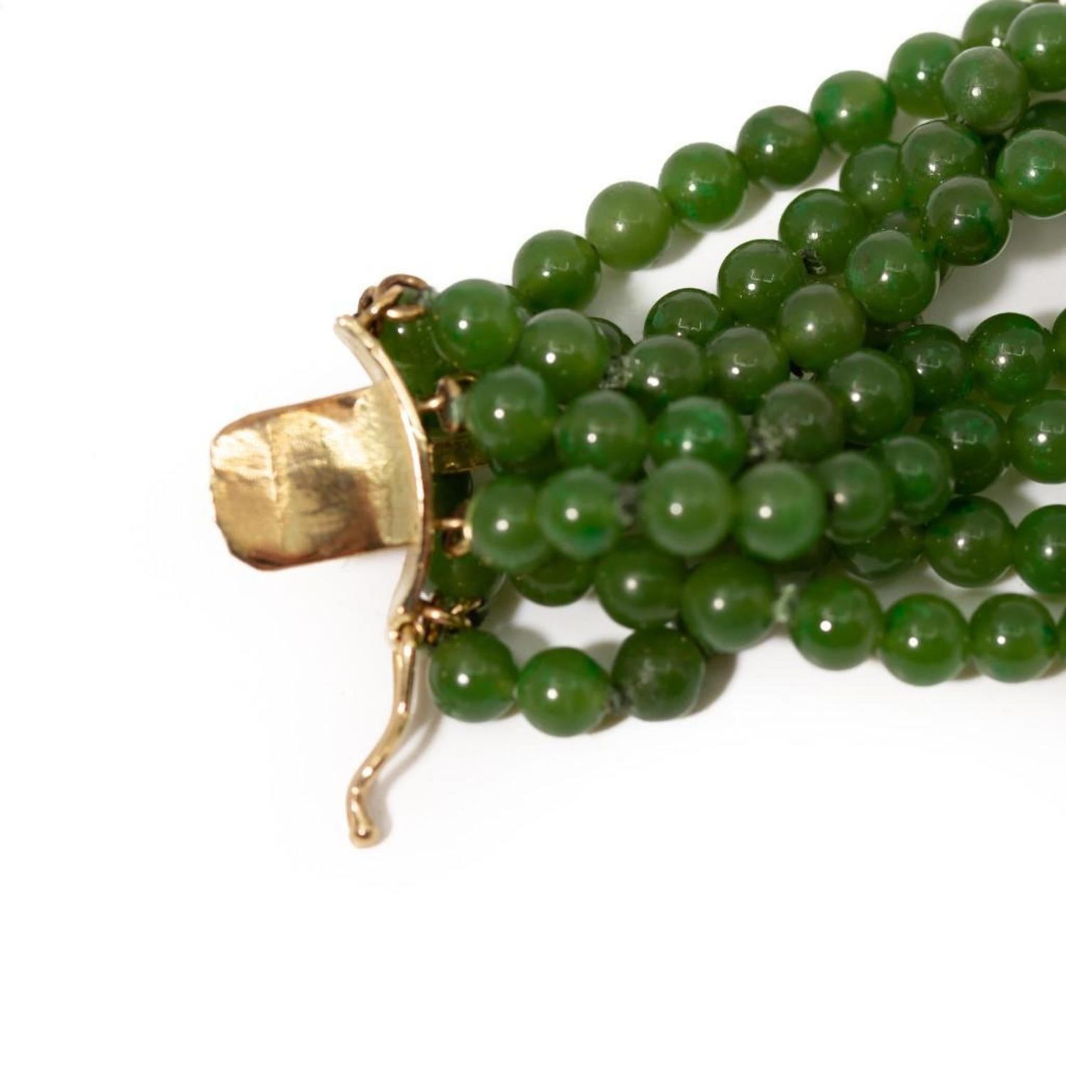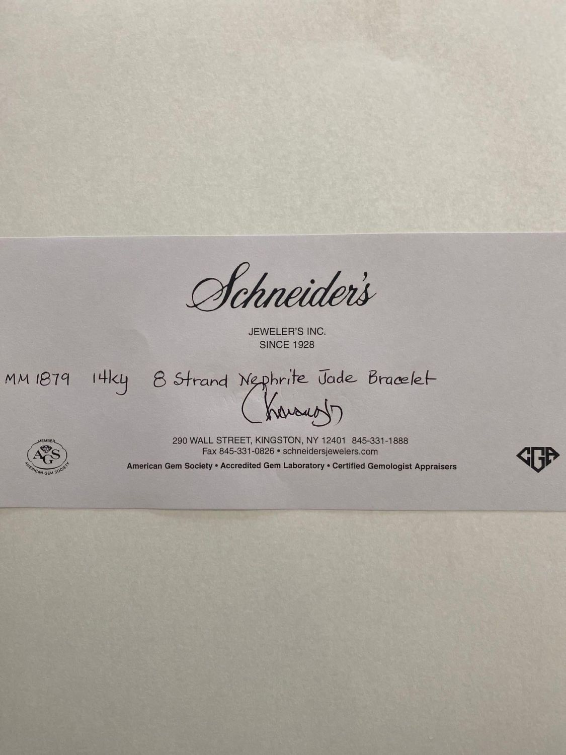 14k gold and jade eight strand torsade 6.5” bracelet beads approx. 4mm in diameter, weighs 26.1dwt approx