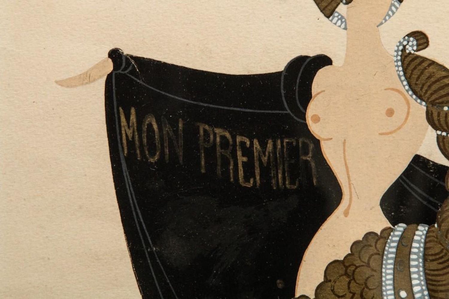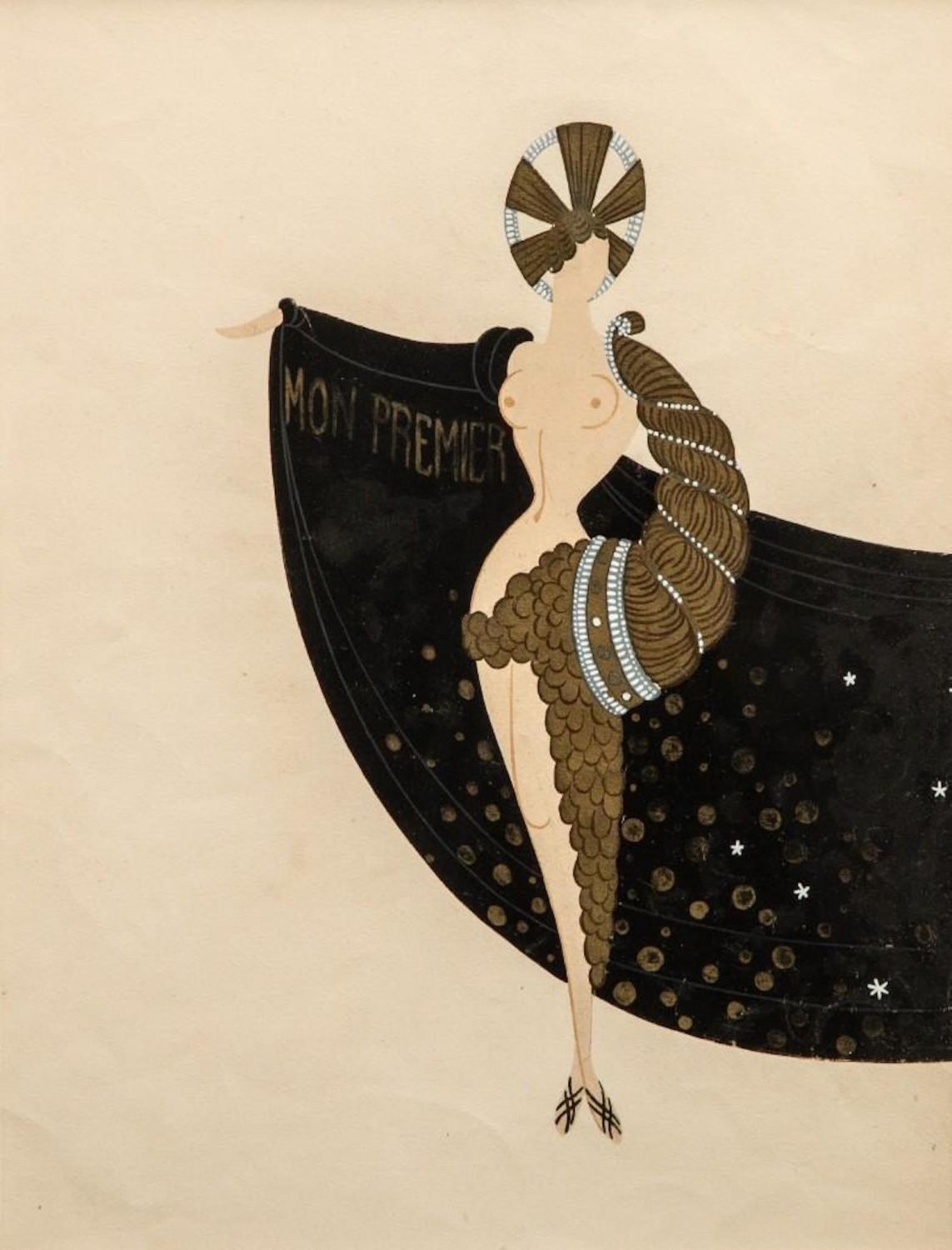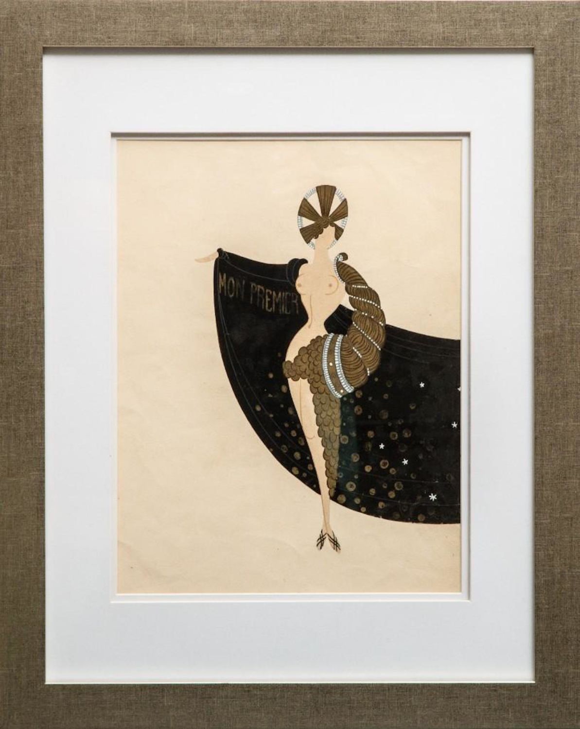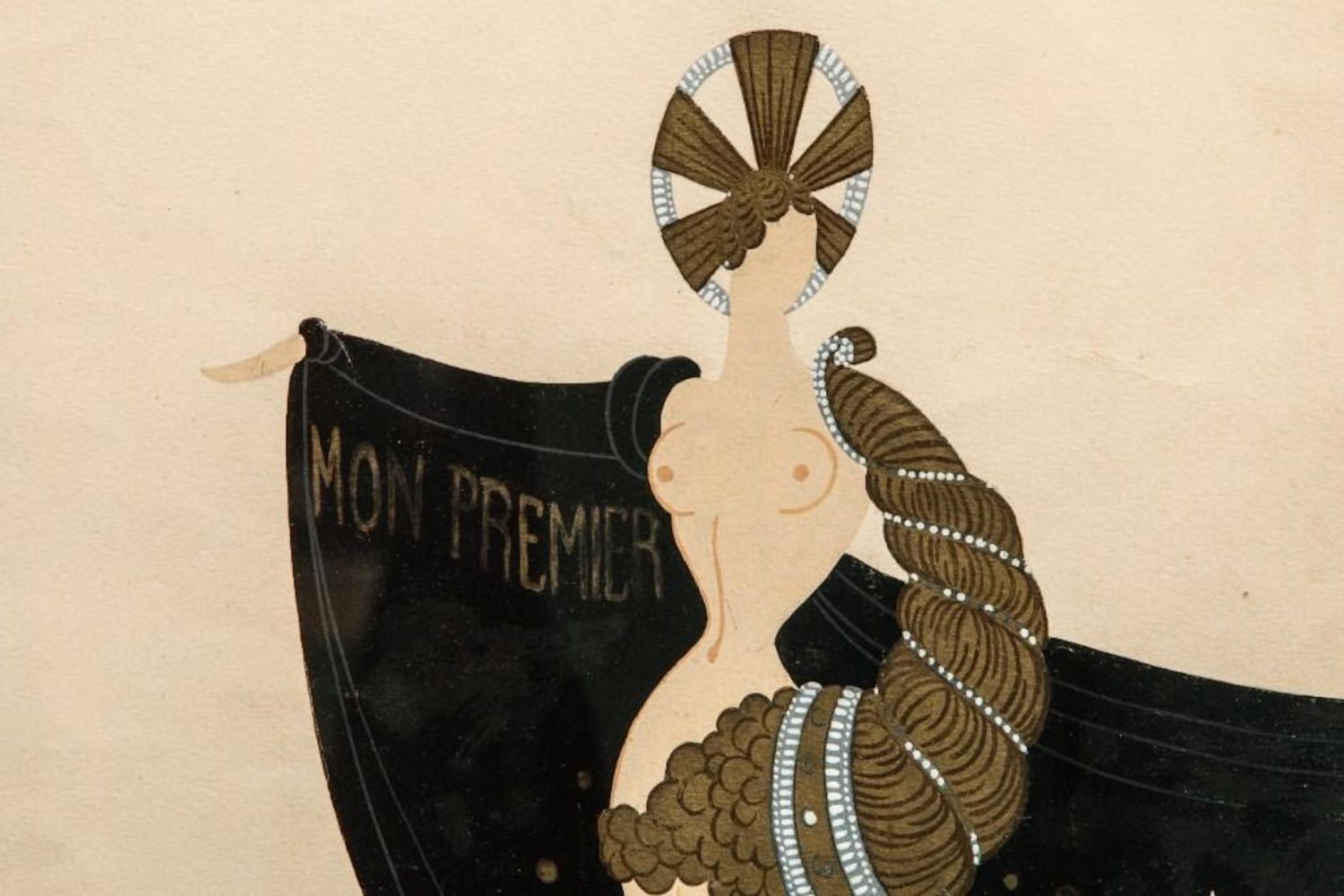 Erte Original hand painted Gouache/painting on Paper titled "La Charade", "Mon Remier" and "Mon Second". 14-3/4"h x 10-1/2"w in good condition overall