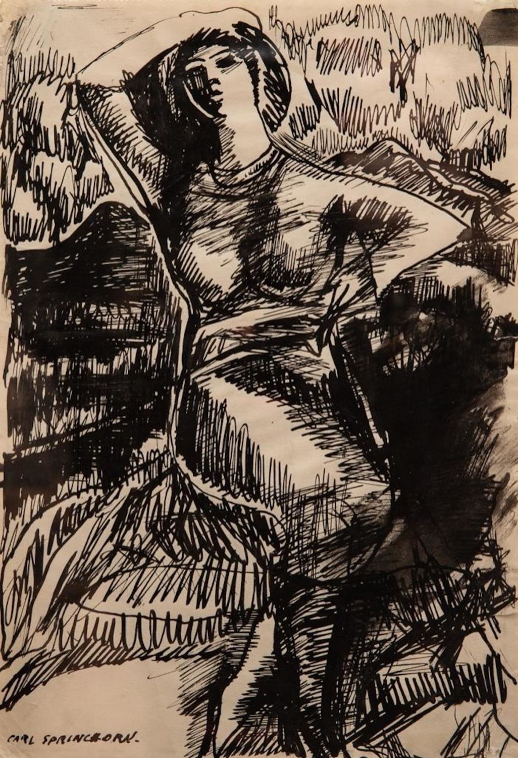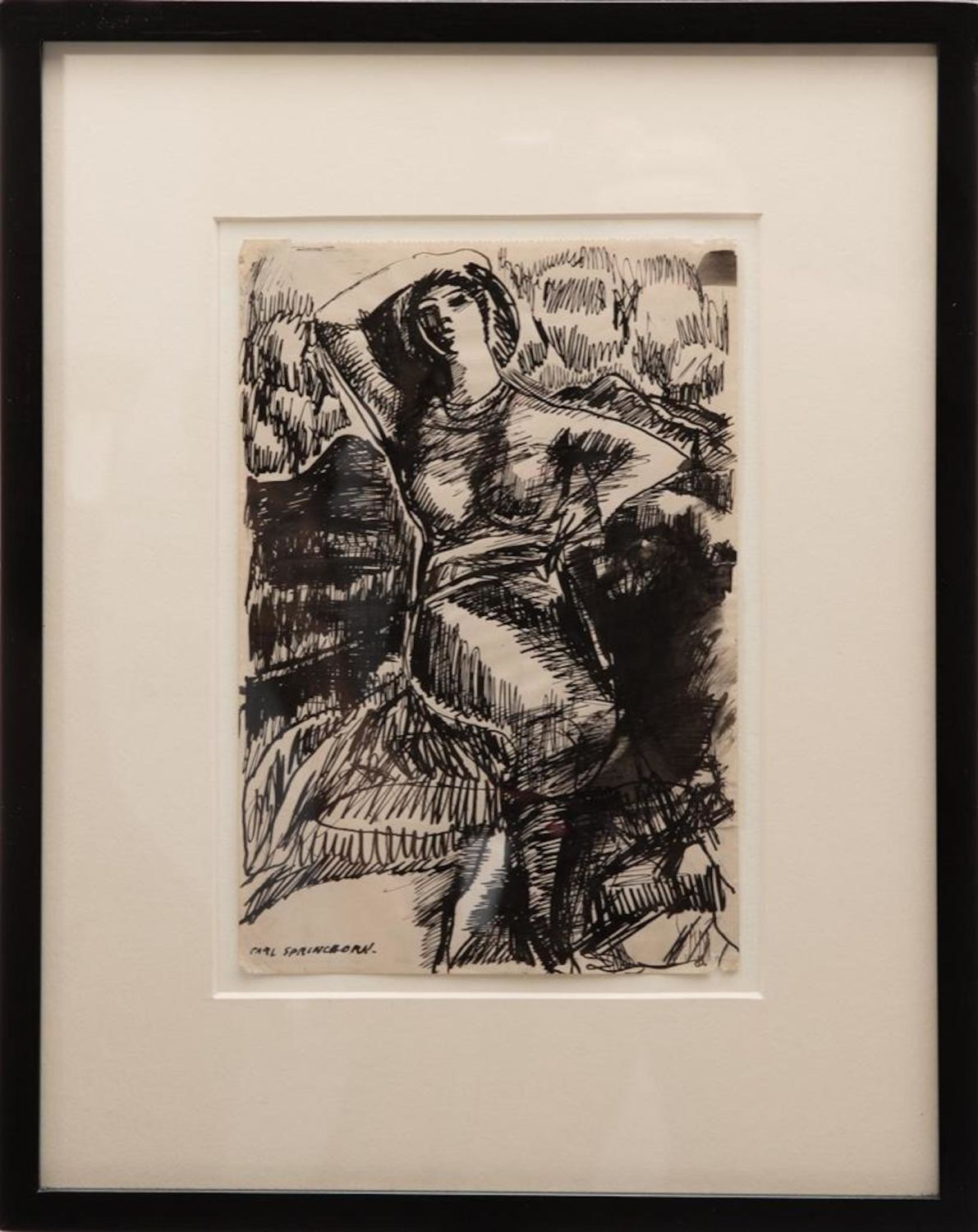 Carl Sprinchorn Dancer Signed, Pen and Ink Wash on Paper Circa 1916. Measures 8 1/2" x 5 3/4" actual, 14 1/4" x 11 3/8" framed Provenance: New Jersey Estate Collection in good condition overall