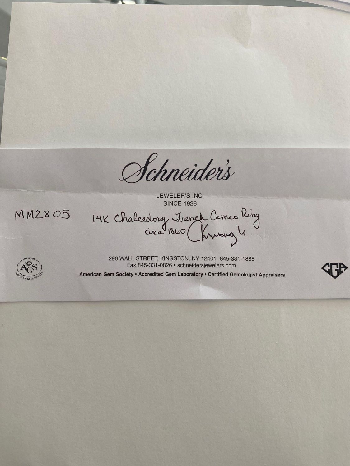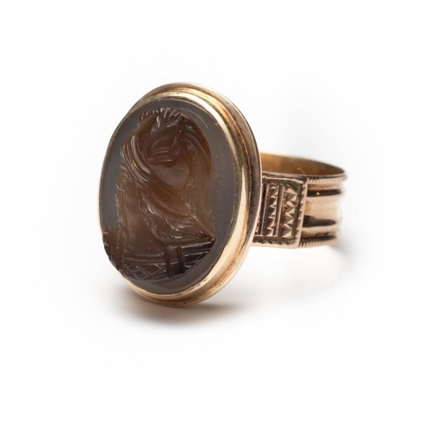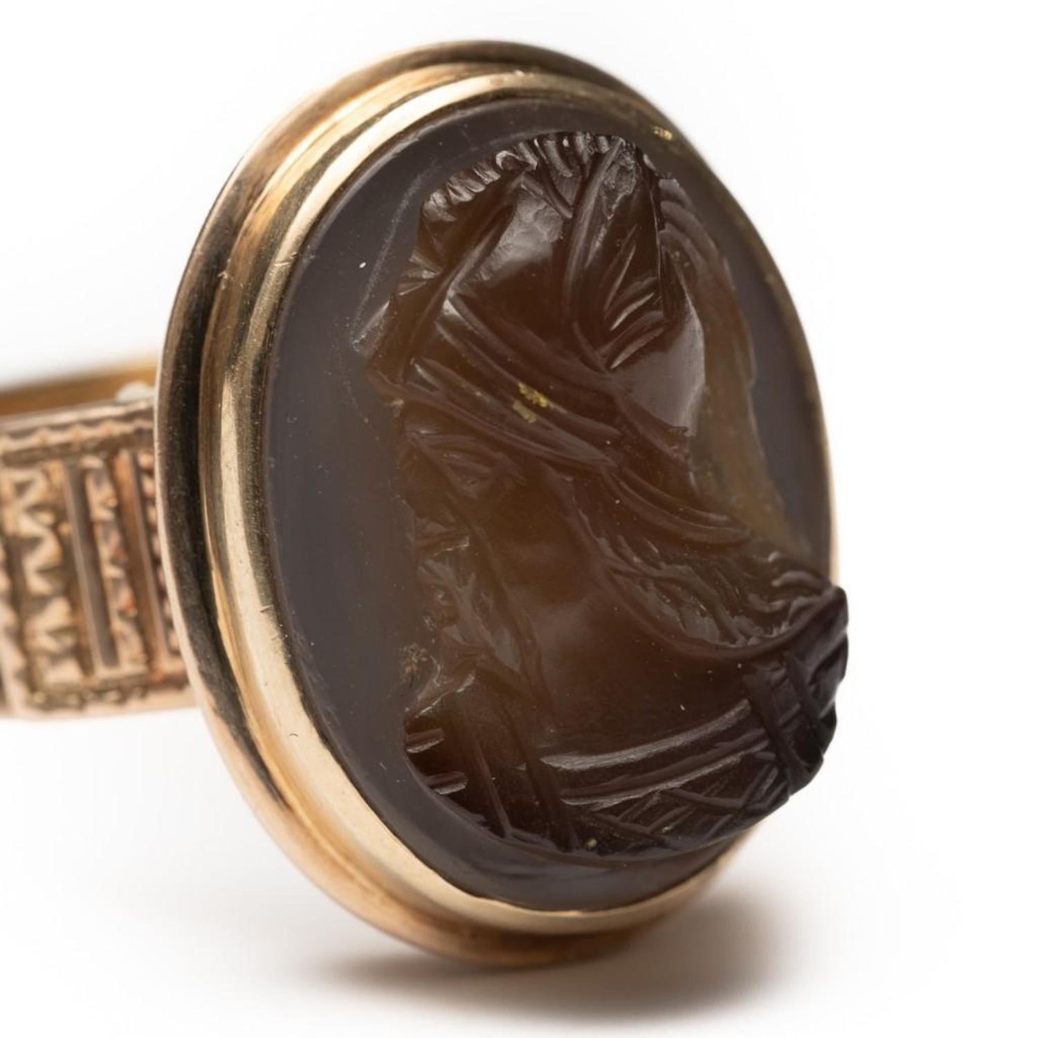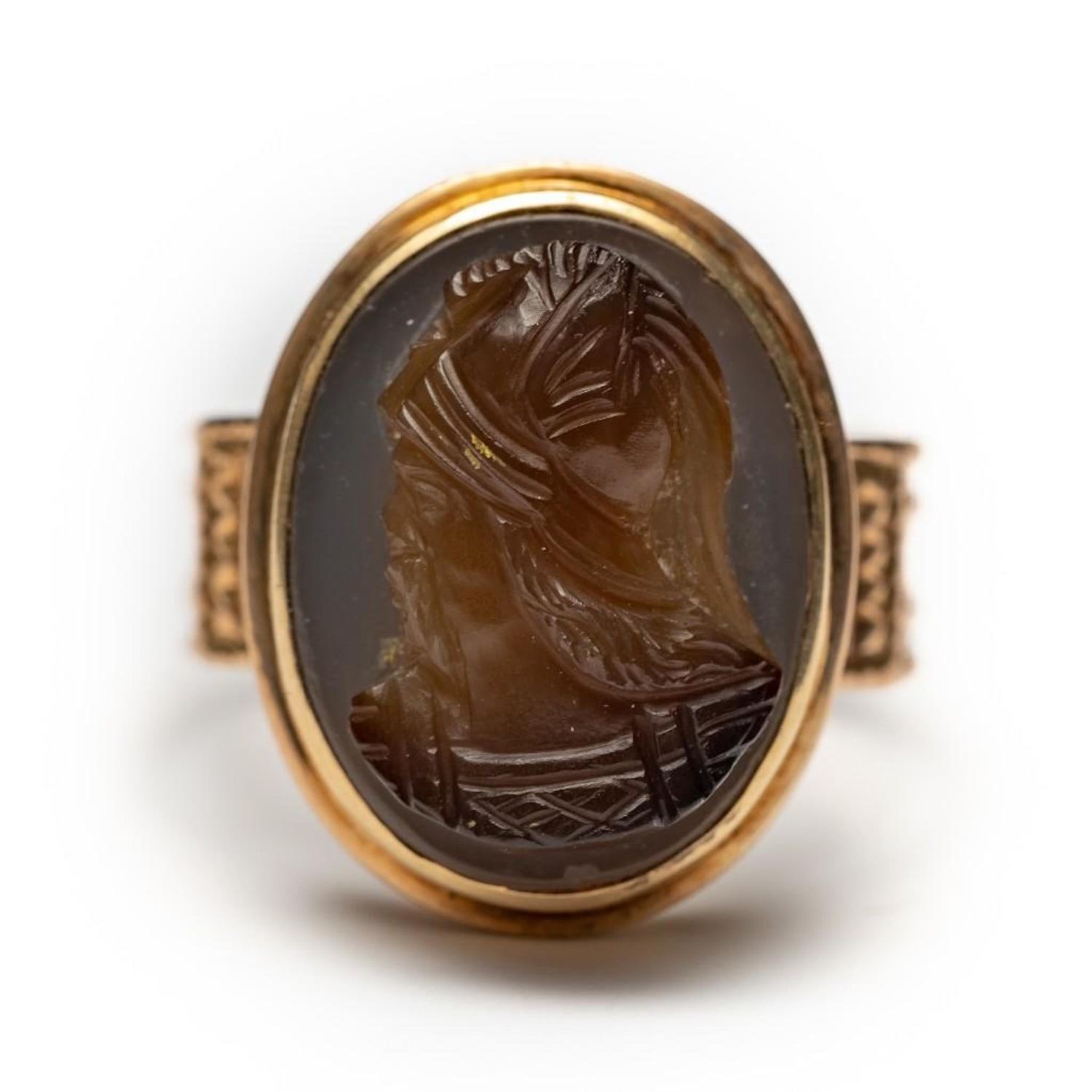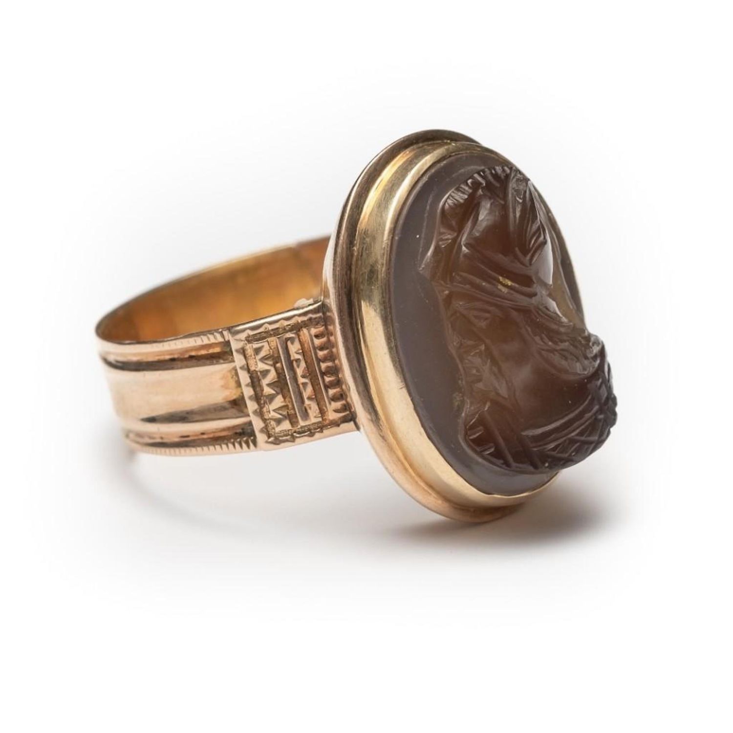 14k Chalcedony French cameo Frankish Warrior Ring,c1860
