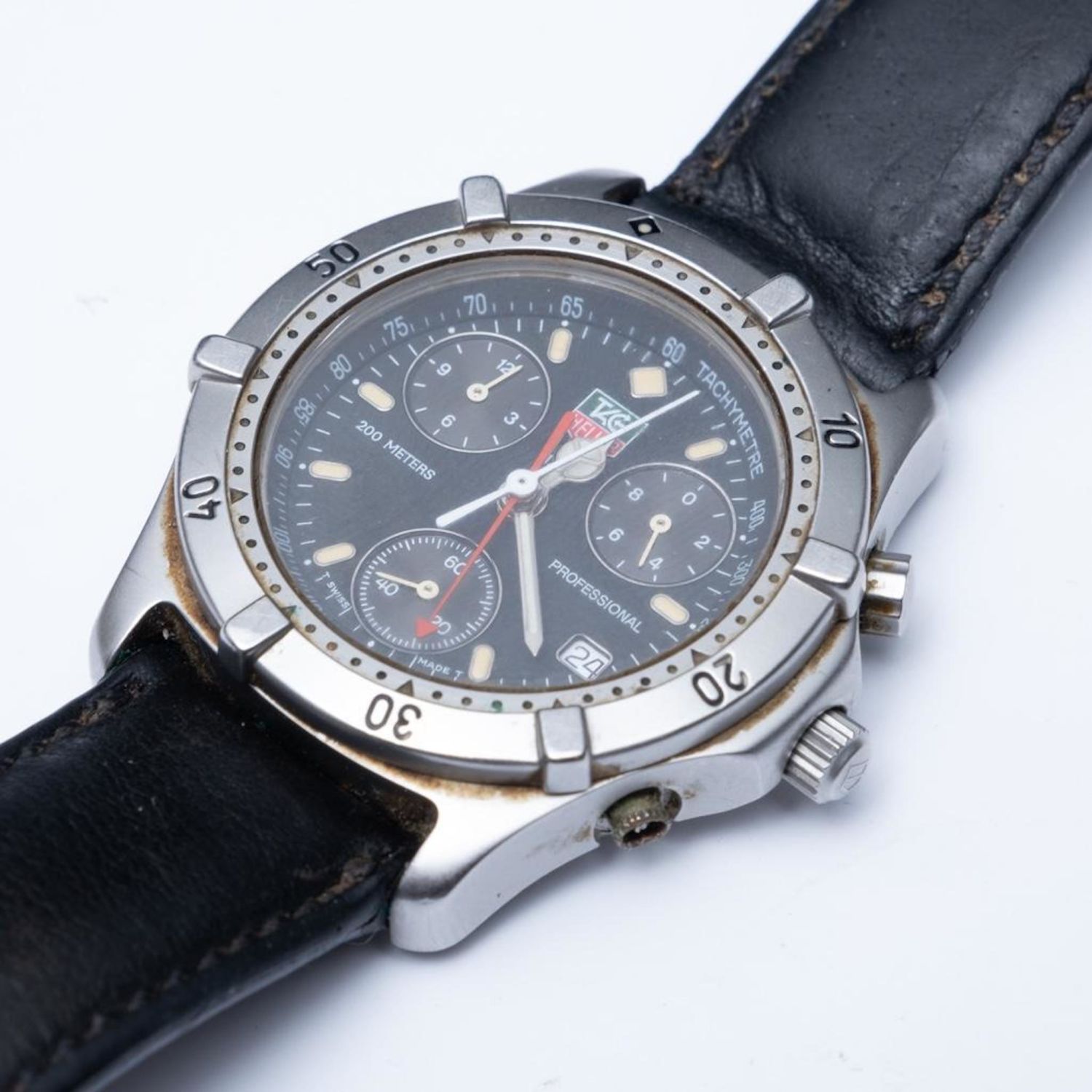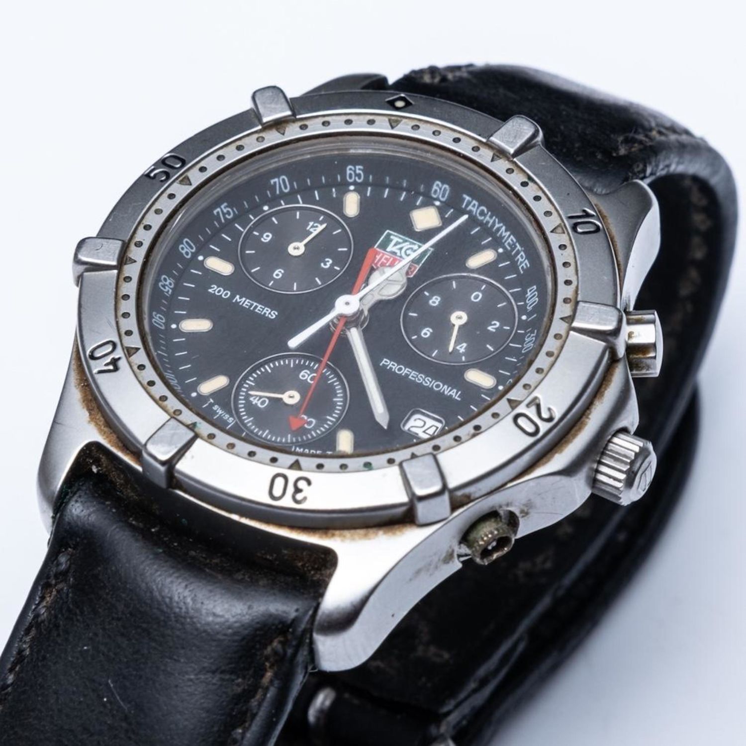 Vintage TAG Heuer 2000. Bottom crown missing. Face to crown measures 1.75". We do not guarantee that the watch is in working order.