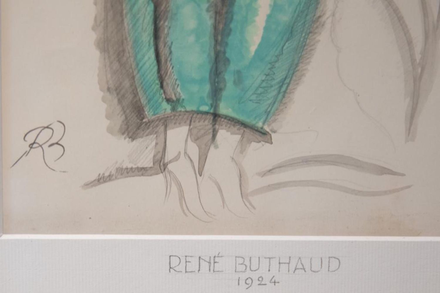 Rene Buthaud art deco woman in green dress, signed and dated 1924 mixed media gouache painting on paper Provenance: The artist, collection Michel Fortin, Paris: Collection of Stephen Engel, Florida: Literature: Cruège, René Buthaud see page 80. Rene Buthaud mid century nude study, signed gouache on paper Provenance: The artist, collection Michel Fortin, Paris: Collection of Stephen Engel, Florida: Literature: Cruège, René Buthaud. René Buthaud was seen as one of the most accomplished and important French artists of the Art Deco movement, an opinion held to this day. . Work by Buthaud can be found in the collections of the Musée des Arts Décoratifs in Paris, the Metropolitan Museum of Art, among many others. H 19.5 in. x W 14.75 in. x D .5 in. Framed in good condition overall