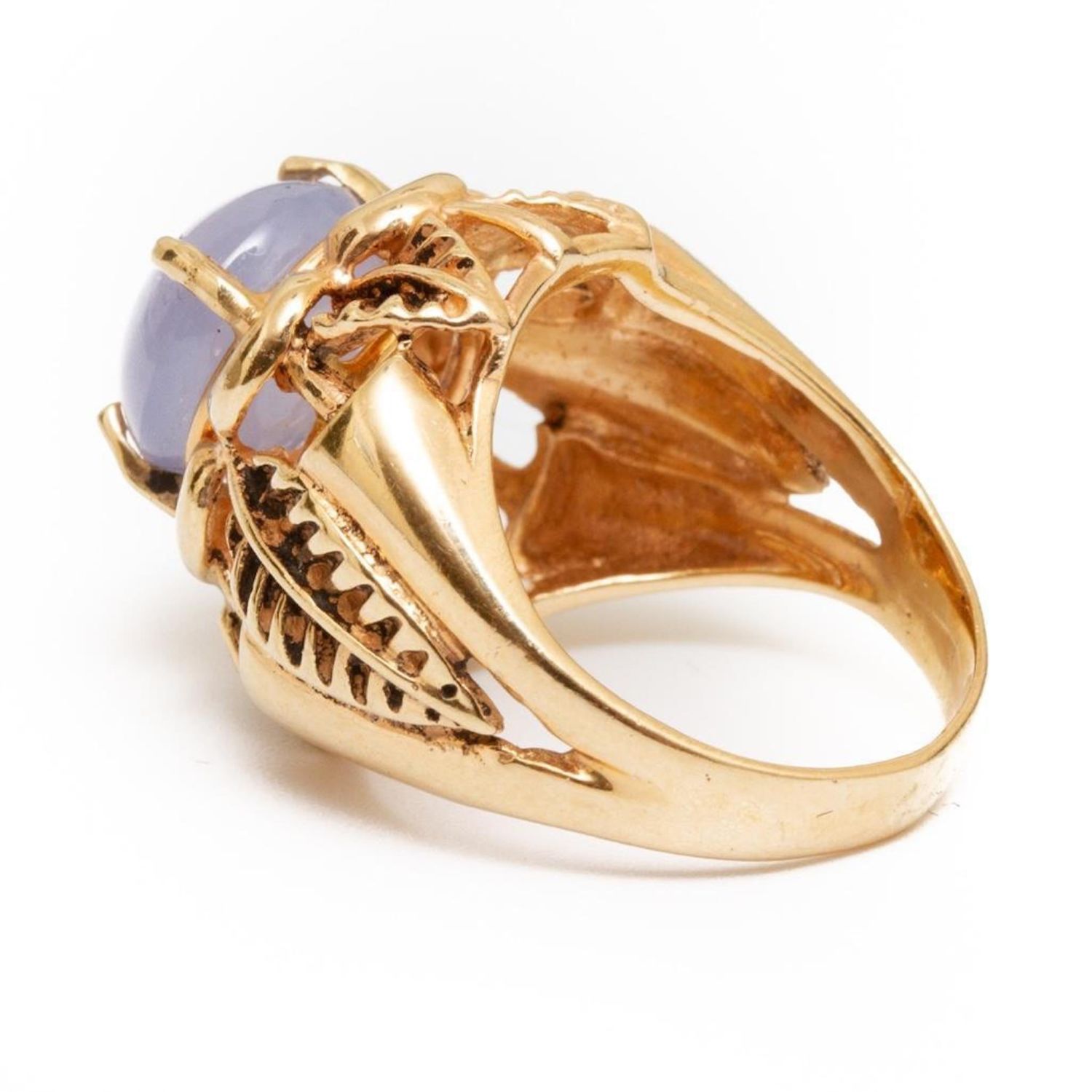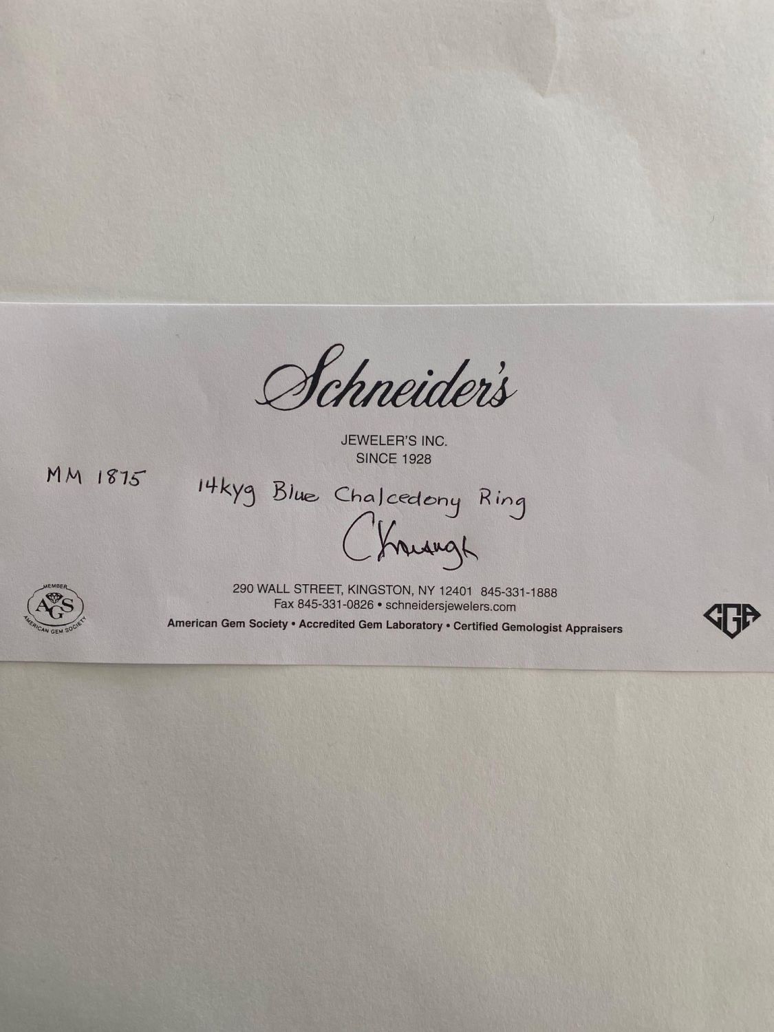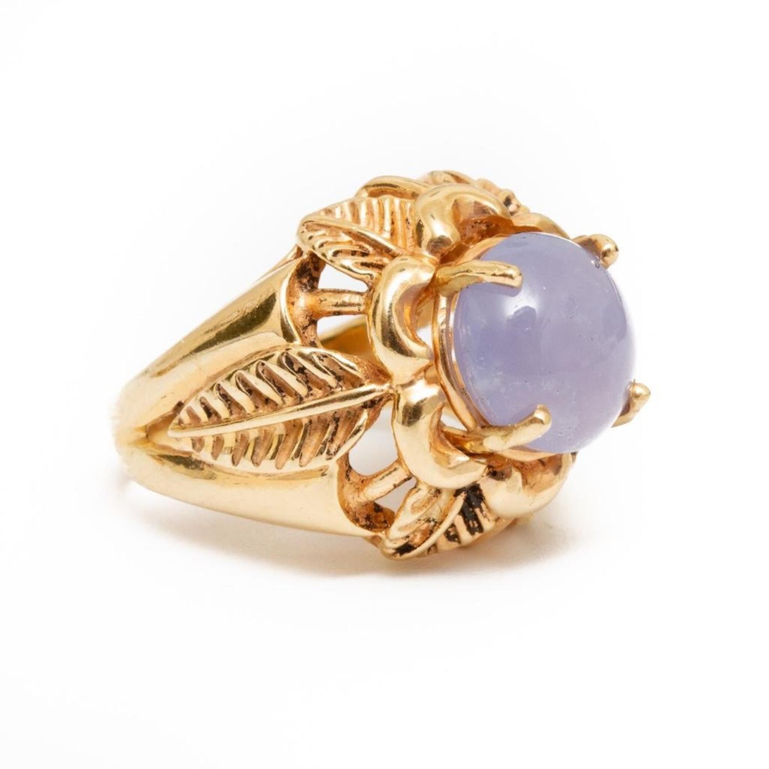 vintage 14k gold blue round chalcedony ring approx. 9.5 mm. weight approx. 4.6 dwt size 5 approx From a noted jewelry collection Park Avenue New York overall in good condition