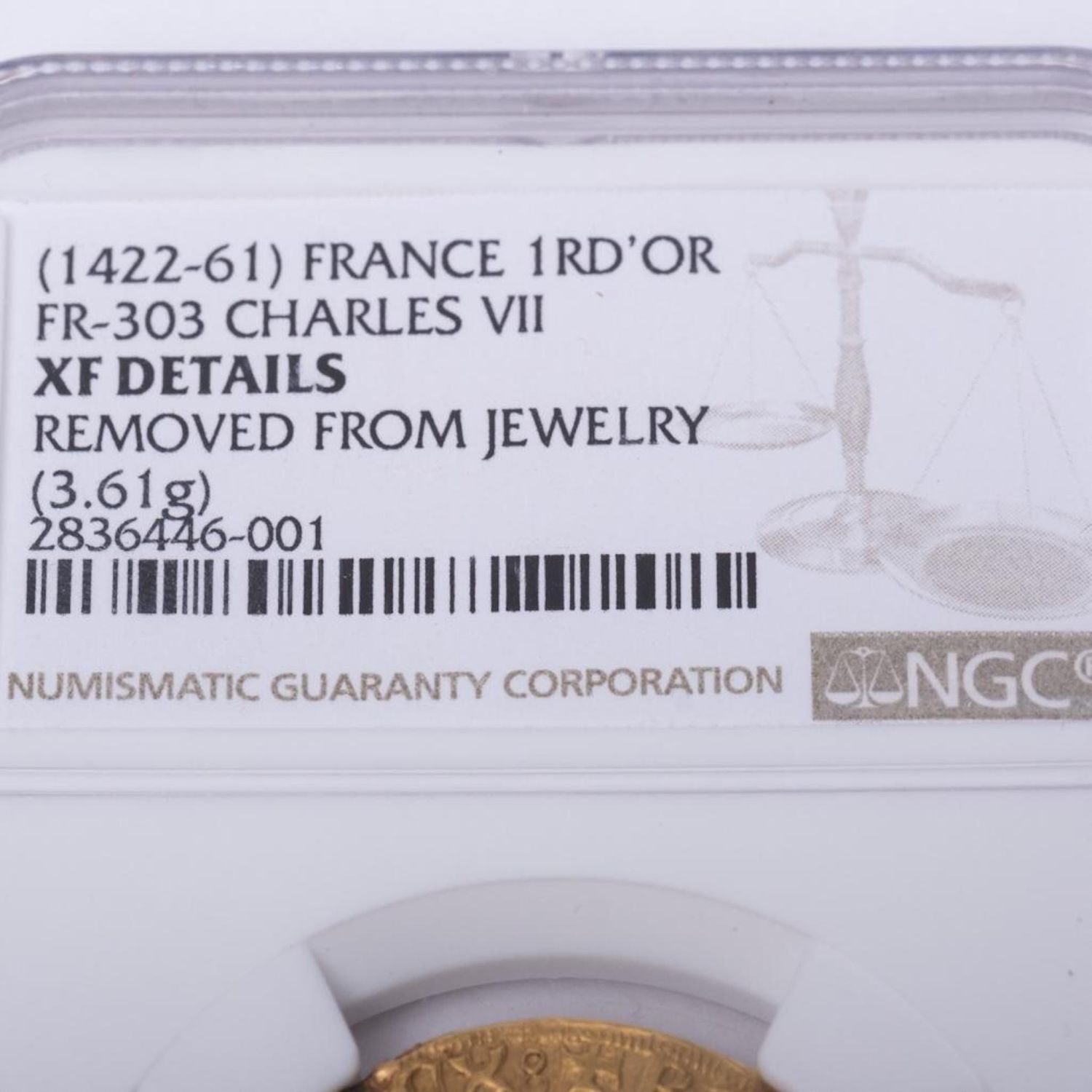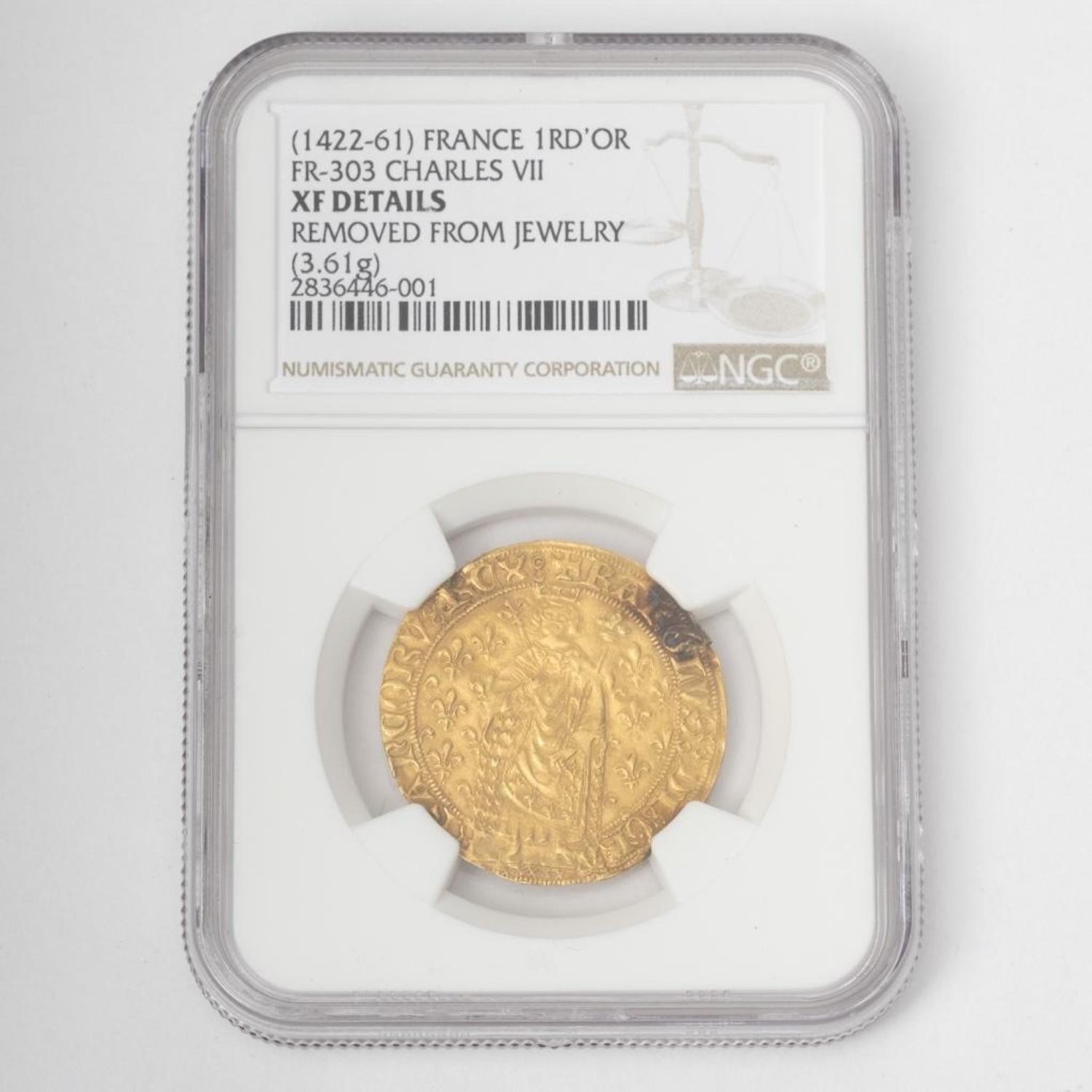15th century French Royal gold coin, . XF details This coin is graded, sealed and displays Charles VII (the Victorious 1422-1461)…on the coin. The coin is approx 1" in diameter. 3.61 grams see photos for more details