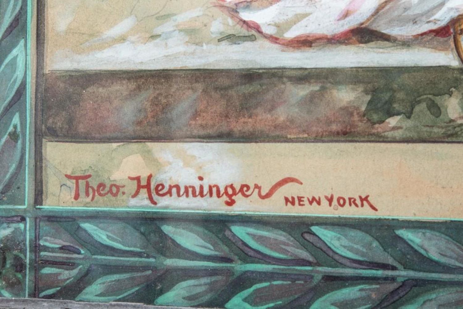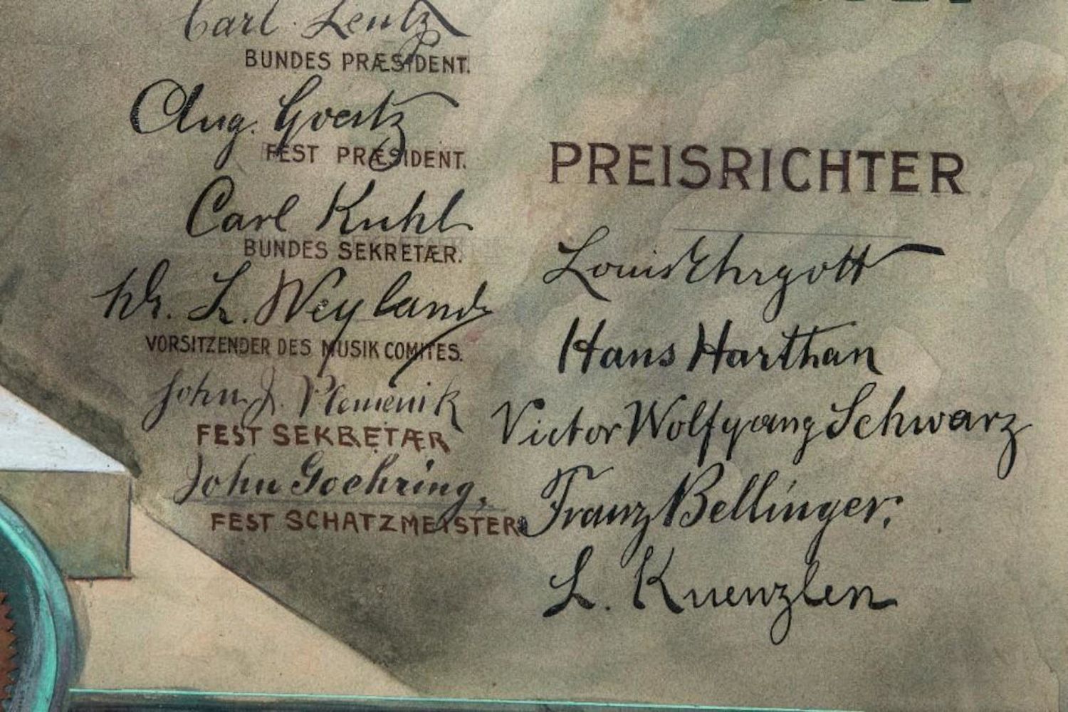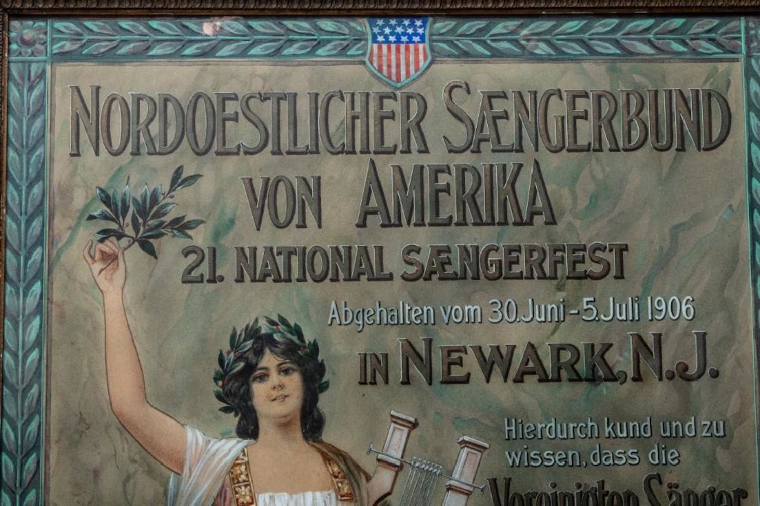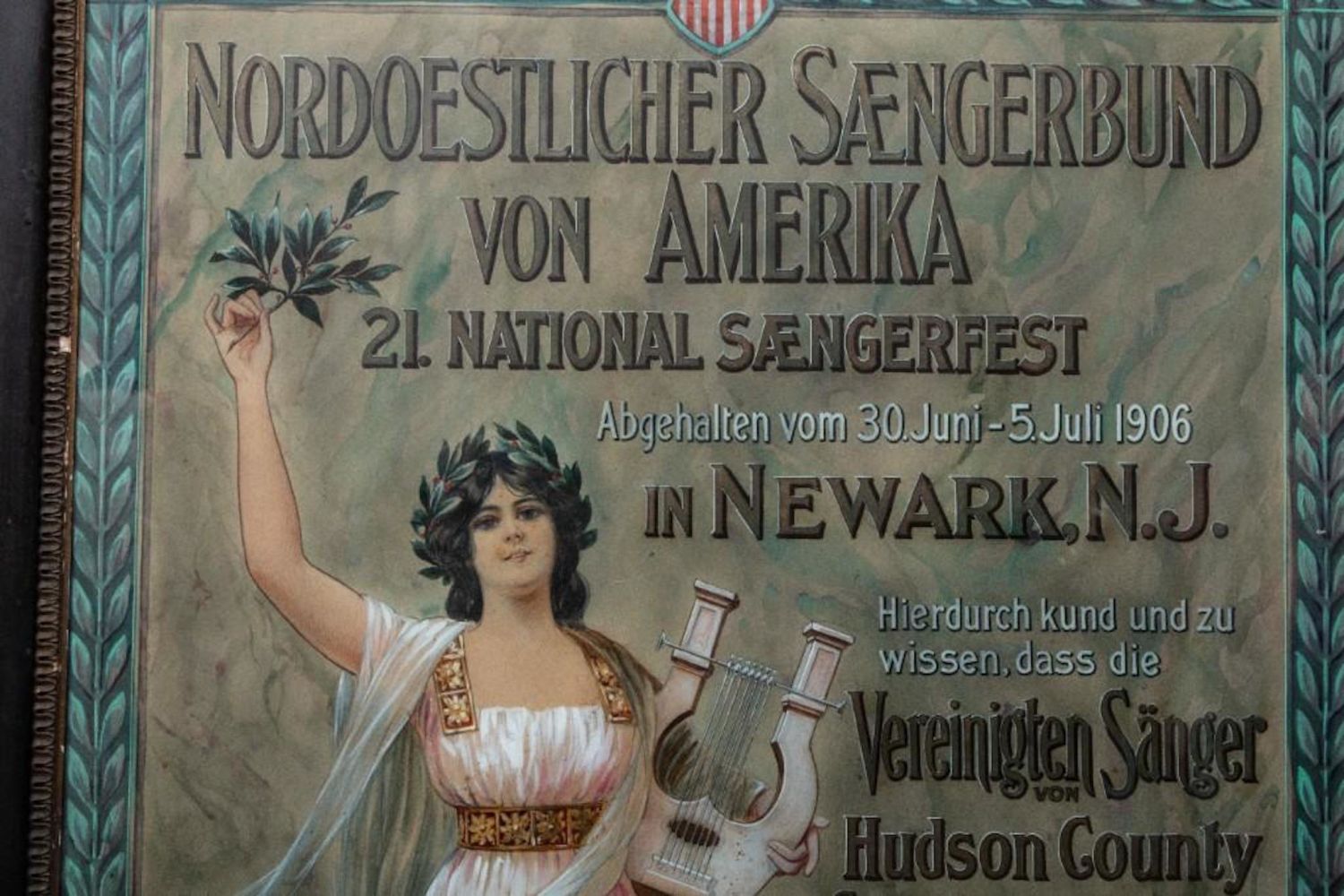 Theo Henninger Signed 1906 original watercolor and ink painting for a poster to advertise the"Sangerfest " in New Jersey Singing Festival 24"W x 34"H. Incredible Detail and draftmanship. in good condition