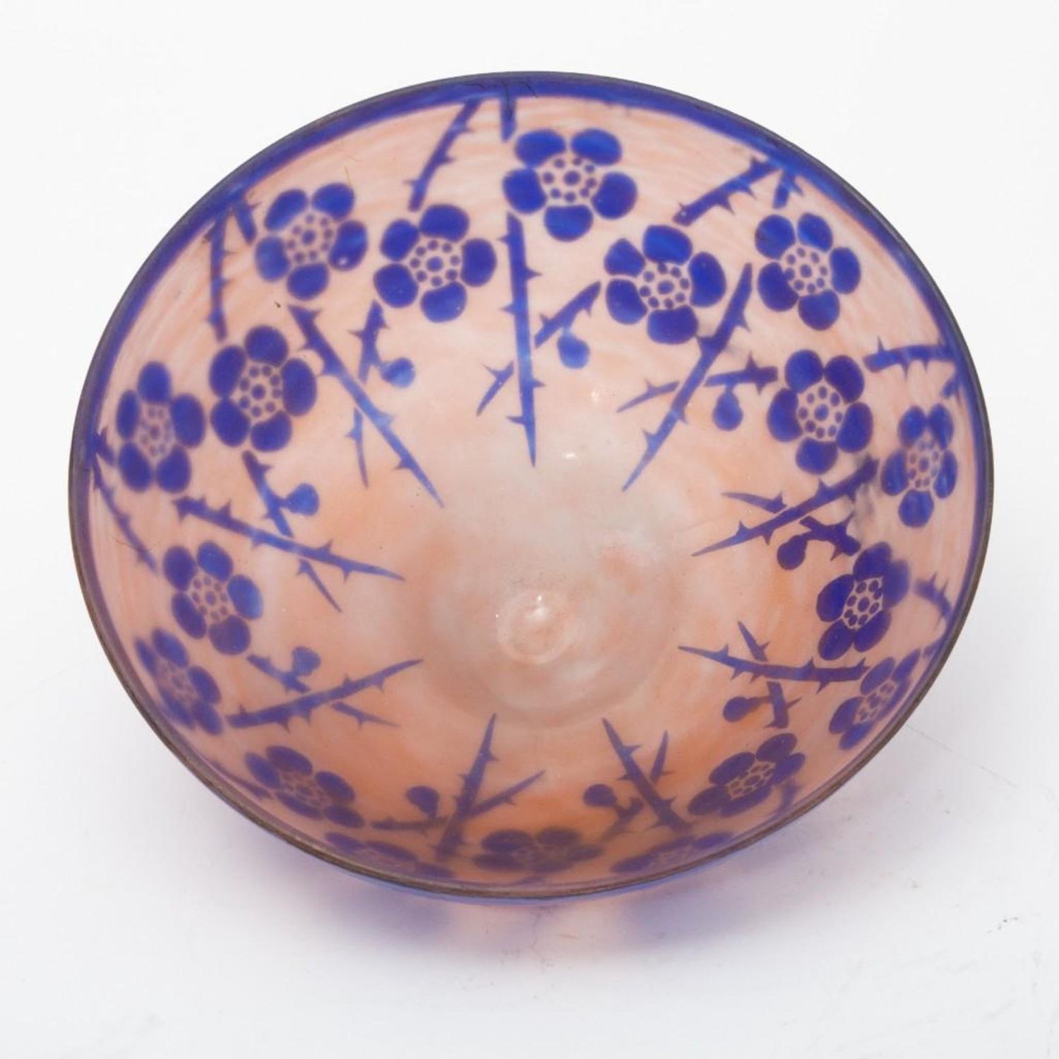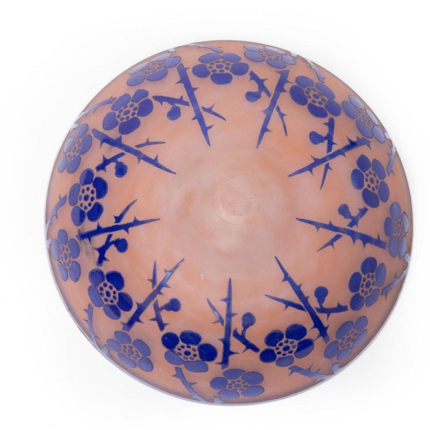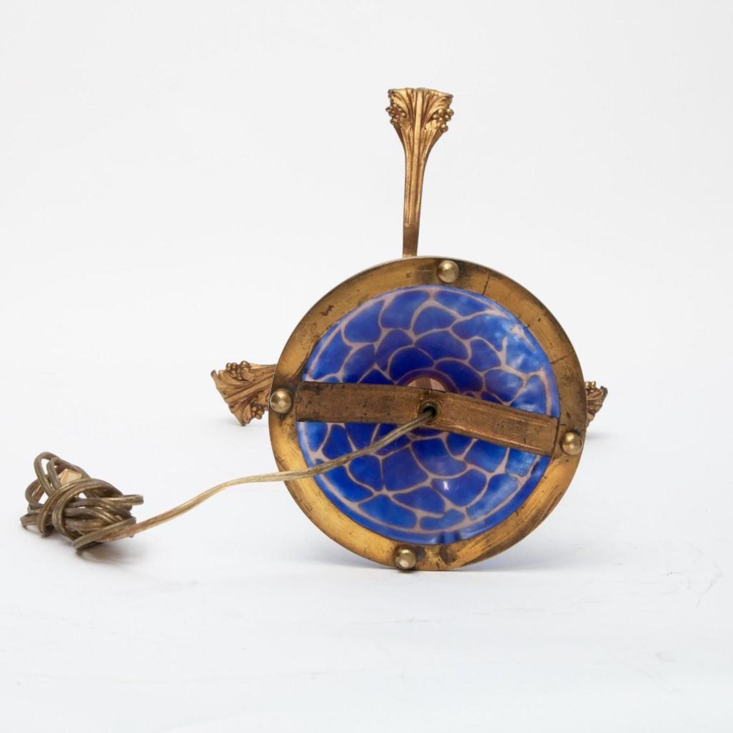 Schneider – Le Verre Francais signed antique French Cameo Glass Table Lamp, acid etched with with stylized flowers, height 23 inches overall. Circa 1920. has the candy cane early signature .Aubepines Pattern. The two brothers Charles and Ernst Schneider both worked for the factory Daum in Nancy in the beginning of the 20th century and there they learned the technique of blowing and etching the glass. In 1913, just before World War I, they founded a factory of themselves in Epinay sur Seine and started tot develop a new style with more firm lines and more clear colors. The vases of the factory Schneider had already more features of the Art Deco than of the Art Nouveau. They imported new forms and new colors in the world of glass industry that was those days dominated by Daum and Galle.Le Verre Francais-They developed two production lines in the glass factory with two different styles: glass with the signature “Le Verre Francais” and the other line with only the signature “Schneider”. The line of Le Verre Francais made cameo glass that existed out of several layers of etched glass. The motifs of the decorations were inspired by the nature, but were represented in a more abstract way and therefore the glass objects show a great difference with the style of the glass of the factory of Gallé or Daum. They created their own specific style that you can recognize on the very contrasting colors on the glass object. For example notice the contrast between orange and yellow on many pieces of the factory Schneider-Le Verre Francais. Therefore the colors make nowadays a more modern impression and the art objects of the factory Schneider can be placed easily in a complete modern interior.The vases of the line Le Verre Francais were produced in higher numbers than the art objects of the other line of this factory. These glass objects with only the signature “Schneider” are more rare to find and therefore rather expensive. Signatures and Originality-There are different signatures: Le Verre Francais on the foot of the vase and Charder (=Charles Schneider) in the middle of the vase. Sometimes both the signatures are represented on the vase. In the early vases of the factory there is no signature at all except for the small glass candy cane stick melted into the glass object with the three colors of the flag of France, the so-called “Berlingot flag”. When a vase has a small Berlingot flag than it is an early one made just after World War I. Reference:: Charles Schneider, Le Verre Francais- Charder Schneider by Marie-Christine Joulin and Gerold Maier, Augsburg, 2004. There are very good copies on the market nowadays but this is not one of them. good condition