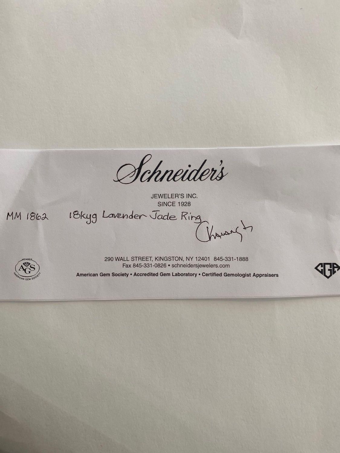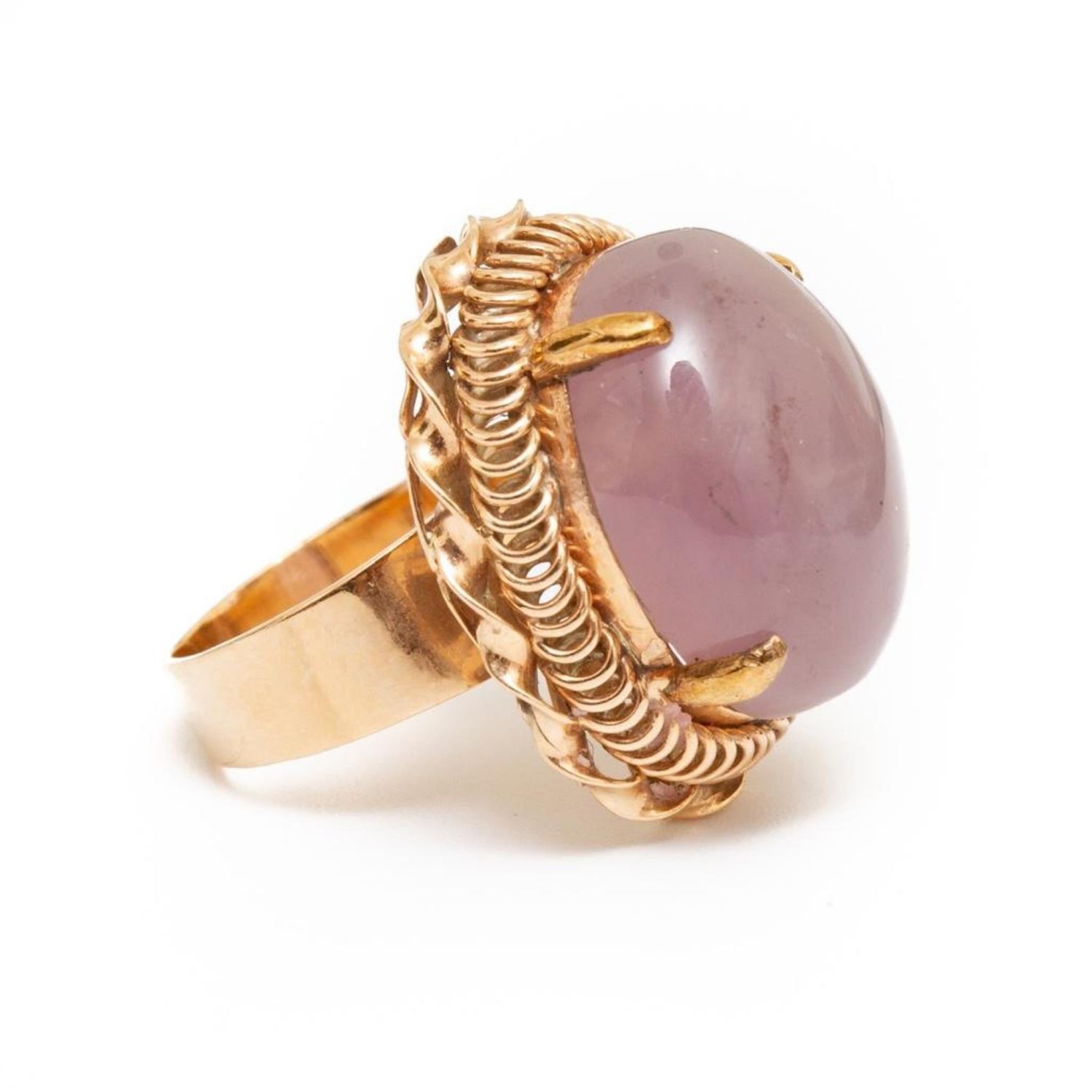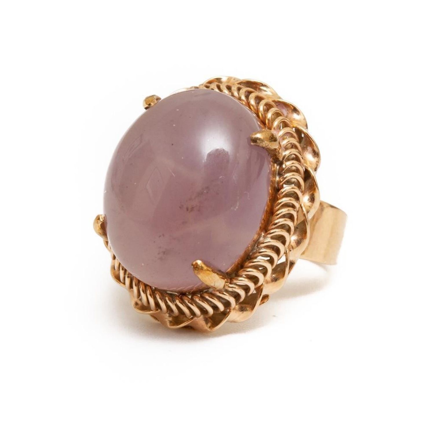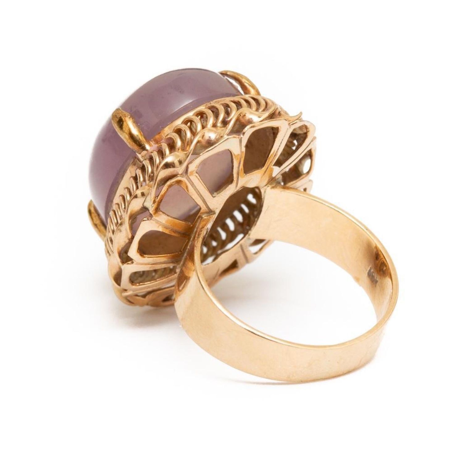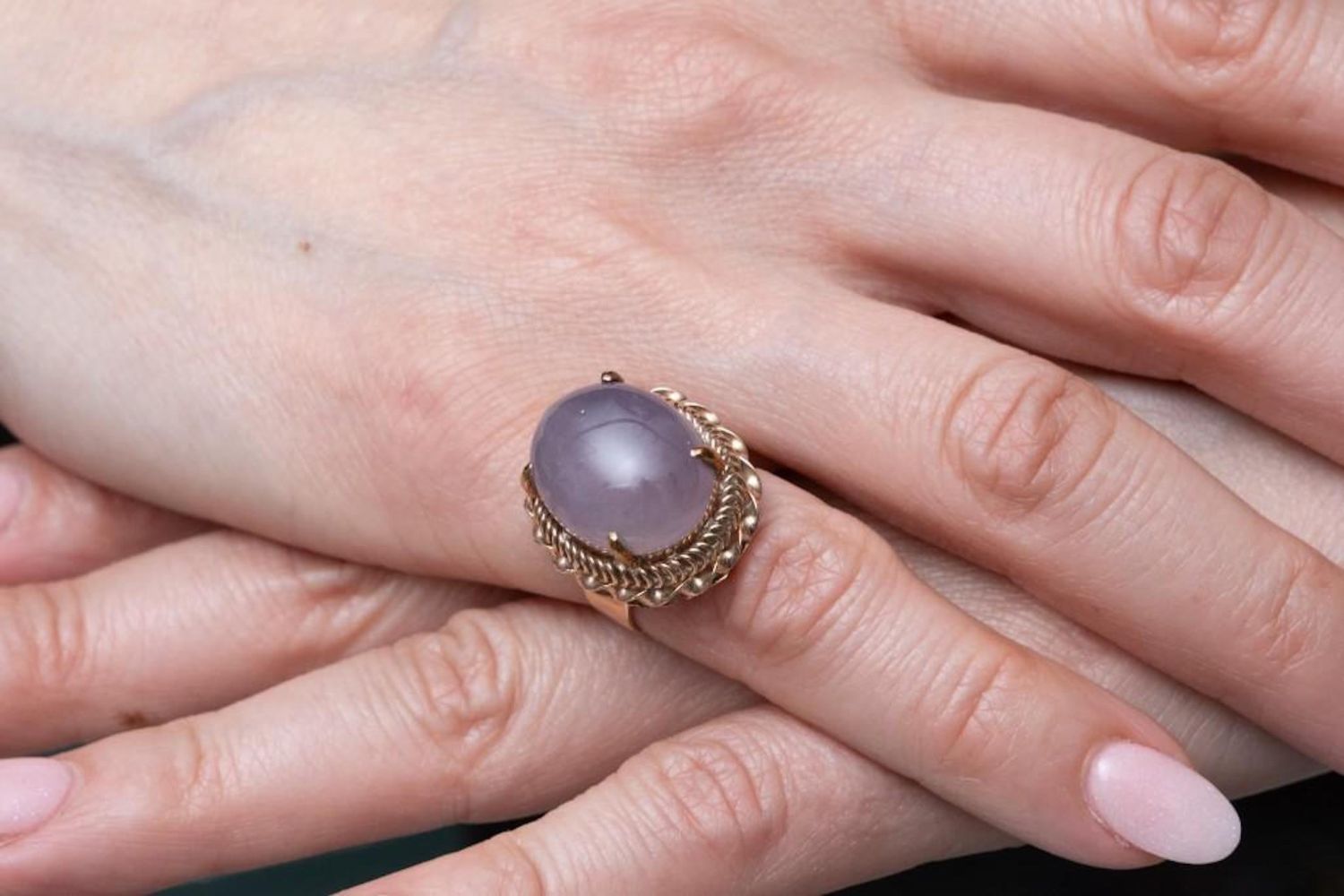 Vintage 18k gold lavender jade ring ap. 17.5 x 14.2 mm size 4.75 approx and weighing approx 4.8 dwt From a jewelry collection Park Avenue New York. In good condition