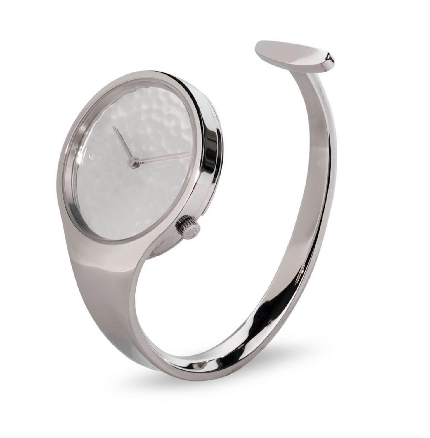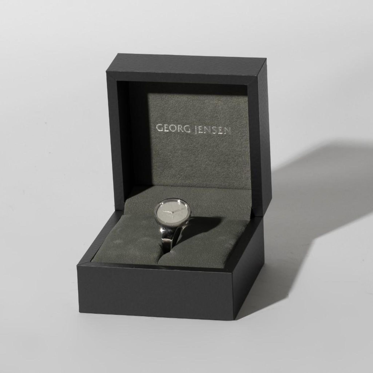 Georg Jensen’s Viviana hammered dial watch by Georg Jensen. Large model, case is 34mm, bangle bracelet will fit up to 7" wrist. movement in working order. when evaluated but functionality not guaranteed..With box. Brand New not worn…in good condition. Original purchase price for over $2000.00 Georg Jensen’s Vivianna range seamlessly blurs the line between horology and jewellery. Crafted from polished stainless steel, this Vivianna bangle is all you need to keep track of time with a sleek finish. The best of both beautiful worlds.