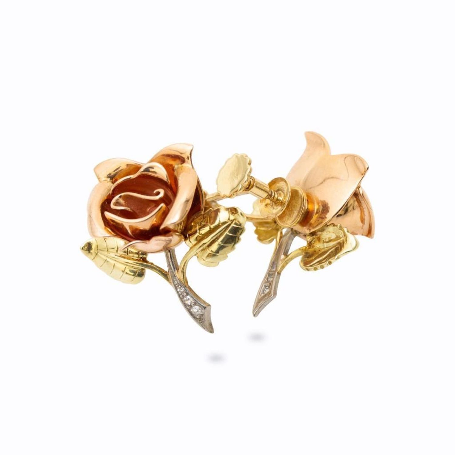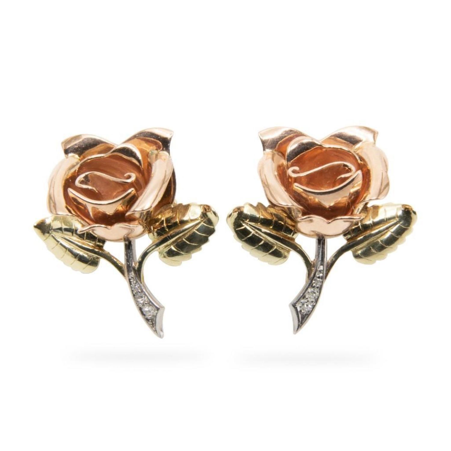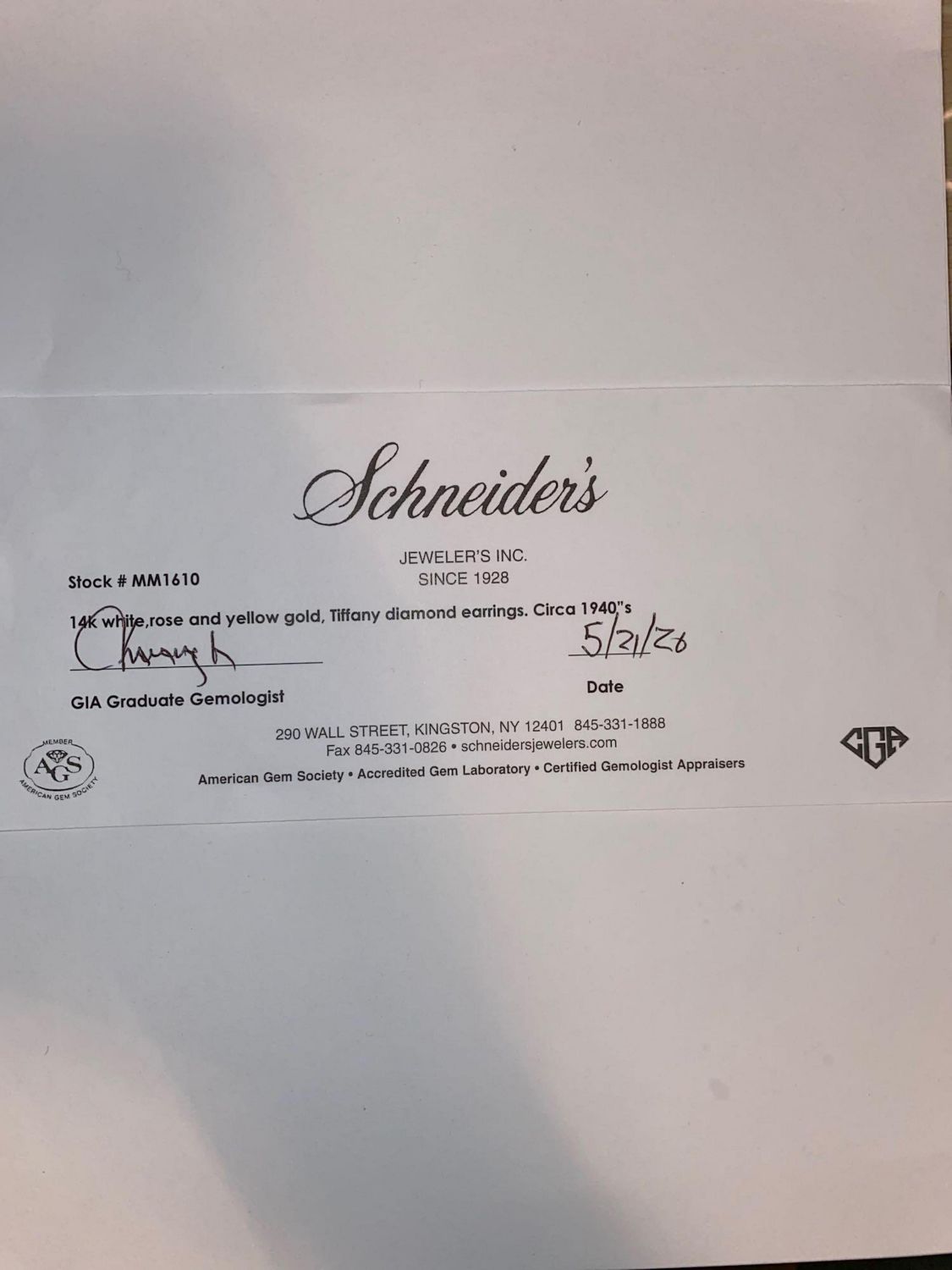 Authentic Tiffany & Co Circa 1940’s 14K Yellow, signed with makers mark White and Rose Gold Diamond Earrings 7.10 dwt. This lot is accompanied by a GIA appraiser letter from an independent and well respected firm established over 75 years ago. in good condition