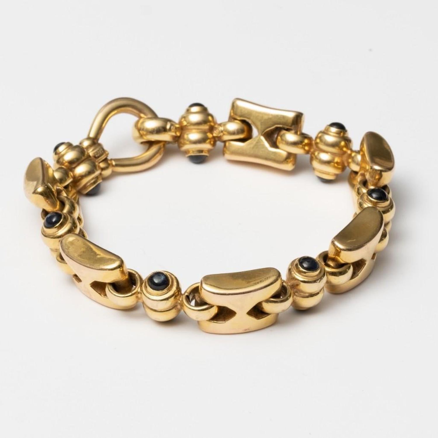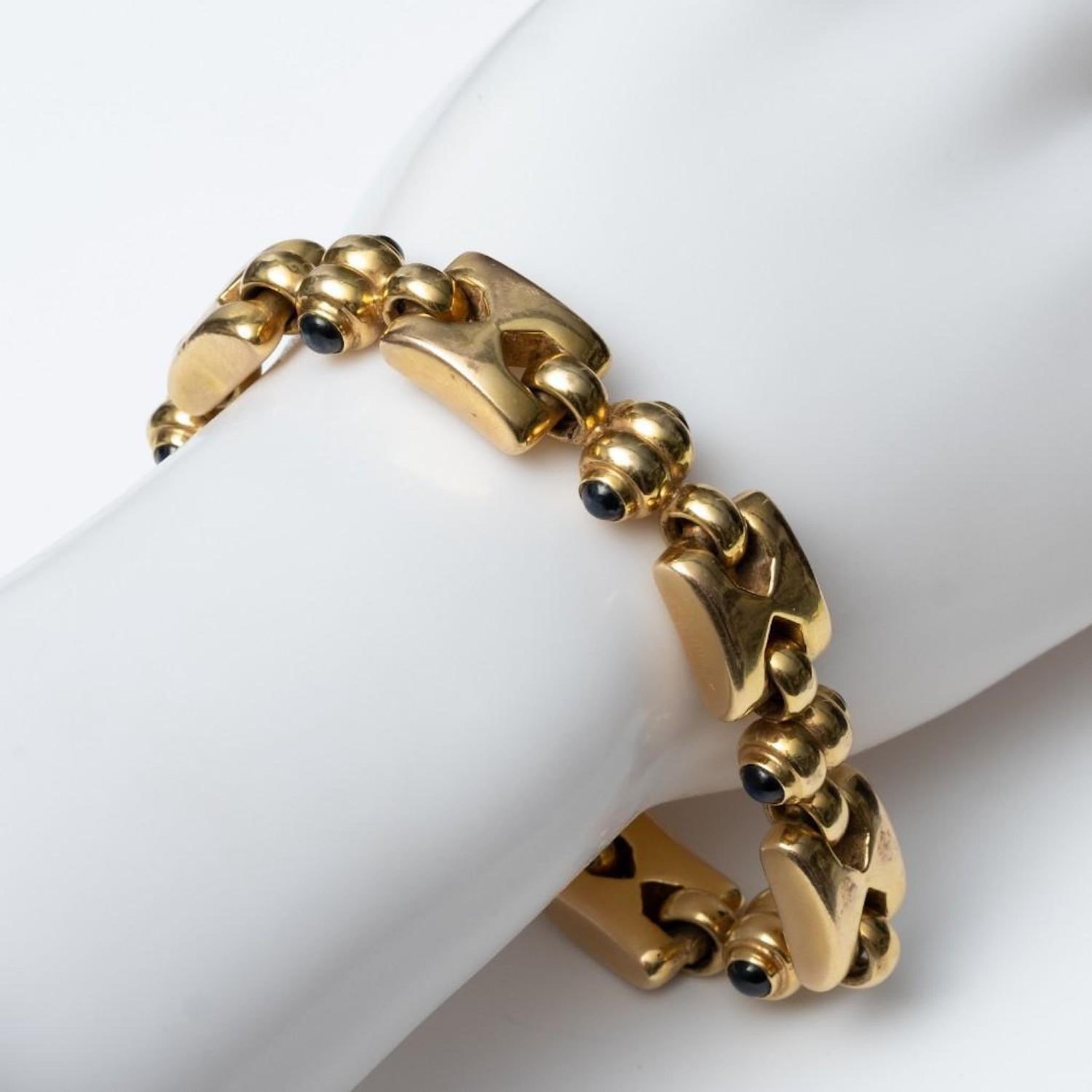 Vintage 14K Italian Gold and Sapphire Link Bracelet. Measures 8"L. Weighs 20.8 grams in good condition