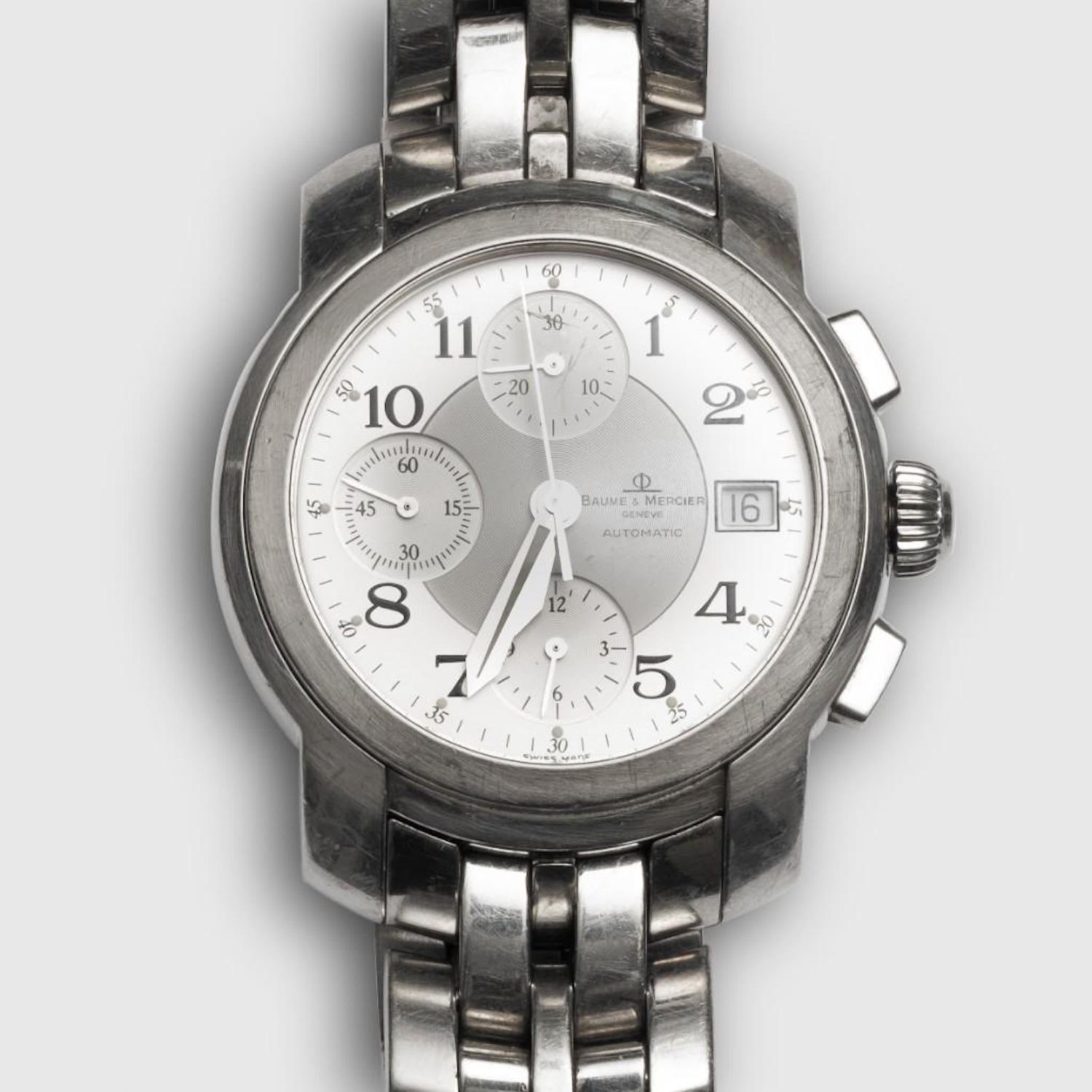 Baume & Mercier Men’s vintage Capeland chronograph watch circa 1990. Watch face measure 1.5" running when examined but function not guaranteed. in good condition