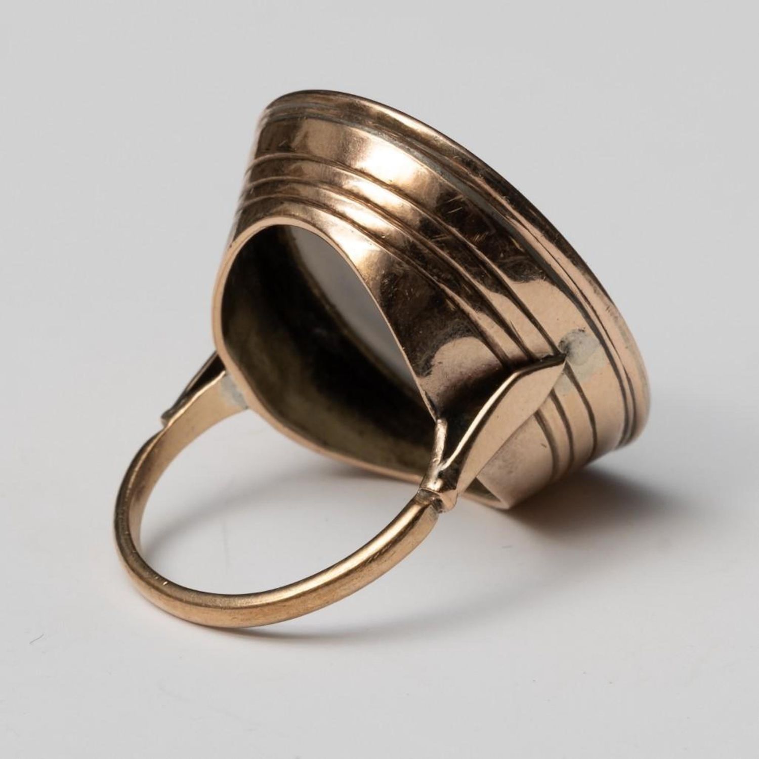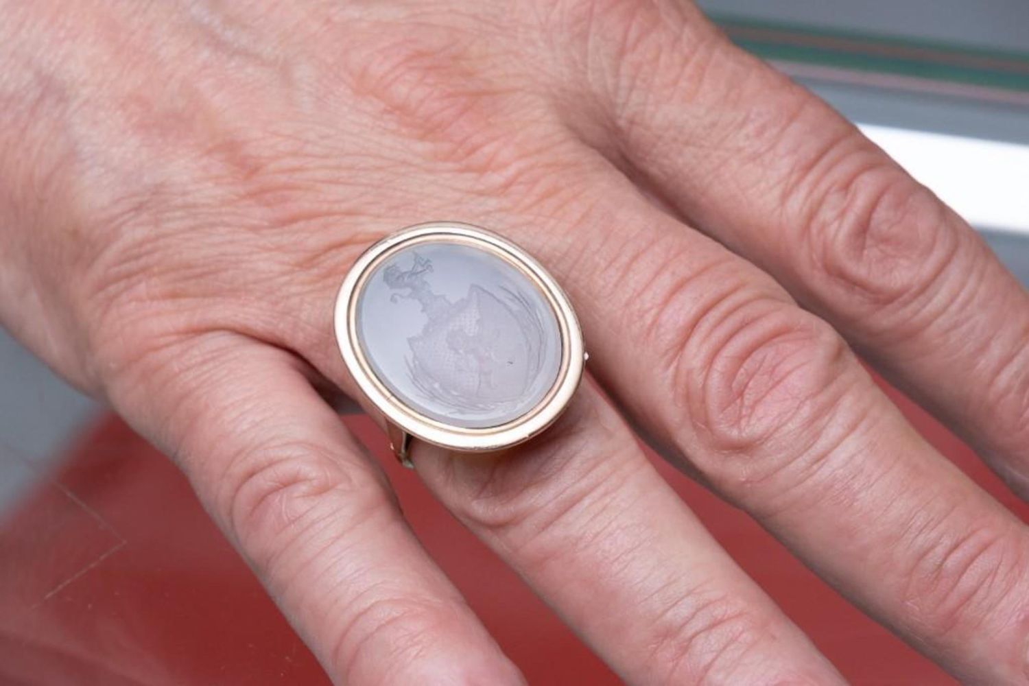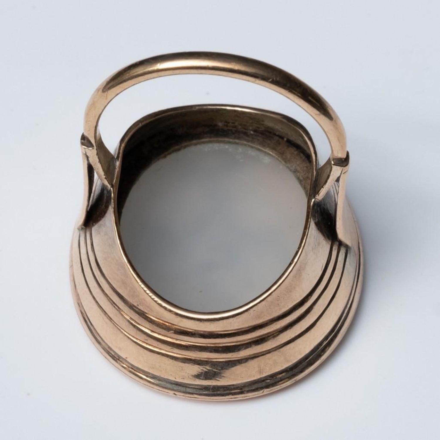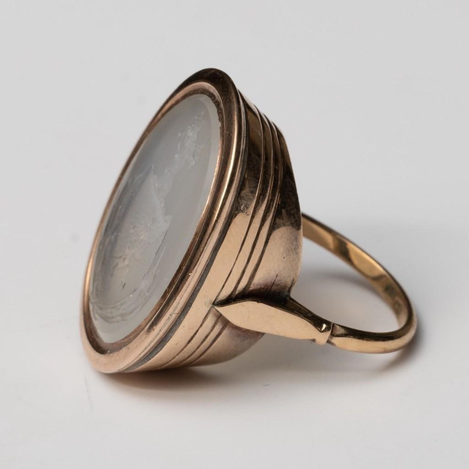 Georgian Period Gold and Chalcedony Intaglio Ring. From an Estate at United Nations Plaza NY. Ring Size 8. 29.6mm x 25mm antique and in good condition
