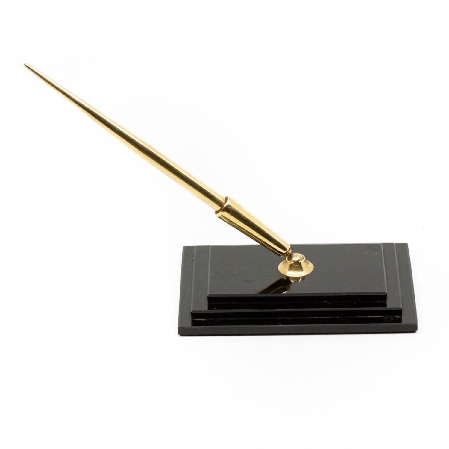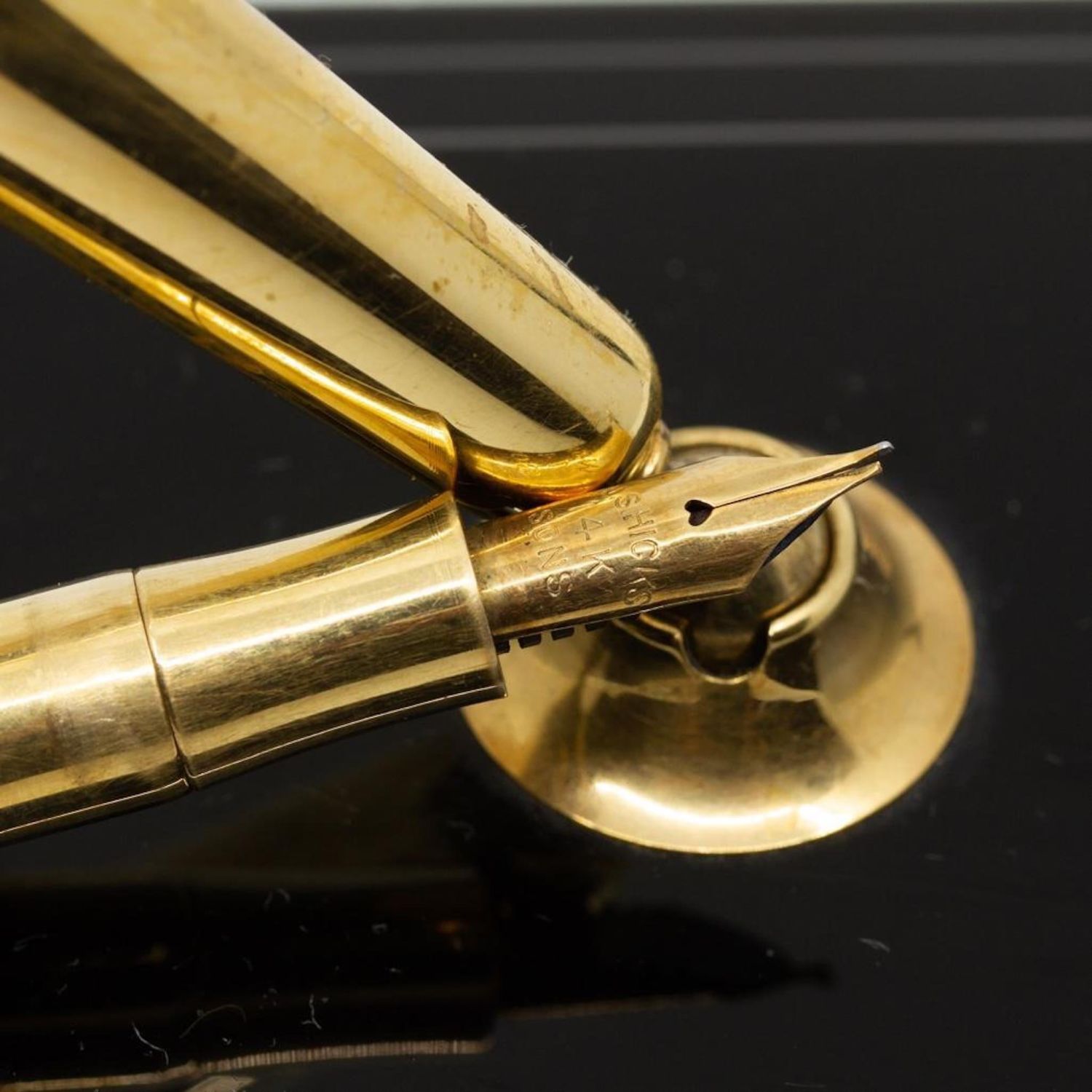Tiffany and Co 14k gold pen and stand Circa 1940. Pen measure 7.5". The base is 6"W. When Pen is in the Stand it measure 9.75"H authentic, in good condition