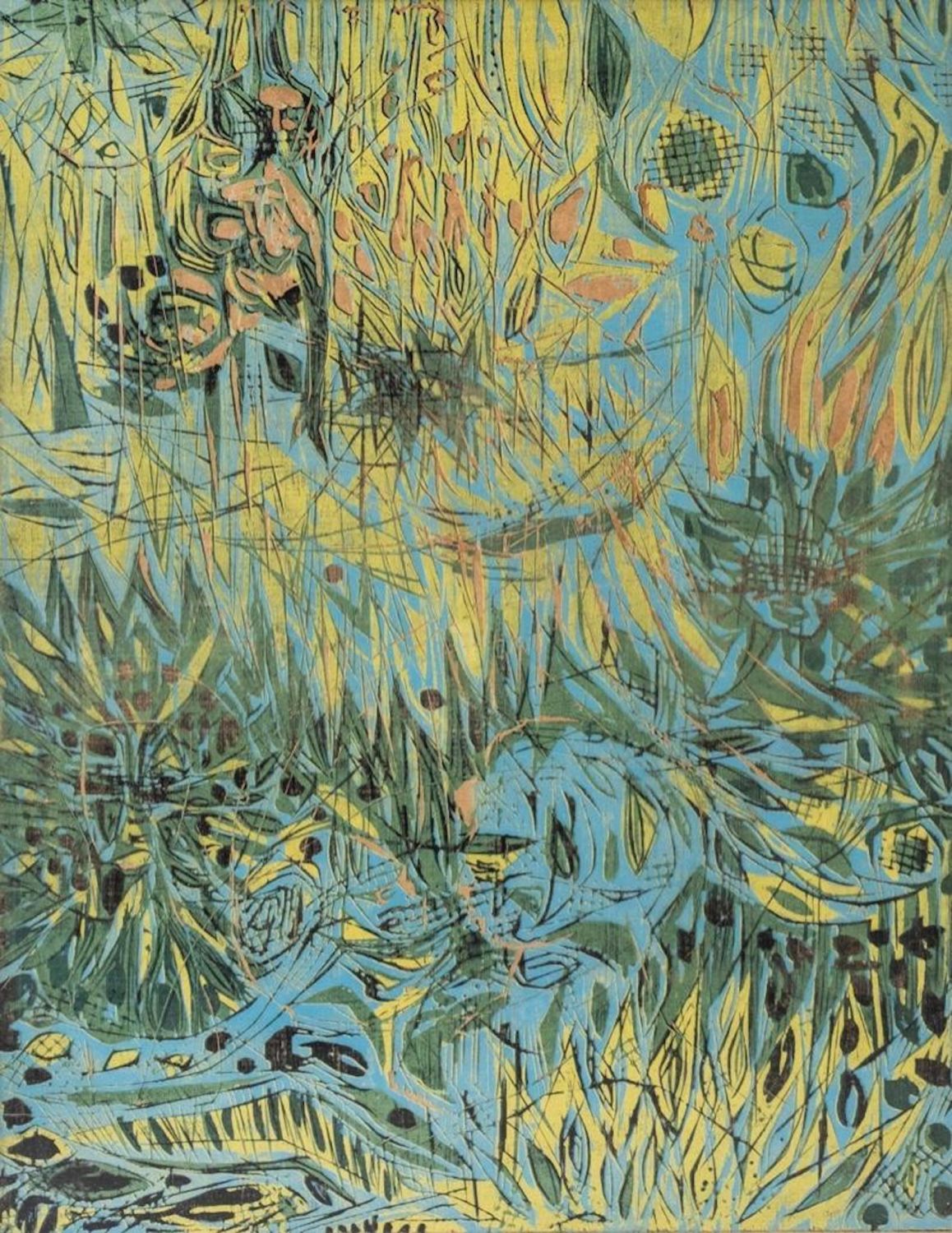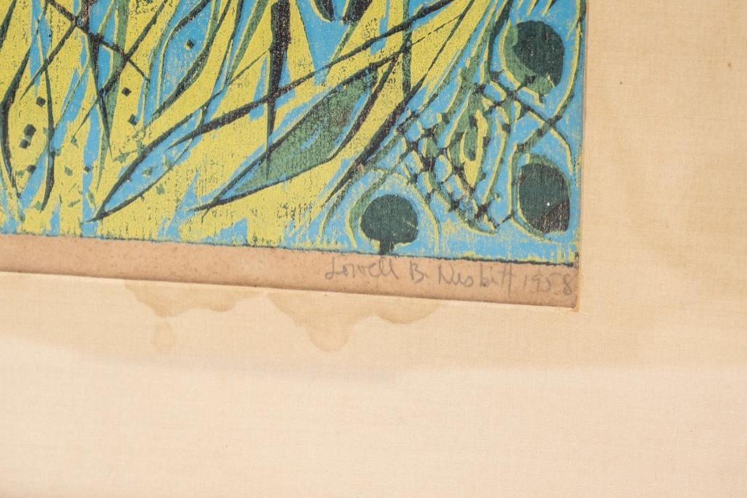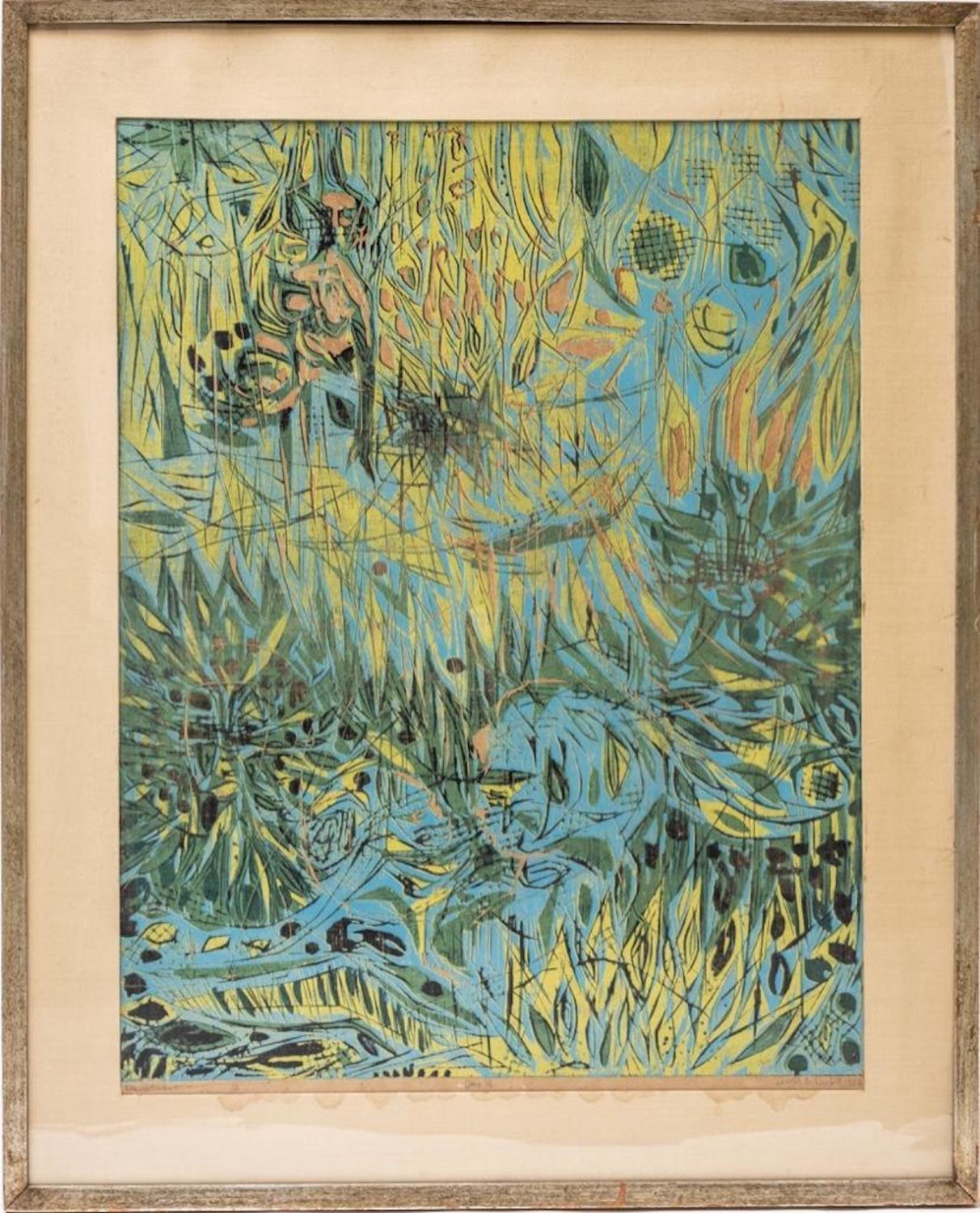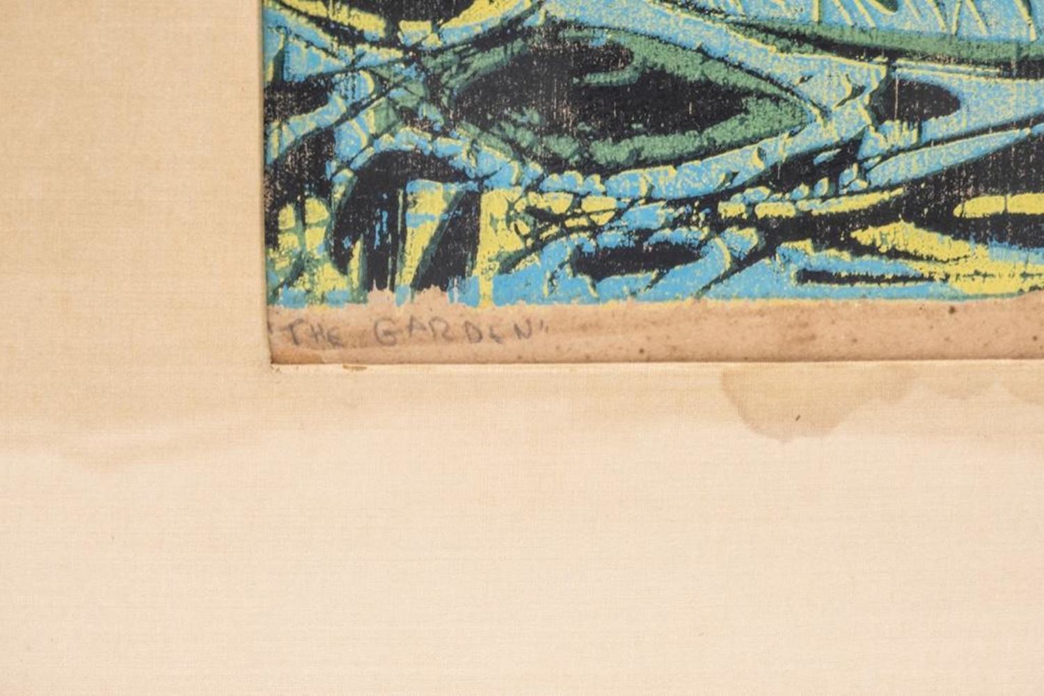 Lowell Nesbitt The Garden, Pencil Signed lower right titled lower left. Colored lithograph on paper. Measures 30.5"H x 23.5"W Framed in good condition
