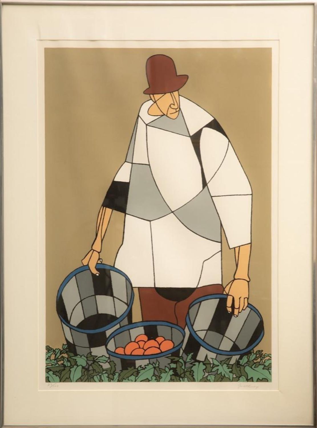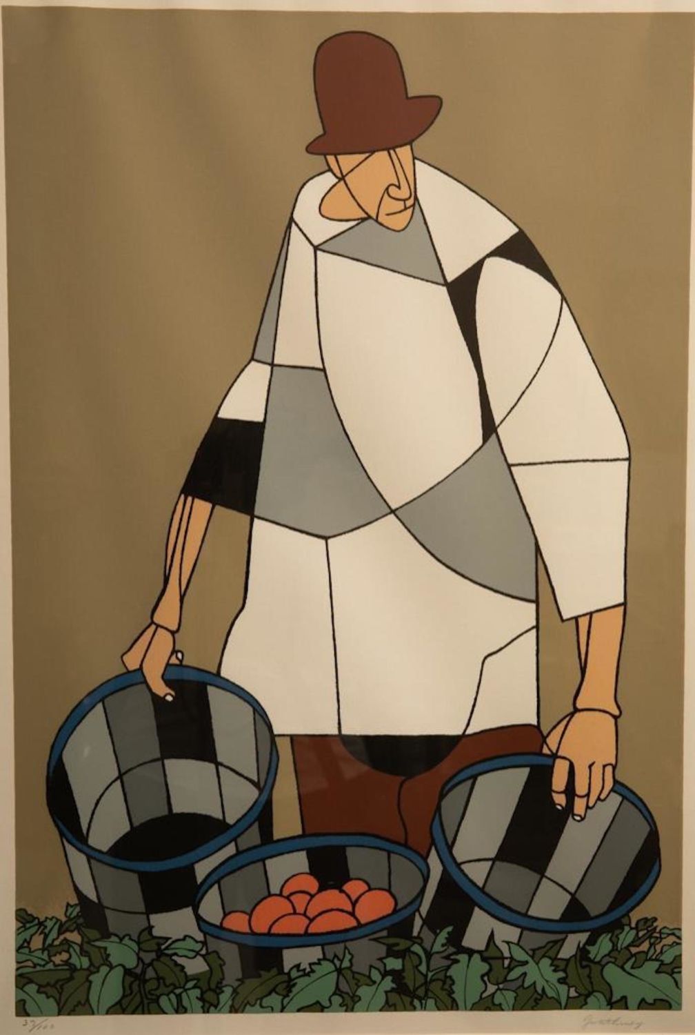 Robert Gwathmey "Migrant Farmer" 20th Century Color Screen Print pencil Signed and Numbered 37/100. Measures 27.75"H x 18.75"W Robert Gwathmey was born January 24, 1903, in Richmond, Virginia, and graduated from John Marshall High School in 1921. After some studies at North Carolina State University and the Maryland Institute of Design, he entered the Pennsylvania Academy of Fine Arts in 1926 and began teaching at Beaver College in Glenside, Pennsylvania (near Philadelphia) after graduation in 1930. In 1835 he married Rosalie Hook, and they had a son, Charles, in 1938. Gwathmey taught at the Carnegie Institute of Technology from 1939 to 1942 and then at the Cooper Union School of Art in New York City until his retirement in 1968. He then moved to Amagansett, Long Island, to the home and studio designed by his son. Robert Gwathmey was elected to the American Academy and Institute of Arts and Letters and to full membership in the National Academy of Design. He died in 1988 at the age of 85.