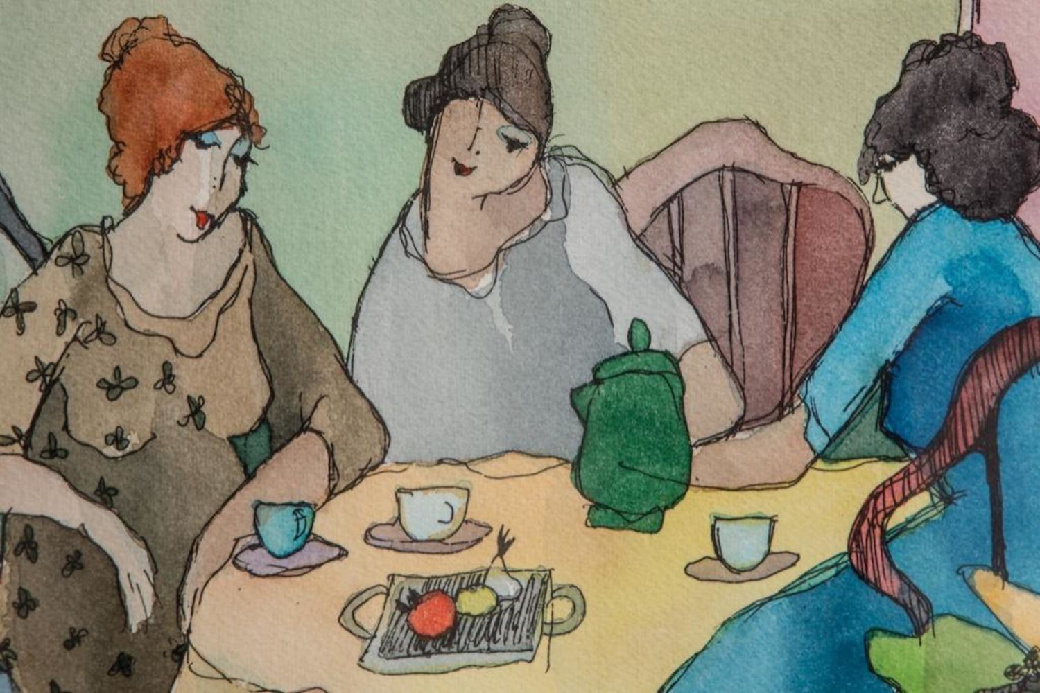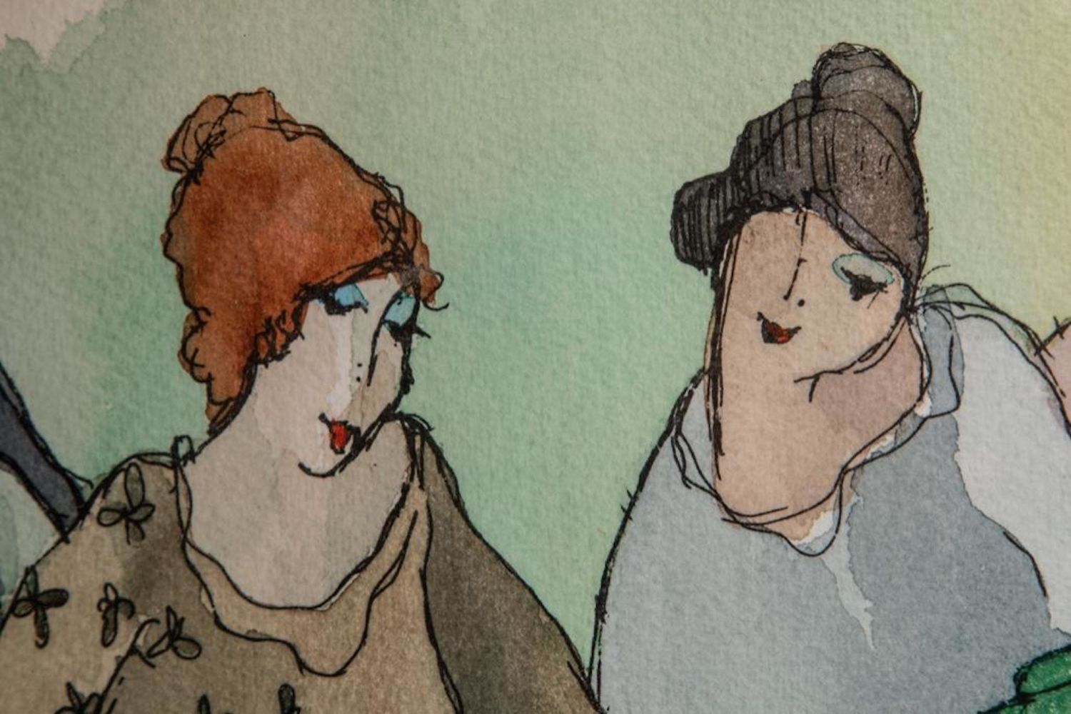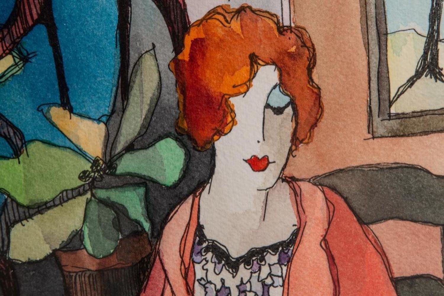 Itzchak Tarkay, signed watercolor (1930-2012). Watercolor on paper signed lower right in decorative carved gilt wood frame. Measures 32.5"H x 28.5"W framed; 18.5"H x 15"W visible image in good condition