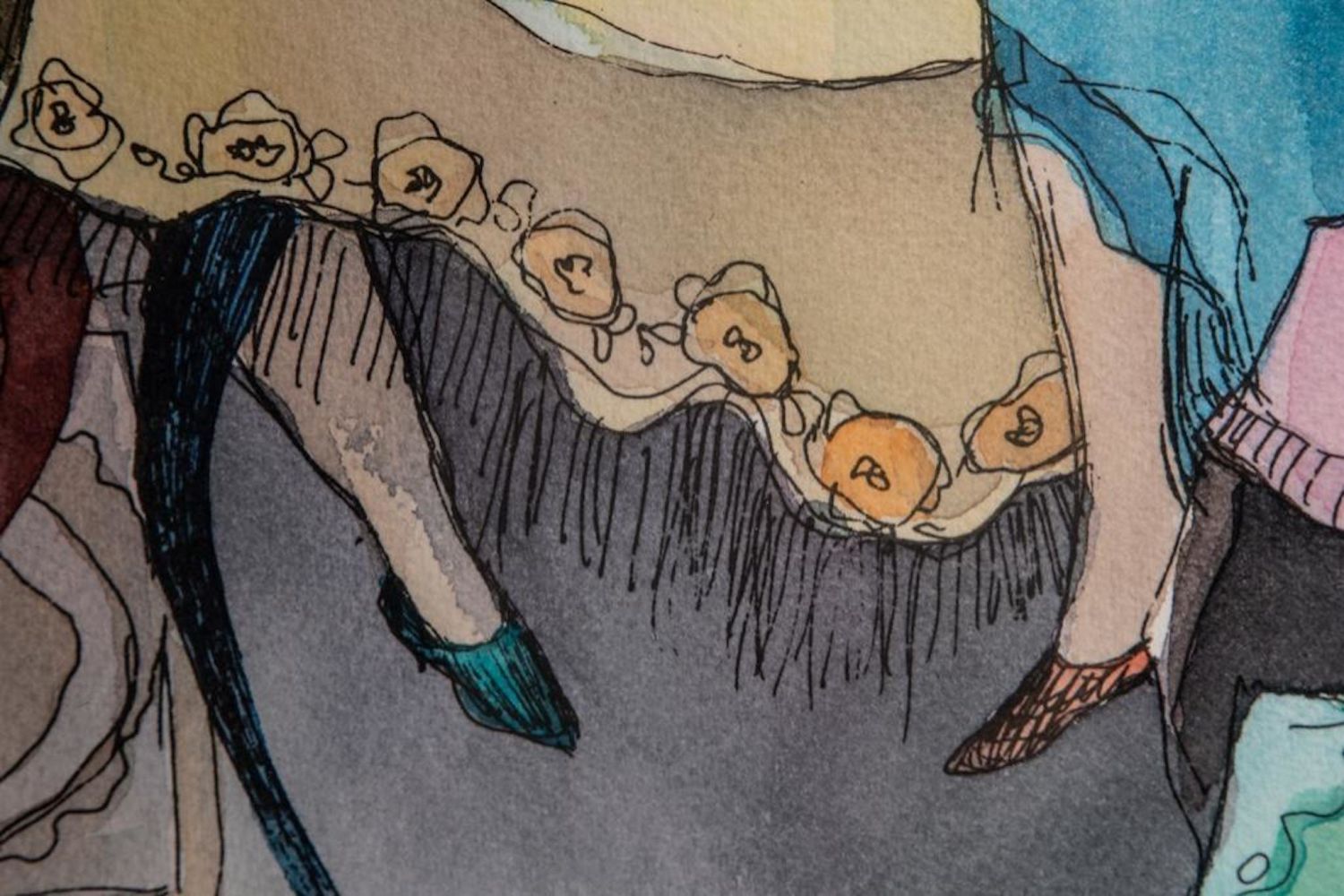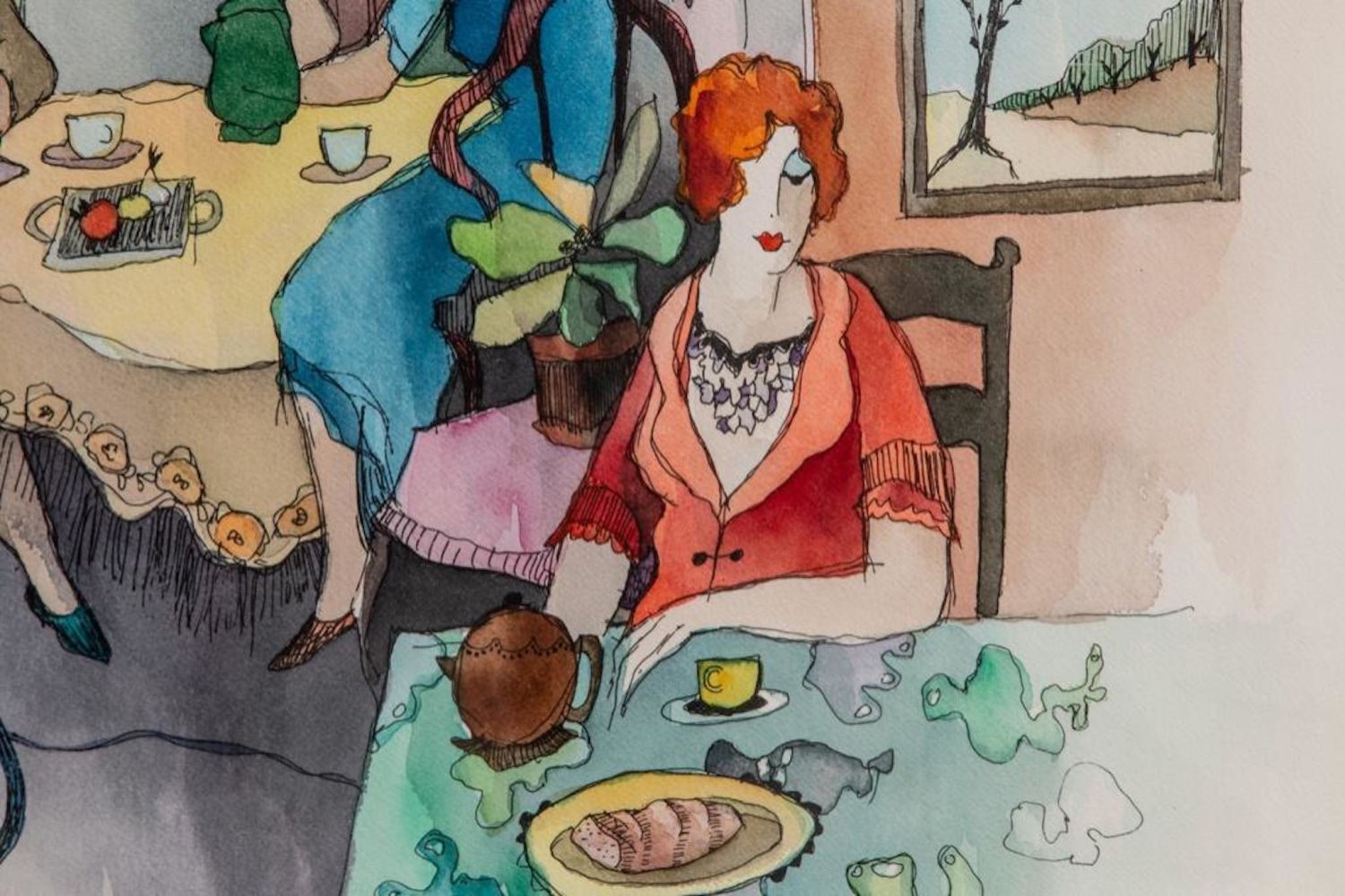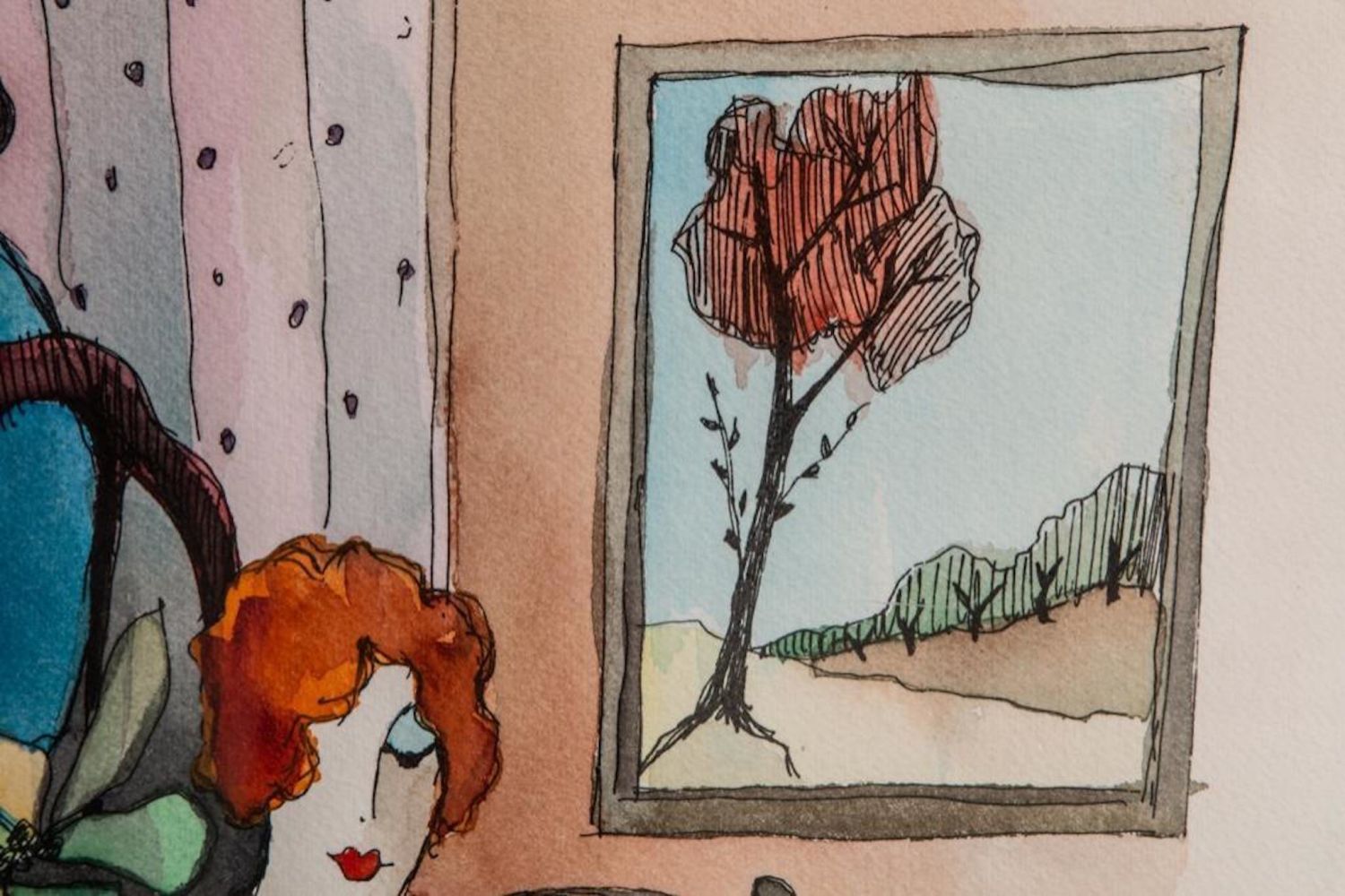 Itzchak Tarkay, signed watercolor (1930-2012). Watercolor on paper signed lower right in decorative carved gilt wood frame. Measures 32.5"H x 28.5"W framed; 18.5"H x 15"W visible image in good condition
