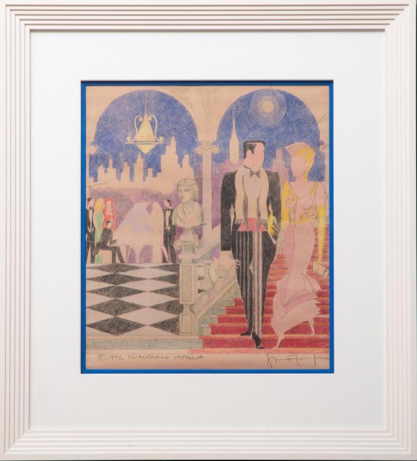 Giancarlo Impiglia Pencil Signed Crayon Drawing