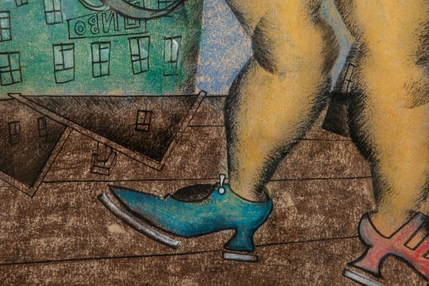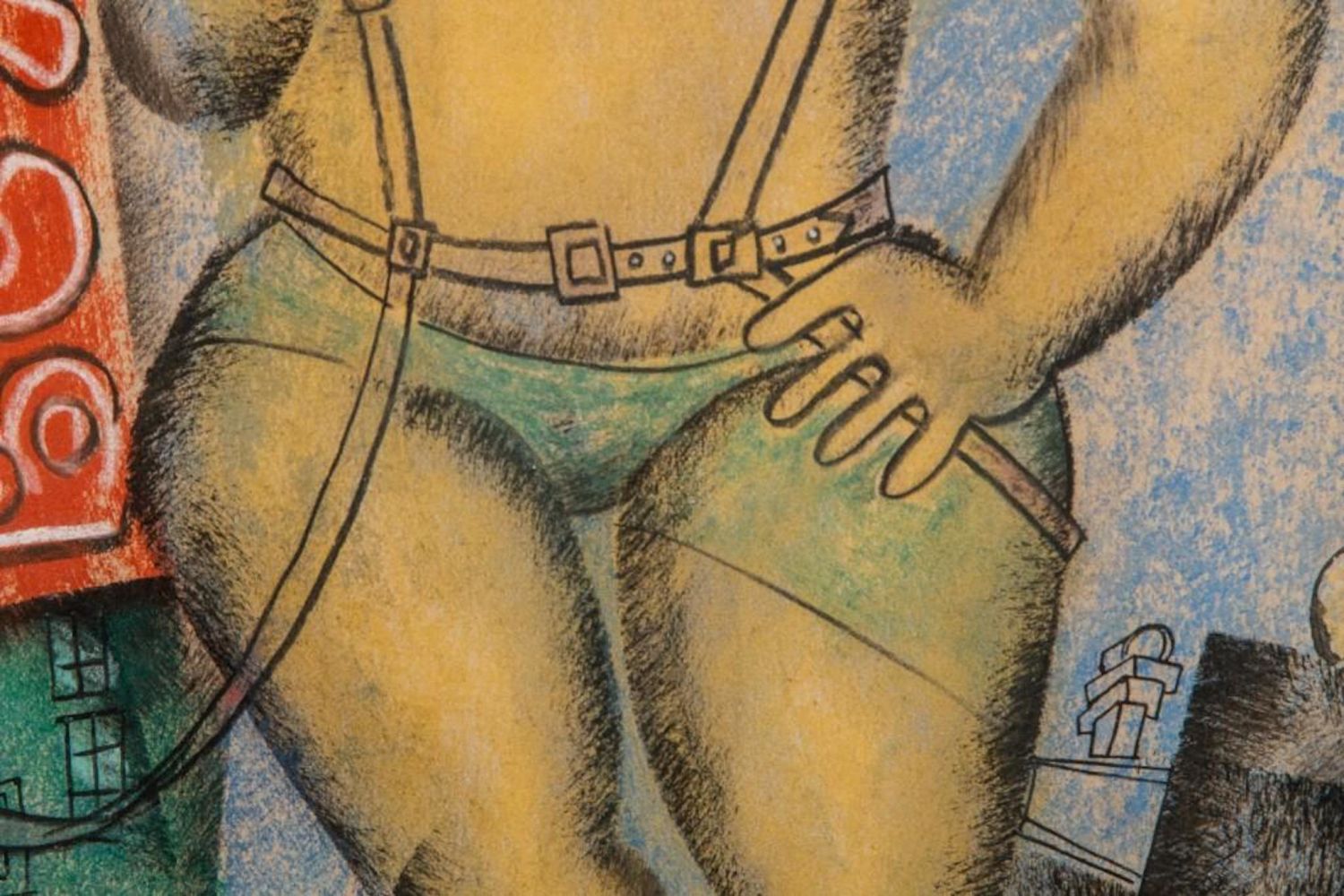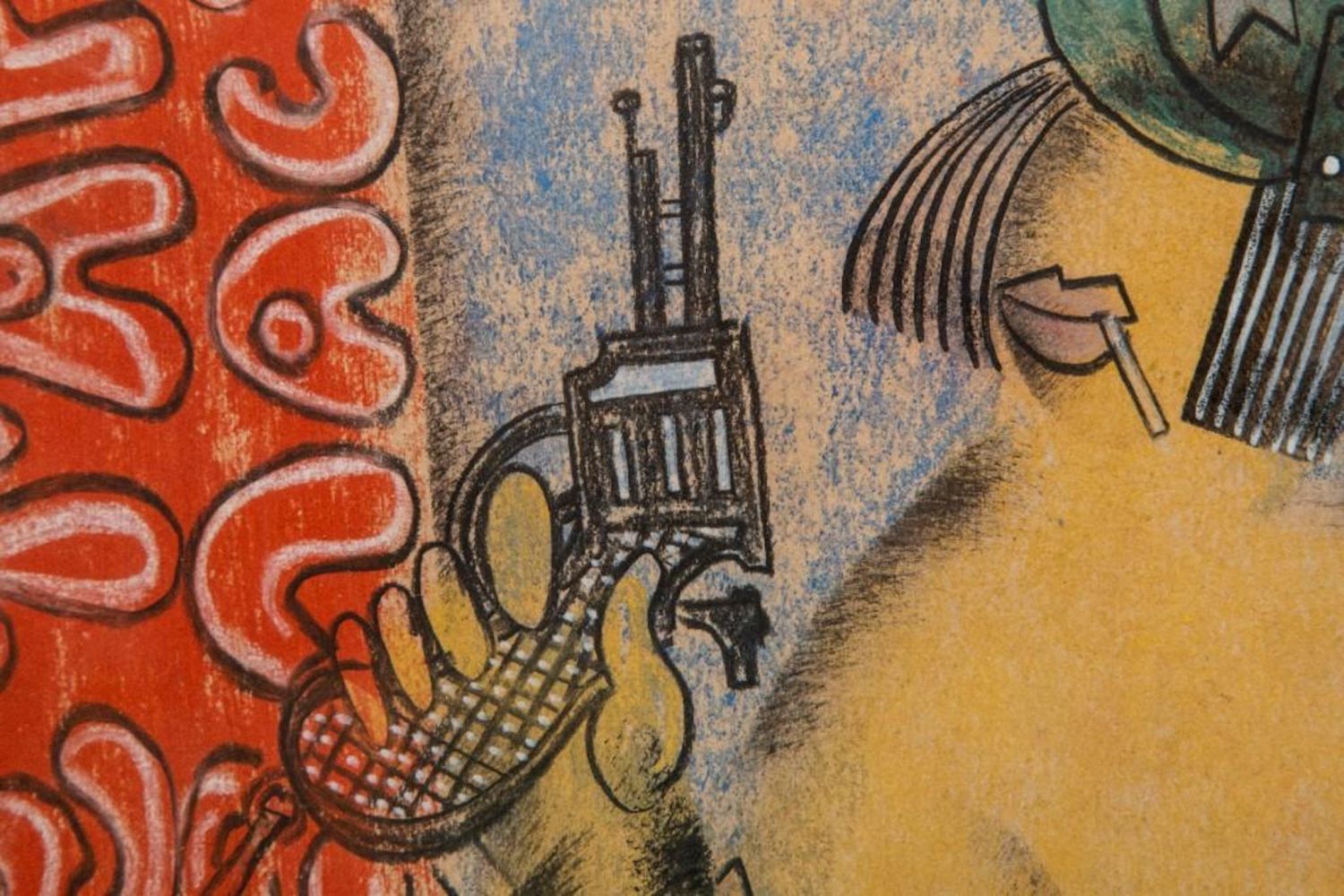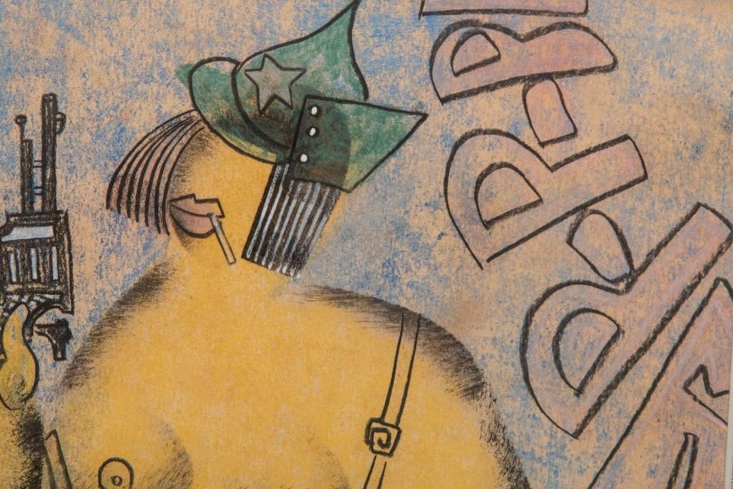 Pastel by Vladimir Lebedev, 1891-1967 lady and gun Unsigned. Measures 10.5"H x 14"W approx. and 16 x 20 framed Vladimir Vasilyevich Lebedev — was a Russian Avant Garde painter and graphic artist. He became famous for his exceptional illustrationsm of street life, political, social , propaganda and illustated poems Exhibited 3 times in the Museum of Modern Art in NY
