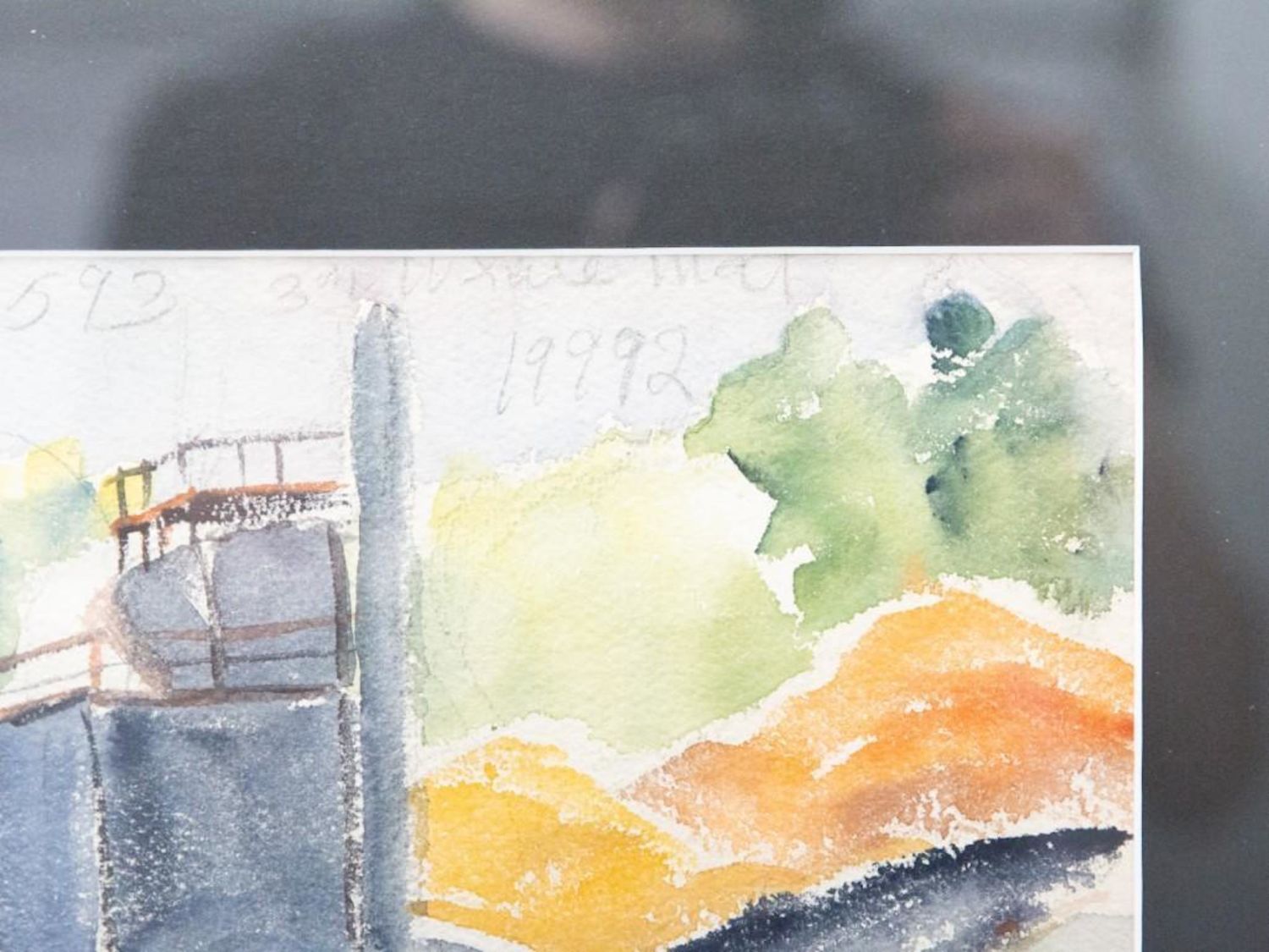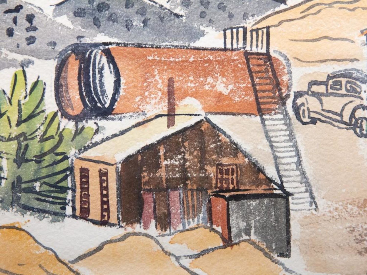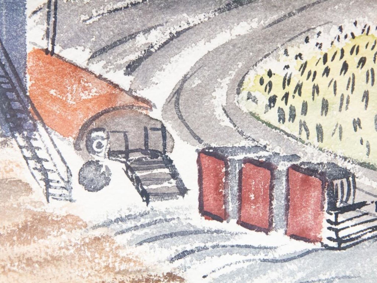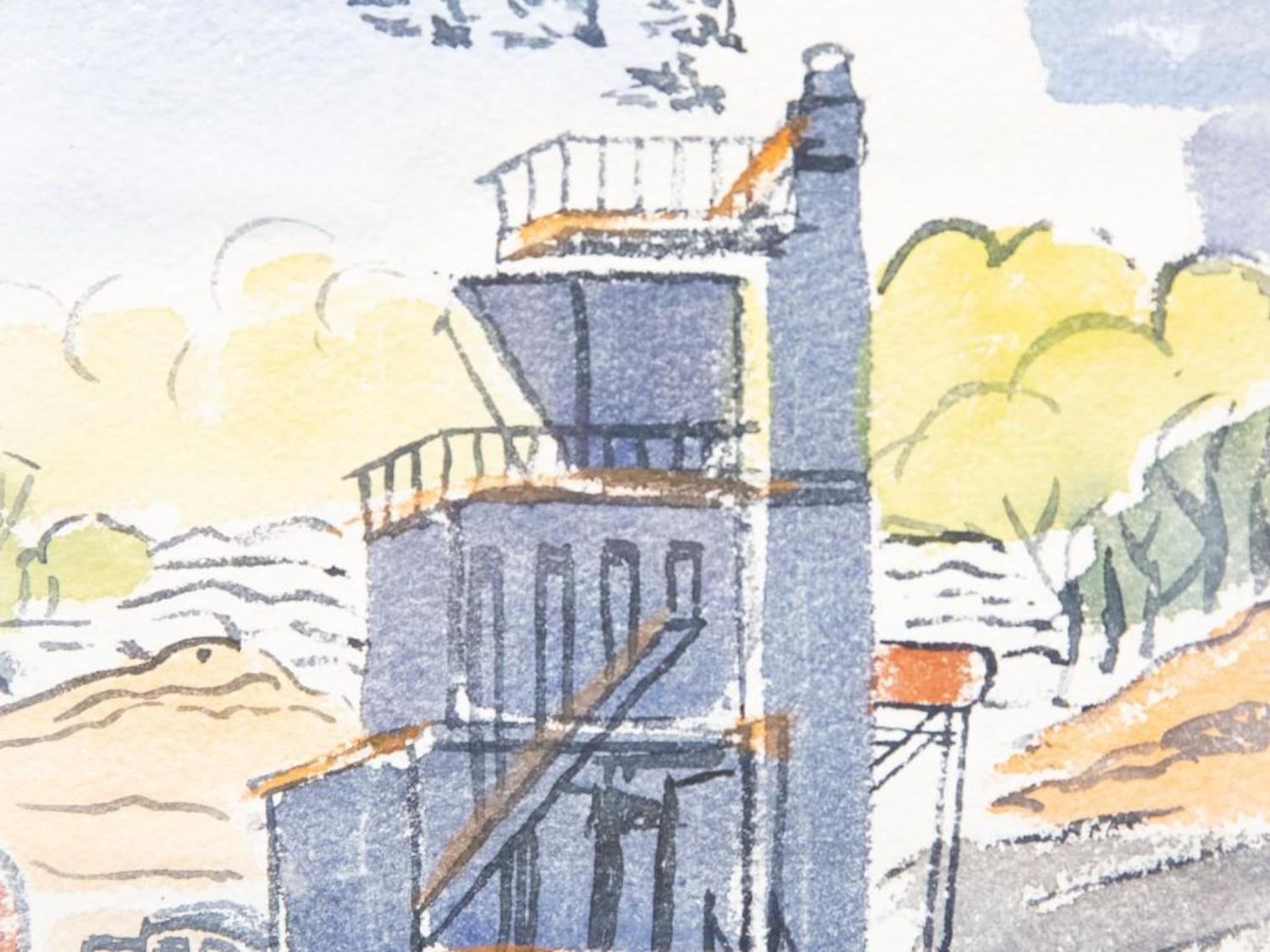 signed Charles Sheeler "Gravel Pit, " watercolor and gouache on paper, with rough sketch painting on verso, signed "Sheeler" lower right, 11.25"h x 14.5"w approx. It is framed ain a manner so works visible on both sides. in good condition. Sheeler traveled often to New York and began developing important relationships with dealers and collectors there and exhibiting in group shows, including the 1913 Armory Show. He was introduced to Alfred Stieglitz (American, 1864 – 1946), who admired his Doylestown photos and encouraged Sheeler to reevaluate his notions about photography and explore it as a valid artistic medium. He also met the art collectors Walter and Louise Arensberg, who introduced him to the artists and intellectuals in their circle, including Marcel Duchamp (American, born France, 1887 – 1968) and Man Ray (American, 1890 – 1976). In 1919 Sheeler moved to New York. The following year he collaborated with the photographer Paul Strand (American, 1890 – 1976) on the short film Manhatta, an avant-garde project that sought to apply techniques of still photography to a motion picture. Throughout the 1920s, Sheeler achieved both critical and financial success as a commercial photographer. In 1926 he was hired by Edward Steichen (American, 1879 – 1973) to work for Condé Nast publications, producing fashion and celebrity photographs for the magazines Vogue and Vanity Fair. One of the turning points in Sheeler’s career came the following year, when the Ford Motor Company hired him to photograph the company’s River Rouge Plant in Detroit, Michigan. Sheeler’s stark, stylized images of the factory complex won him critical acclaim and were widely reproduced as icons of American industry. That same year Sheeler and his wife Katharine moved to South Salem, a small town outside of New York. In 1931, the dealer Edith Halpert offered Sheeler exclusive representation at her Downtown Gallery in New York. She encouraged him to curtail his work in photography and focus his artistic energies on painting instead. Following a solo show at the Downtown Gallery, Sheeler promptly resigned from Condé Nast and turned his artistic attention toward oil, conté crayon, and tempera. Beginning in the late 1920s, Sheeler’s paintings and drawings appeared in important exhibitions at the Museum of Modern Art, the Arts Club of Chicago, and the Whitney Museum of American Art, among others. His work entered the collections of many of these institutions, as well as those of important collectors of American modernism, including the Arensbergs, Duncan Phillips, and Ferdinand Howland.